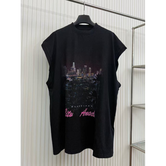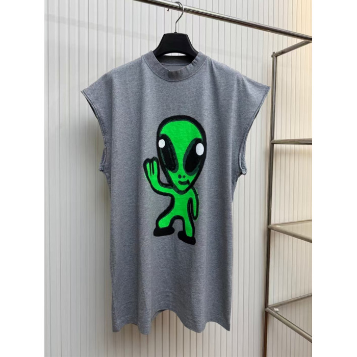巴黎時尚背心2025夏季新款夜光外星人百搭寬松純棉無袖T恤男女款