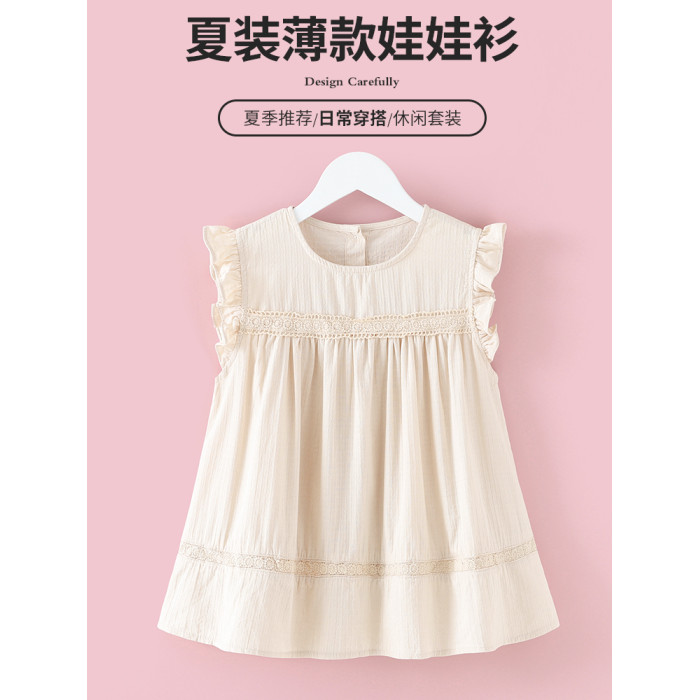 女童無袖娃娃衫夏季新款潮兒童休閒寬松上衣韓版女孩背心襯衫洋氣