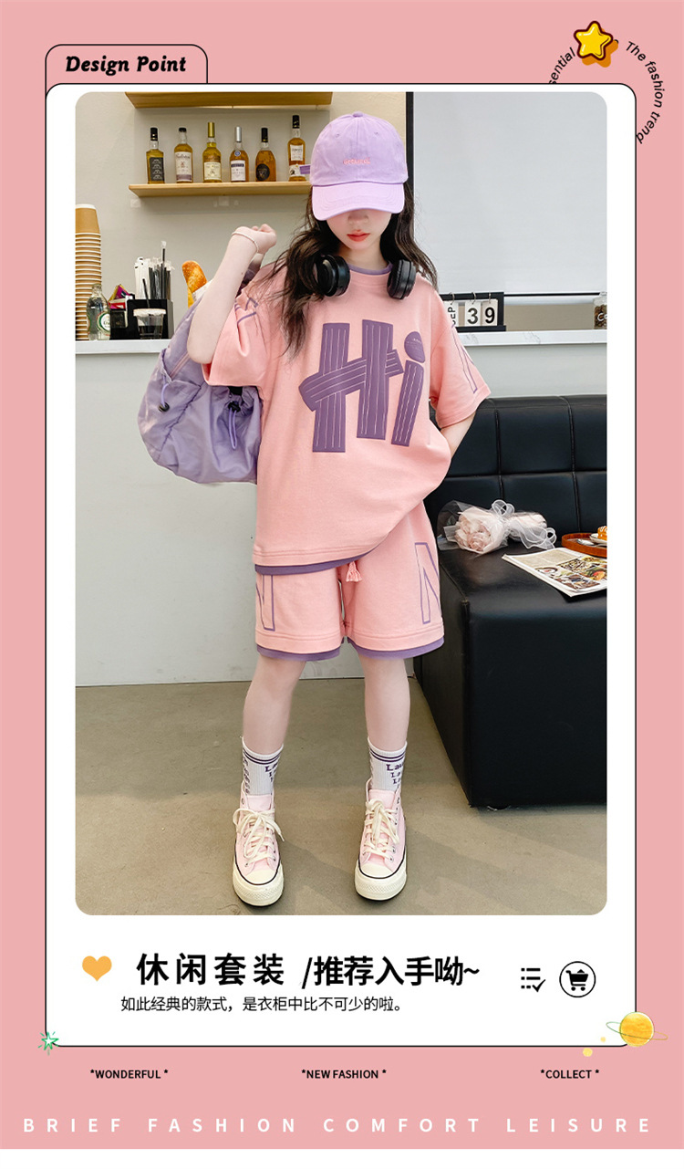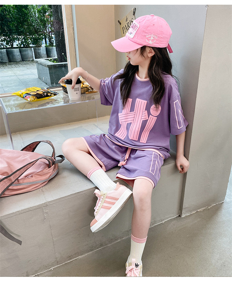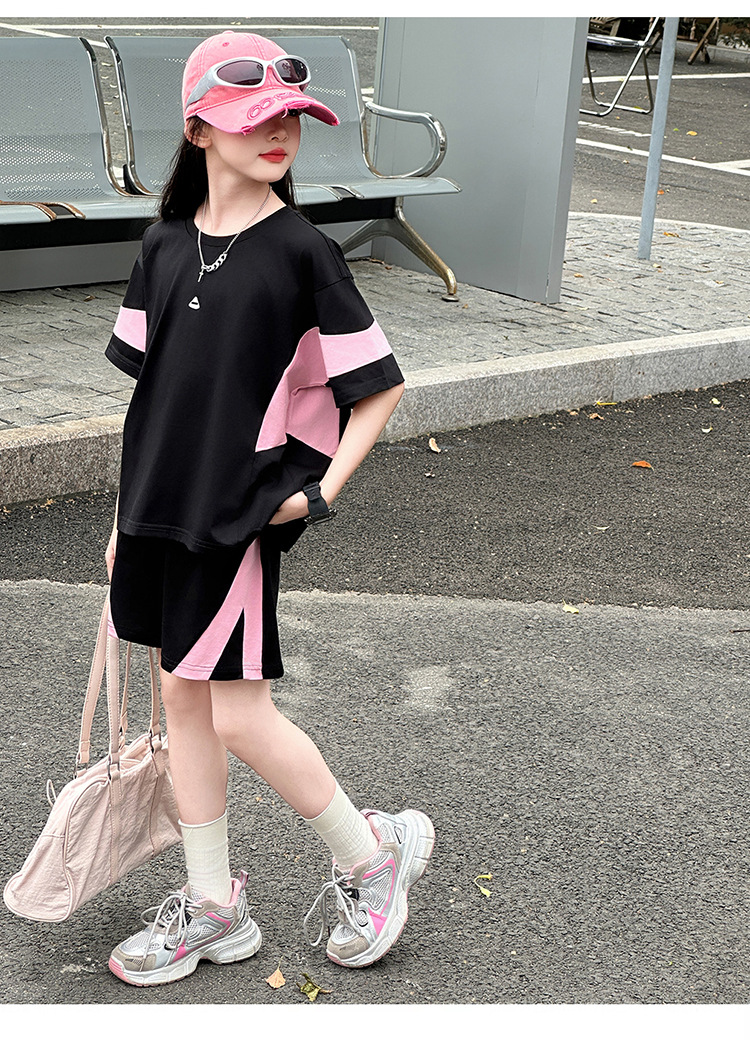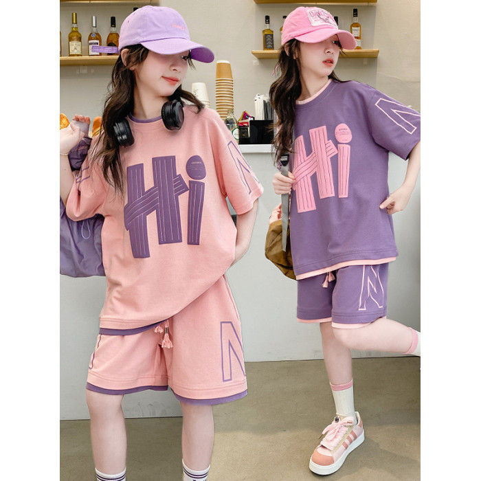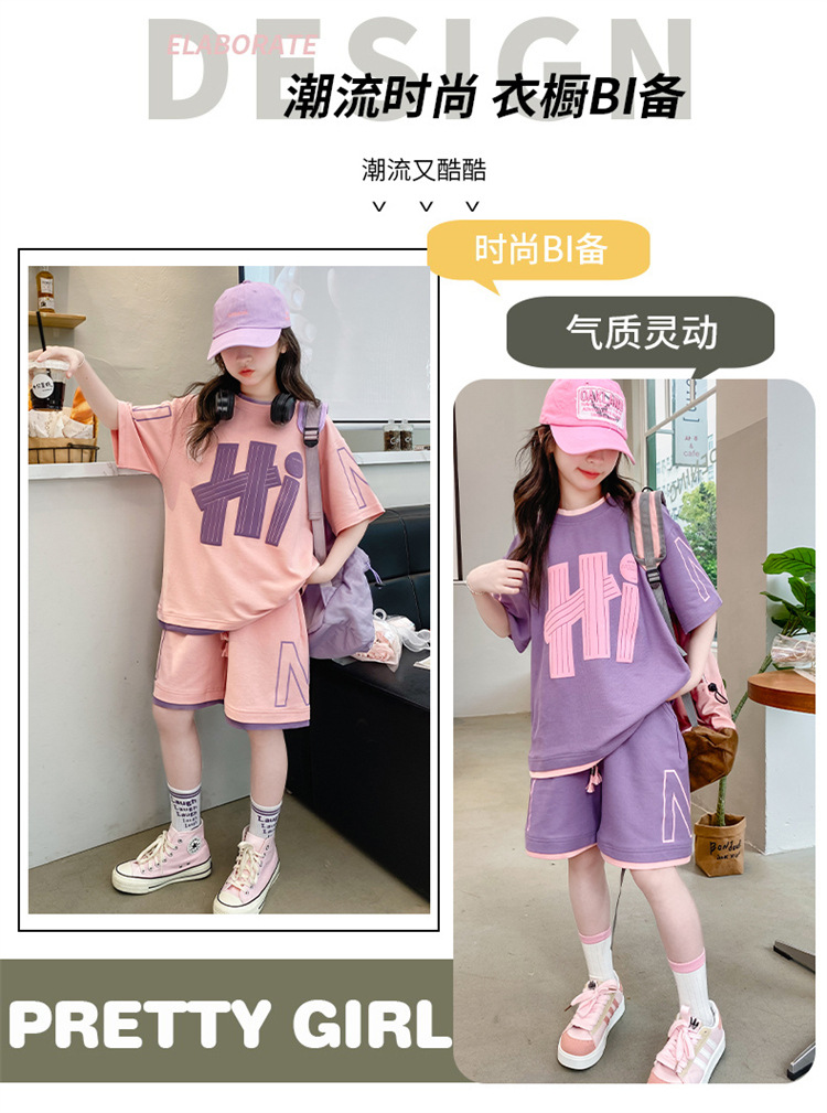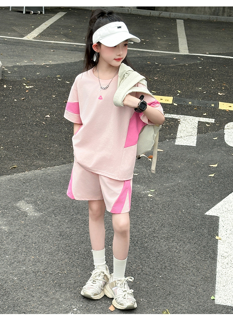 女童夏裝套裝2025新款夏款網紅洋氣8大童夏季短袖t恤小女孩兩件套