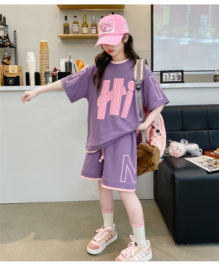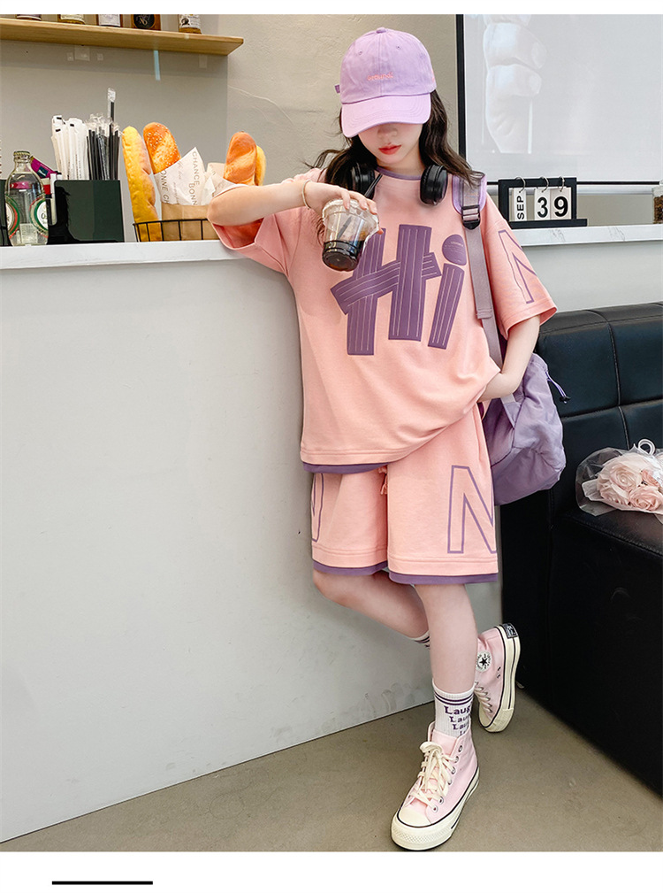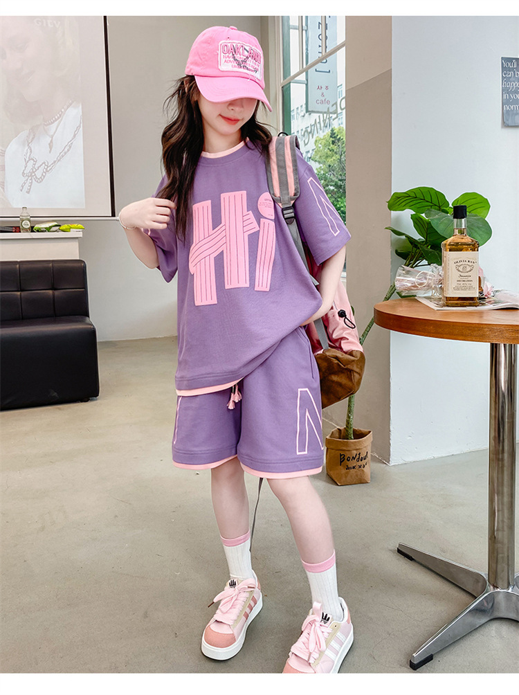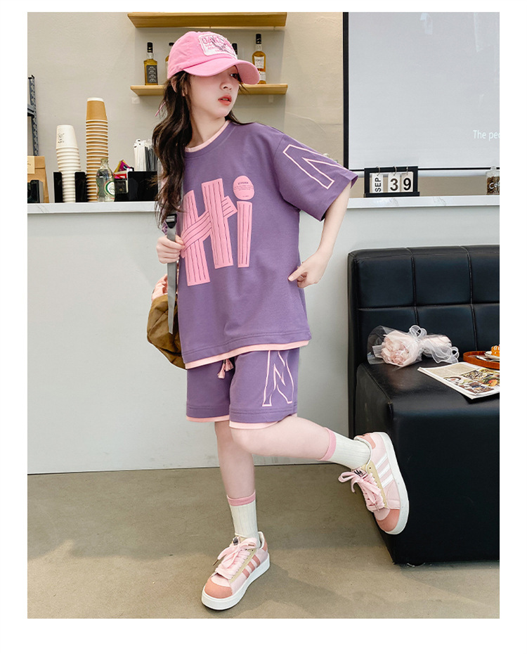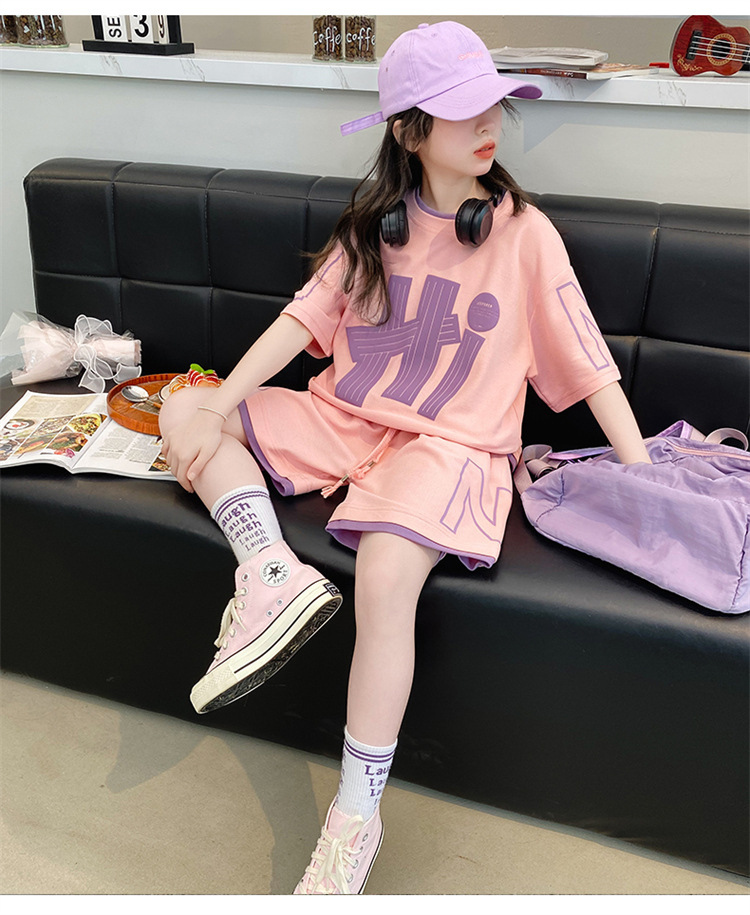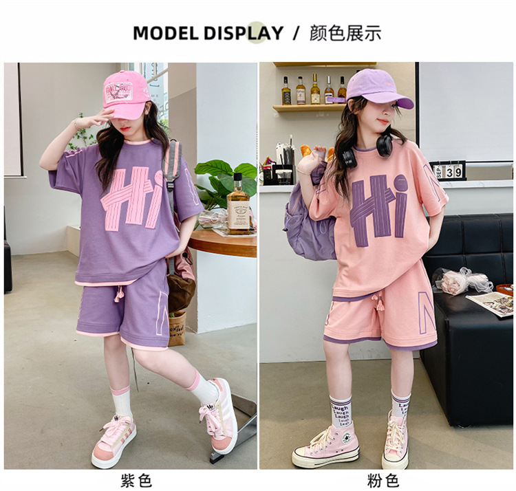 女童夏裝套裝2025新款夏款網紅洋氣8大童夏季短袖t恤小女孩兩件套