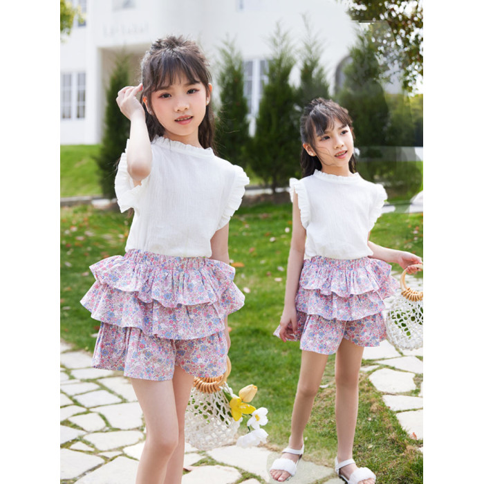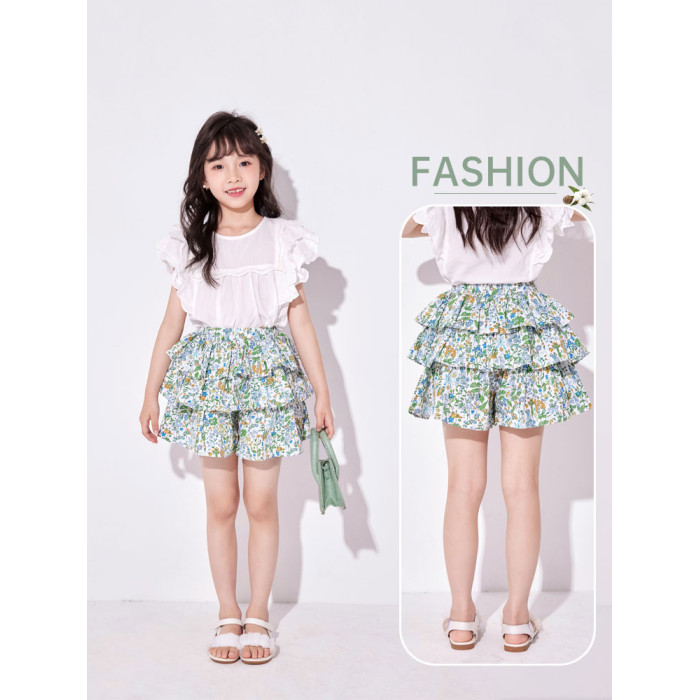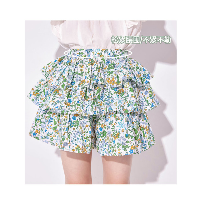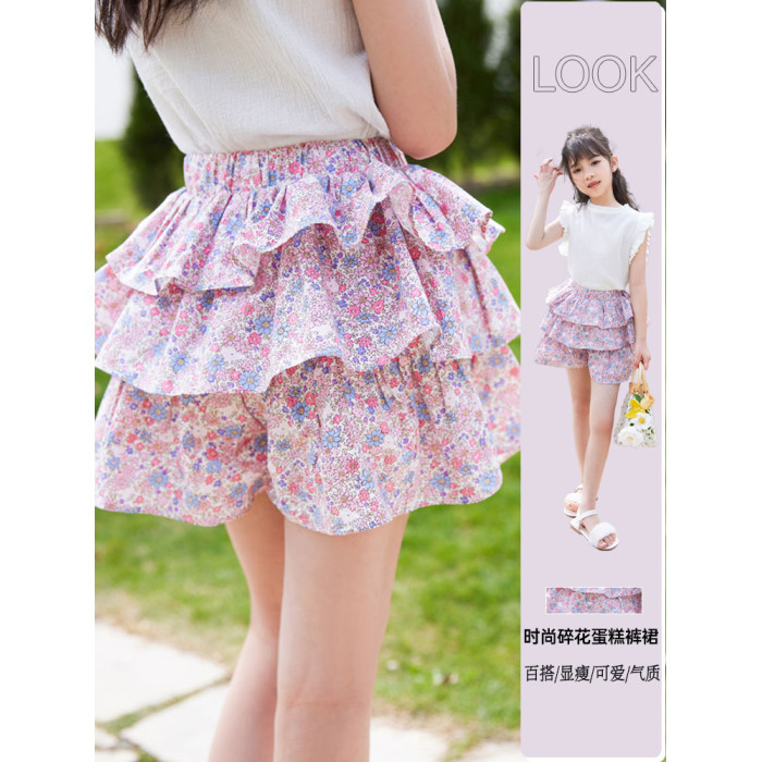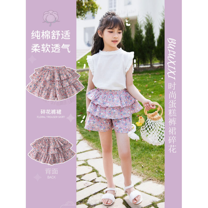 女童褲裙夏季薄款純棉碎花短褲兒童百褶裙2025新款全棉大童蛋糕裙