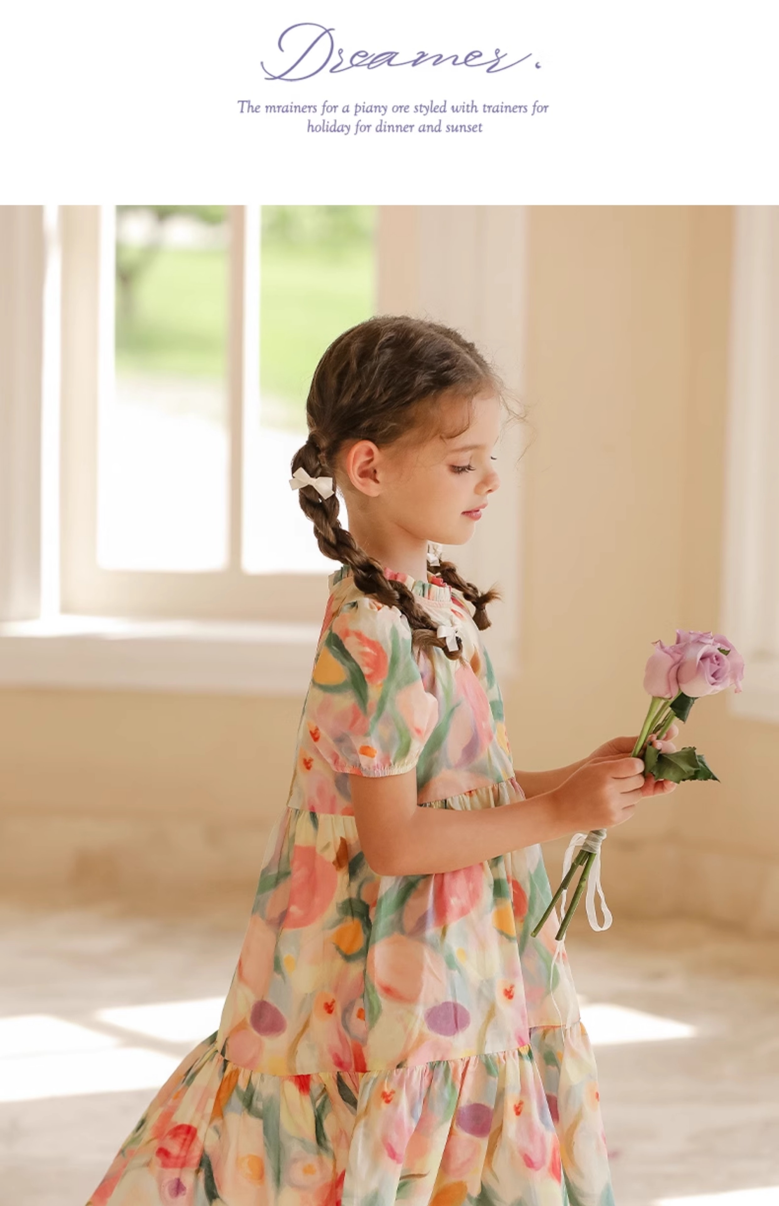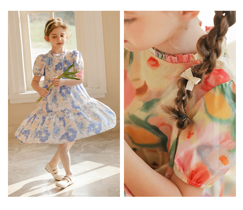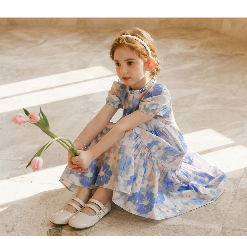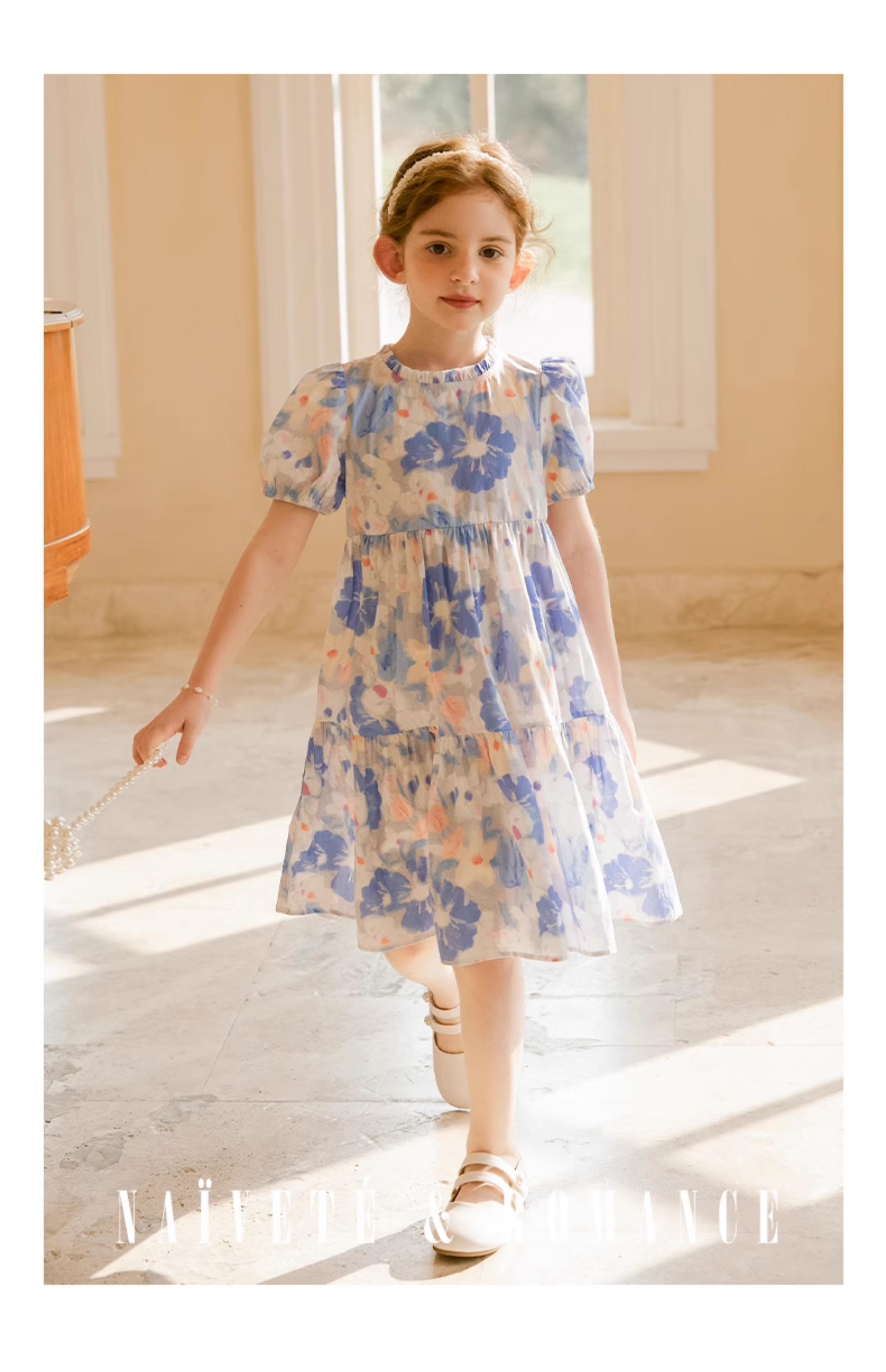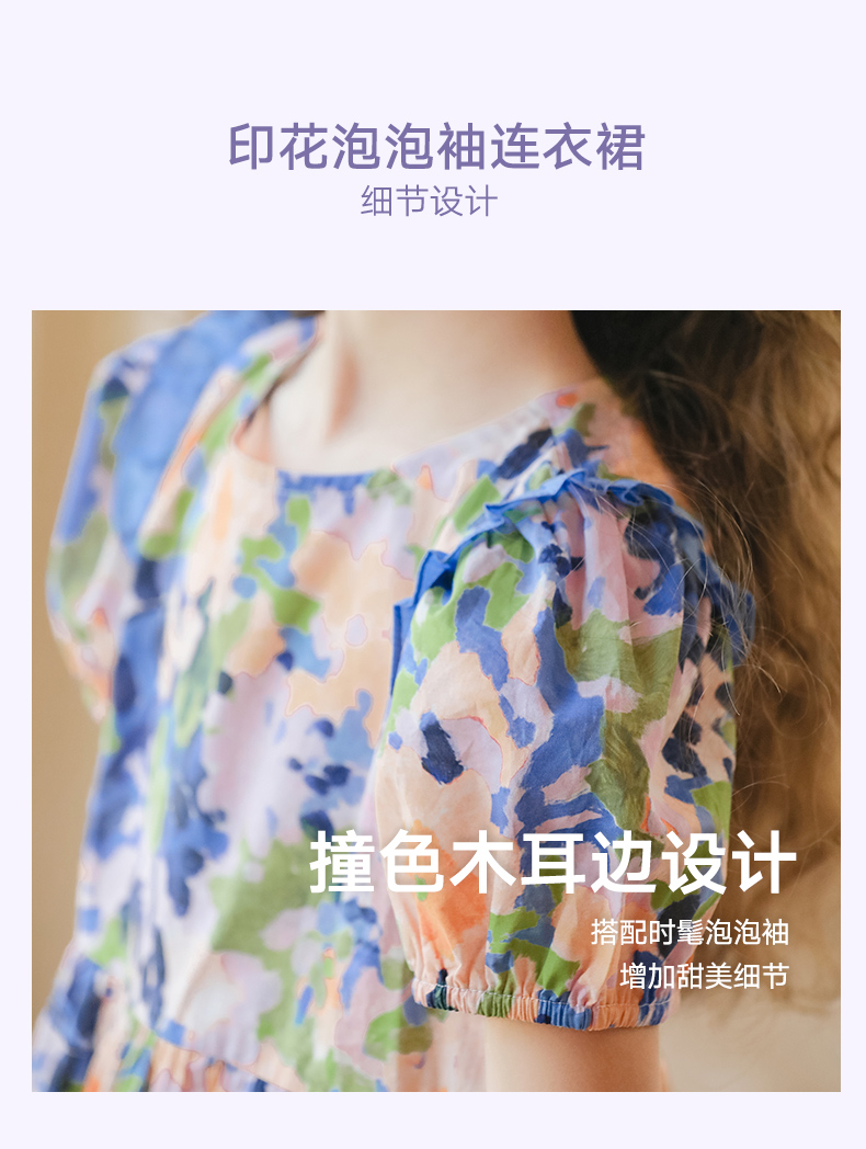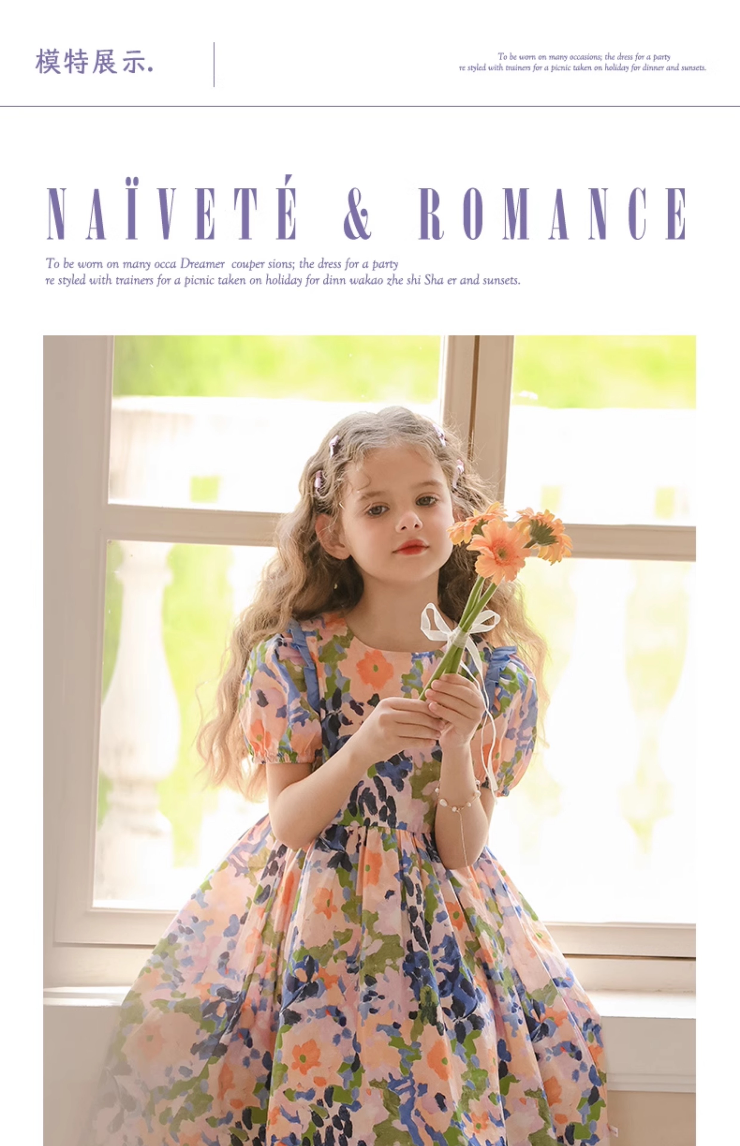 LittleNaive女童連衣裙夏新款多巴胺甜美中大童法式碎花裙子度假