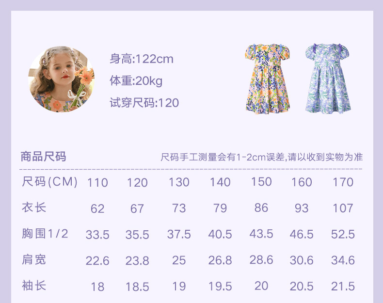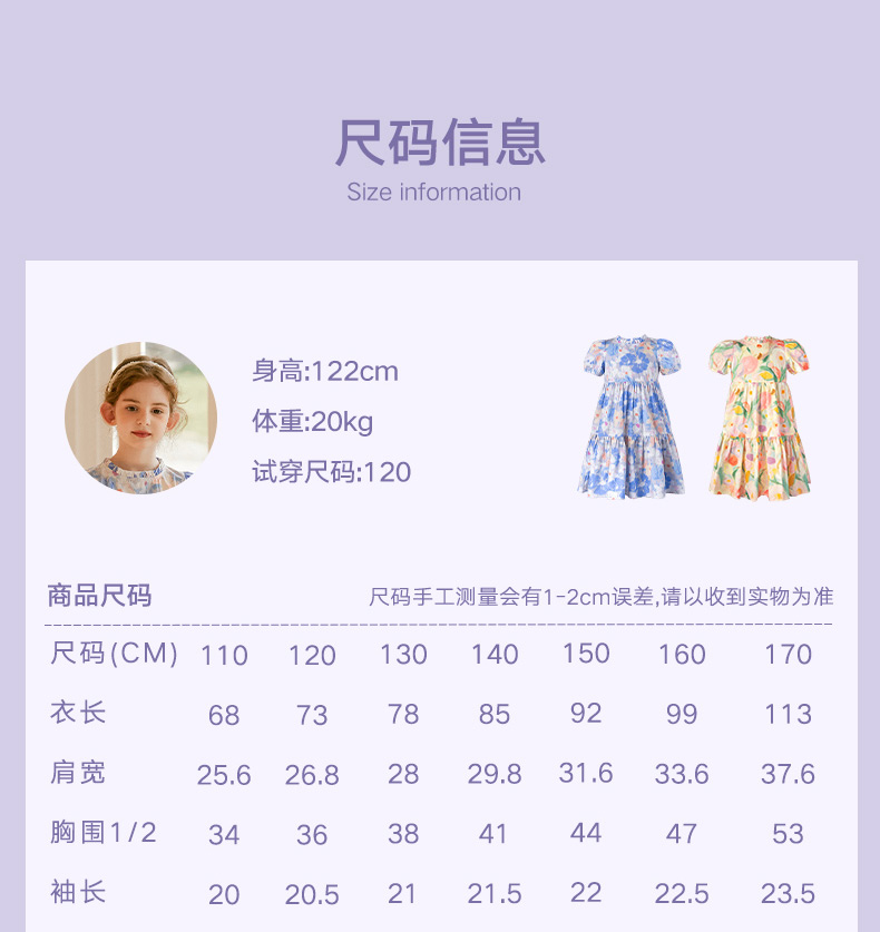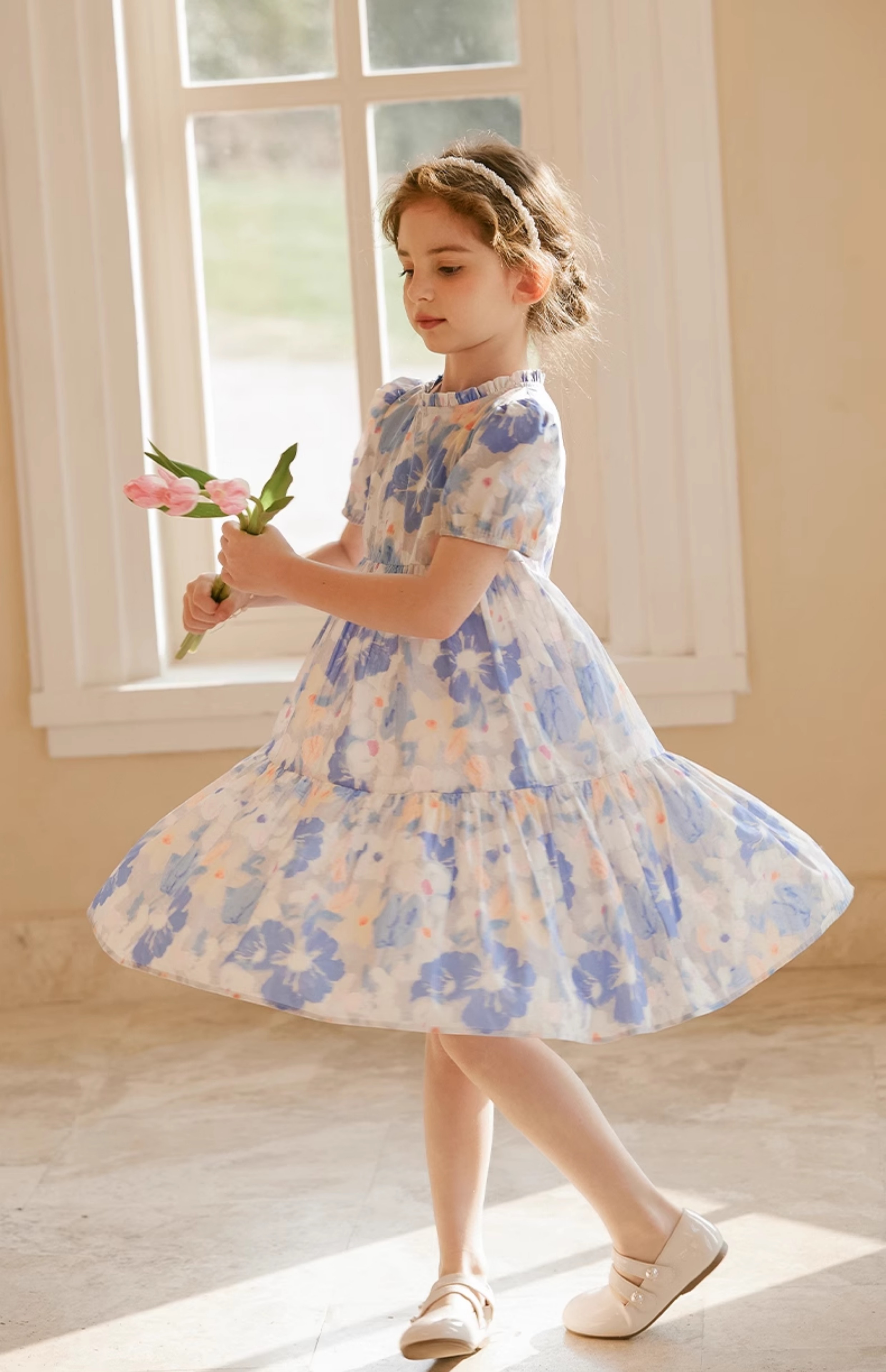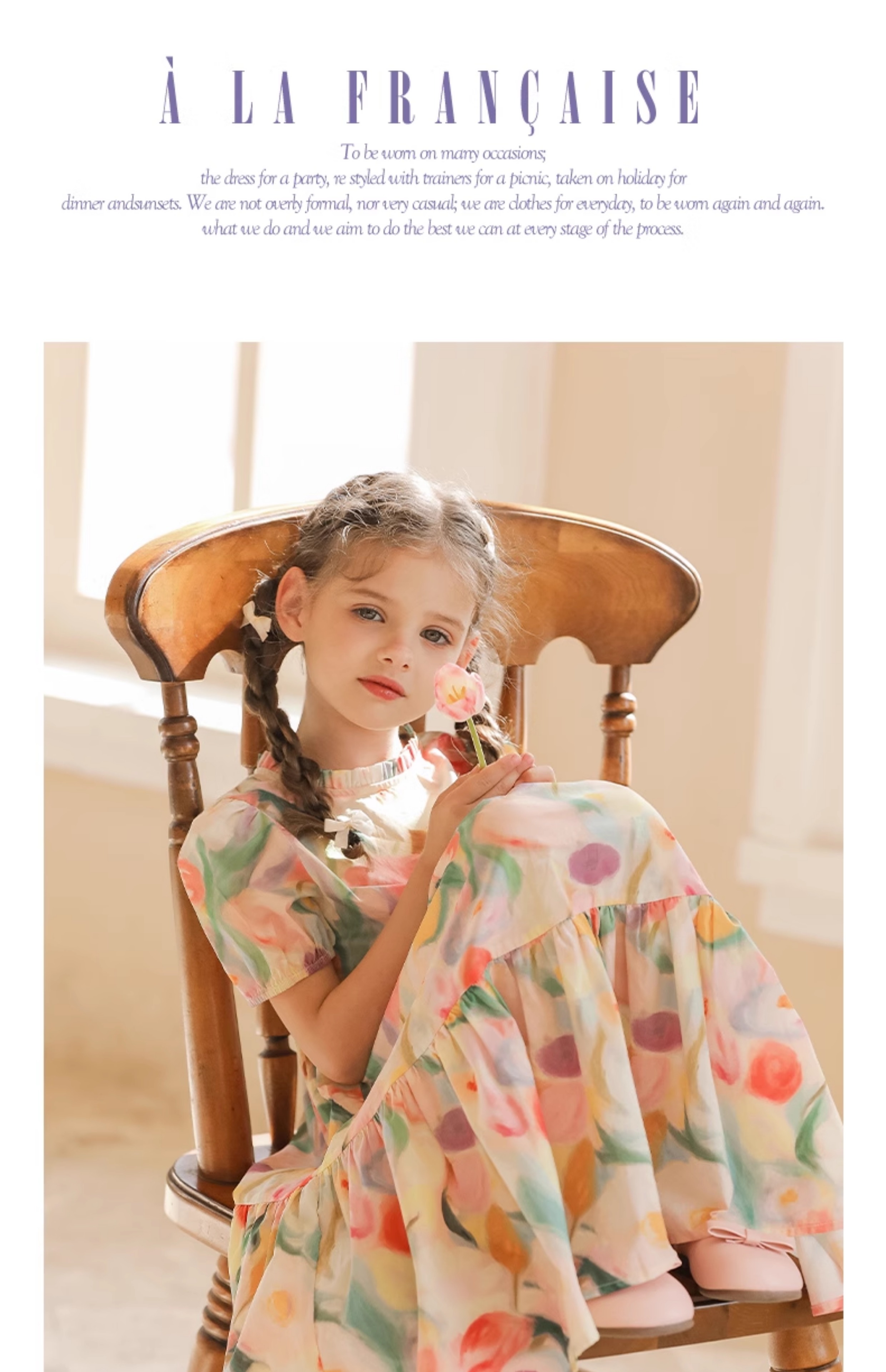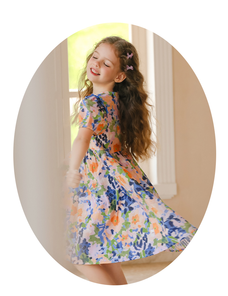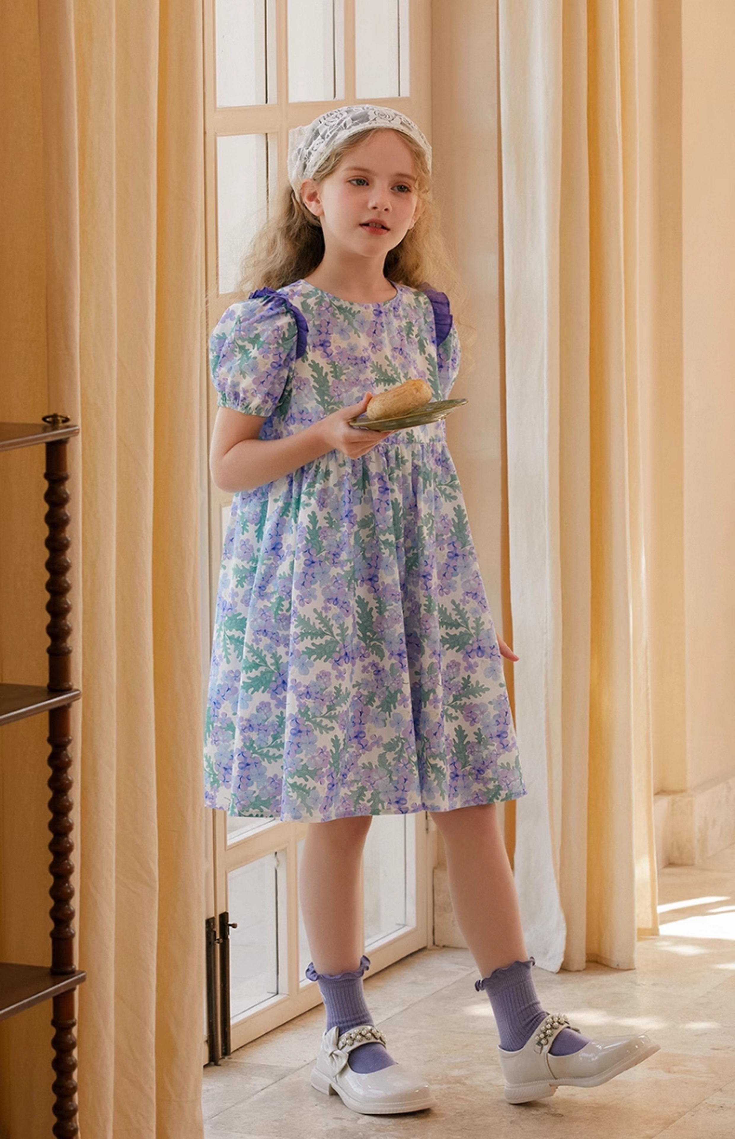 LittleNaive女童連衣裙夏新款多巴胺甜美中大童法式碎花裙子度假