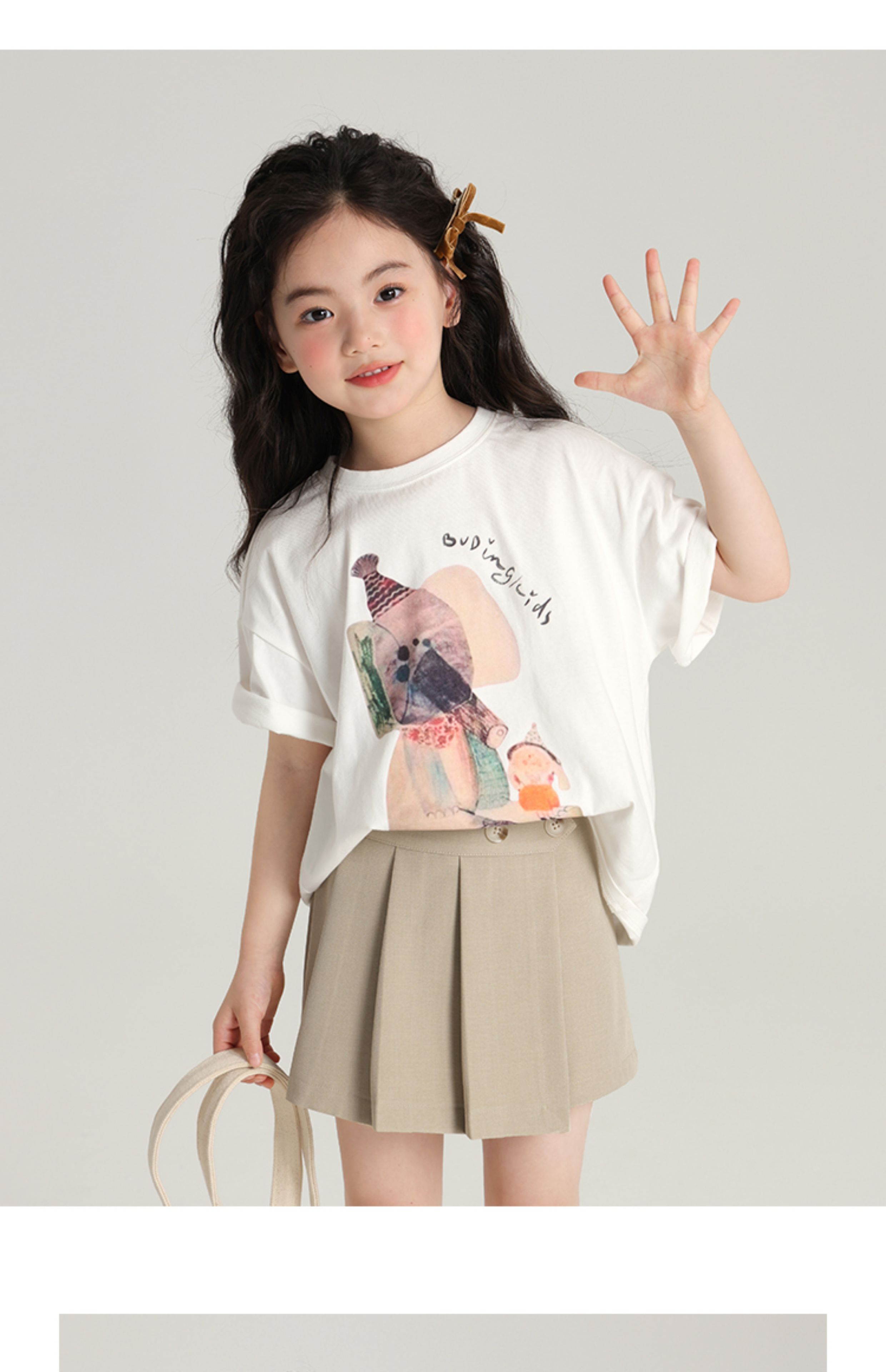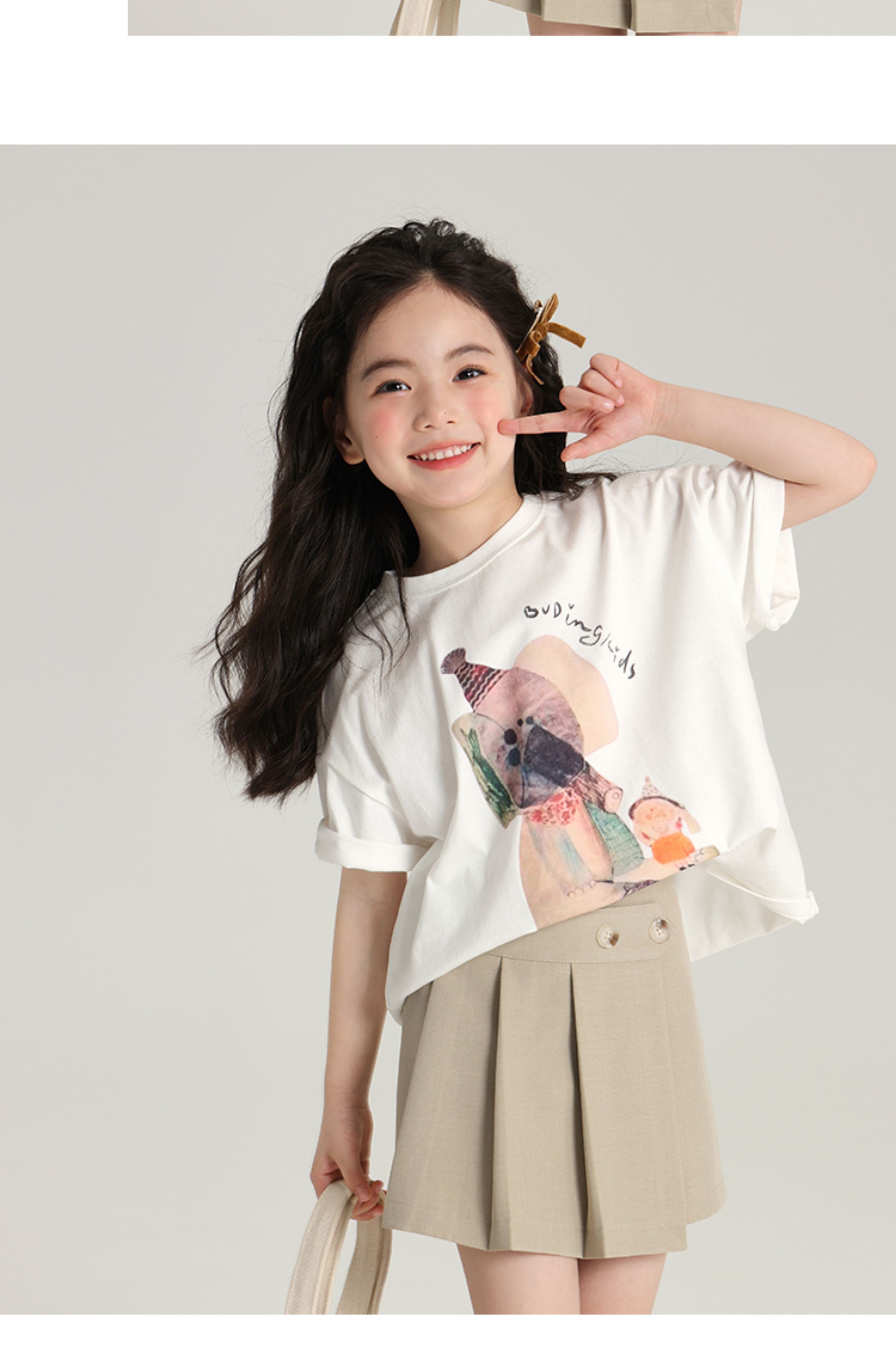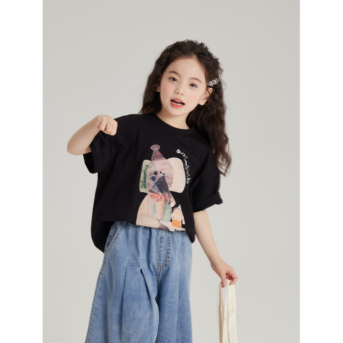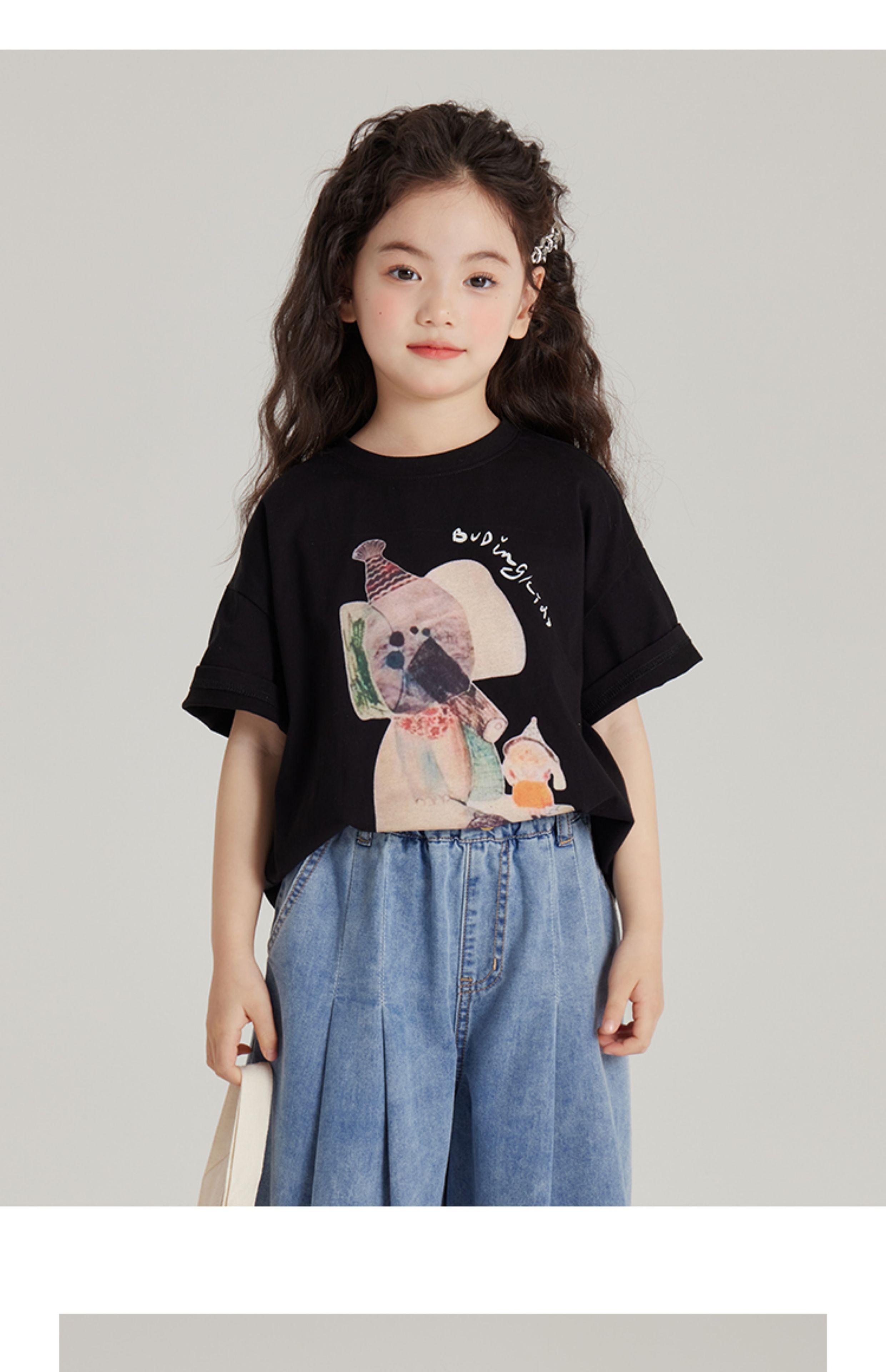 布丁哈魯童裝女童短袖t恤2025夏季新款兒童百搭洋氣卡通上衣