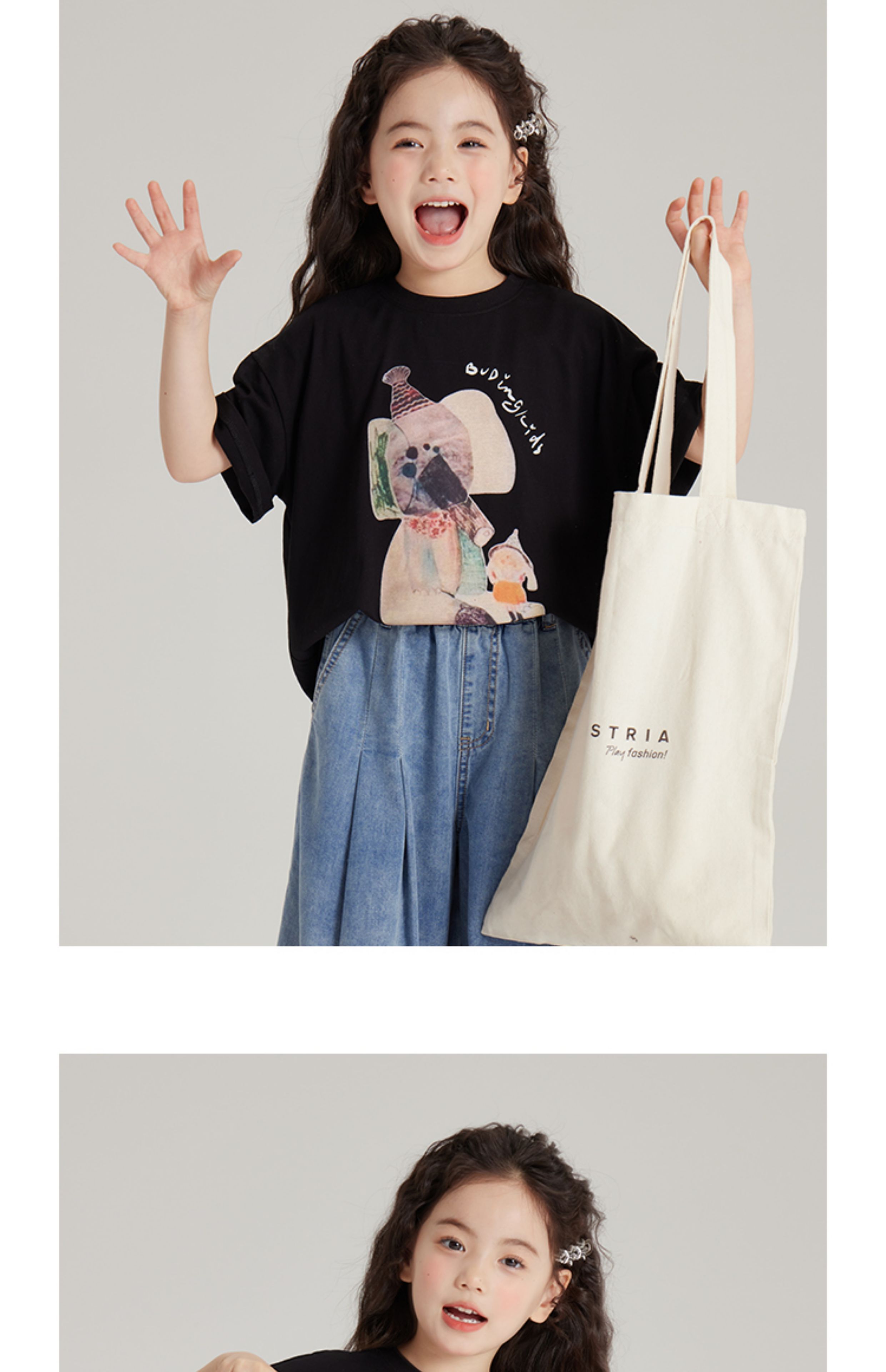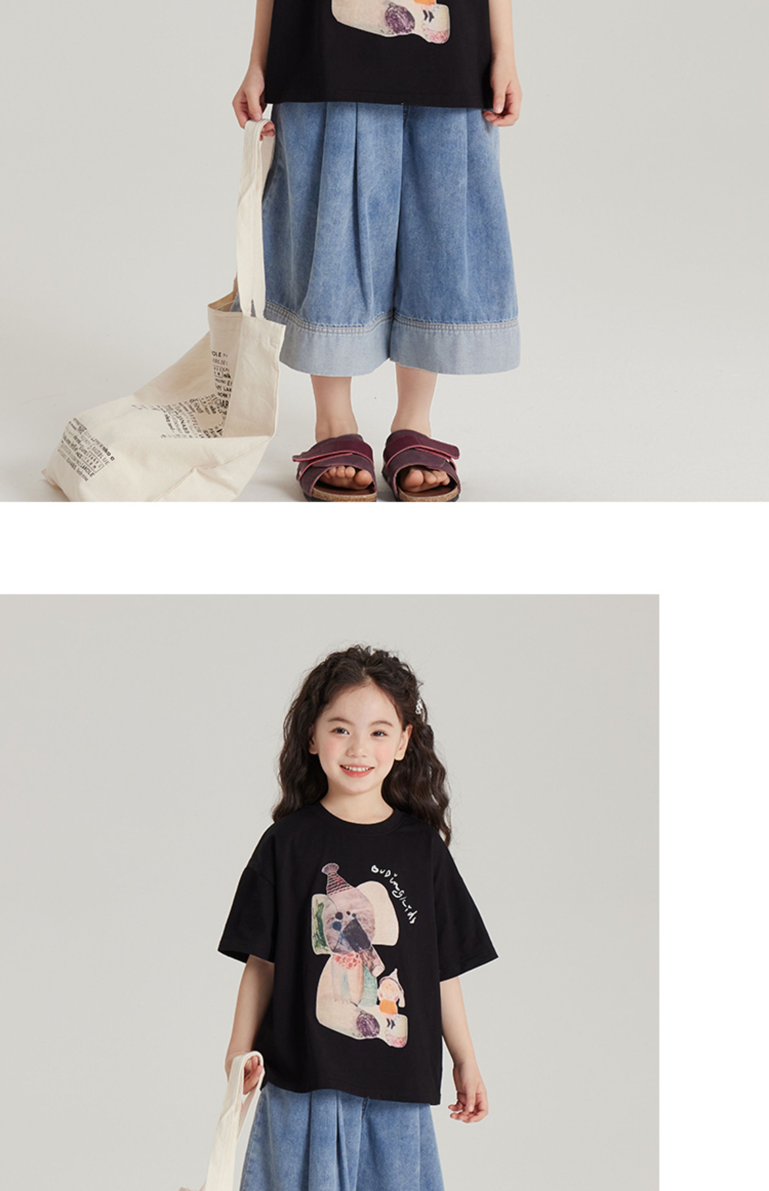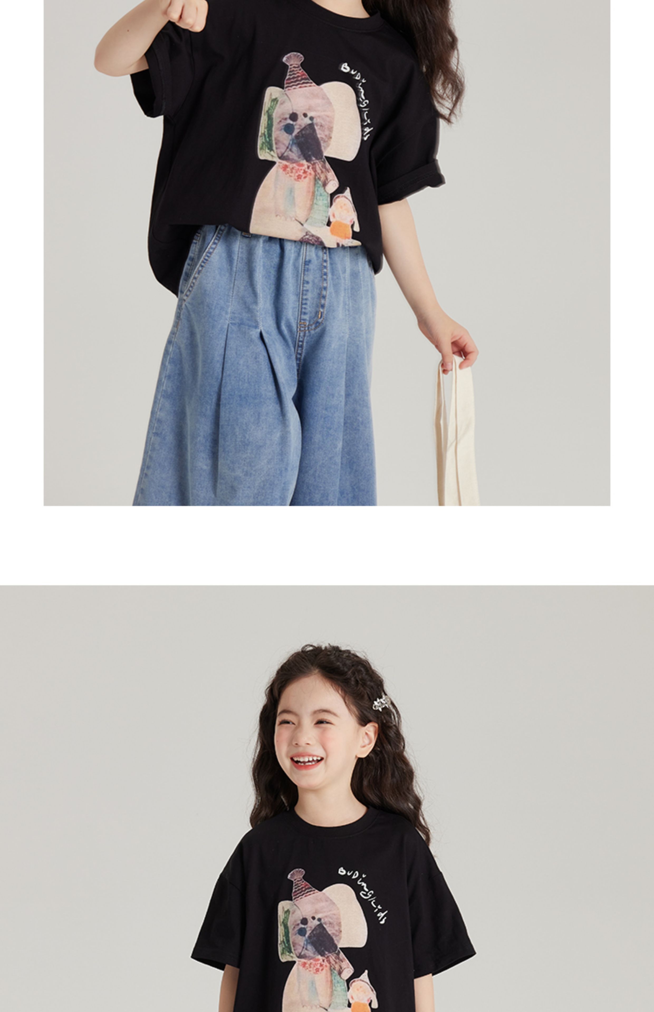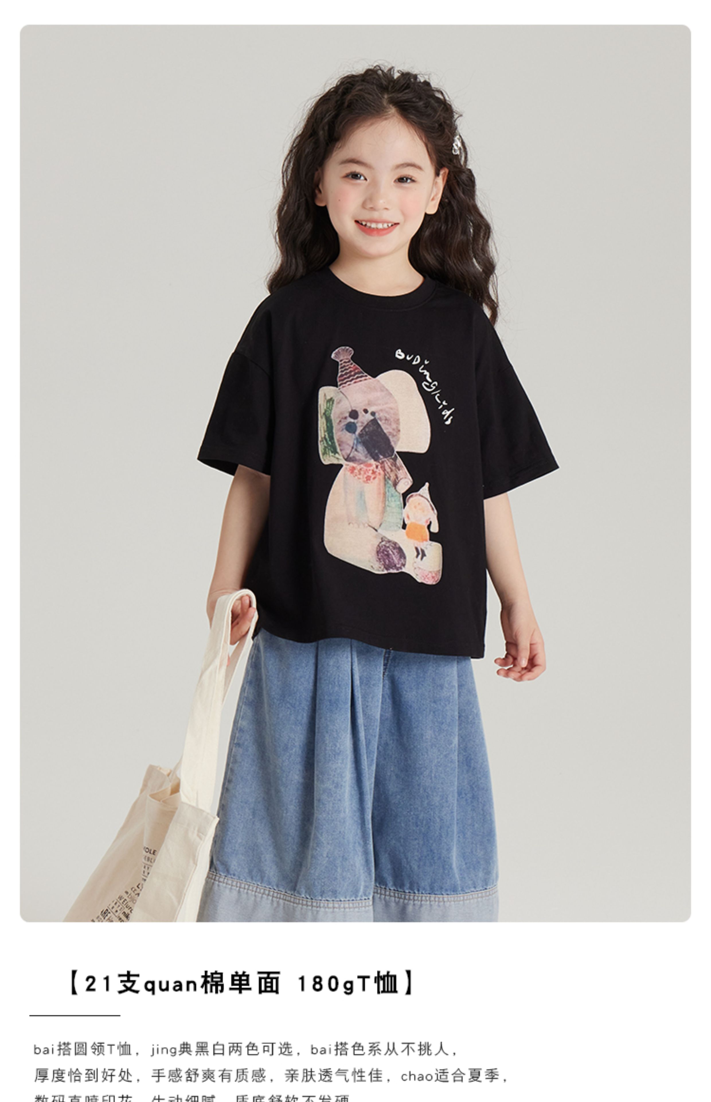 布丁哈魯童裝女童短袖t恤2025夏季新款兒童百搭洋氣卡通上衣