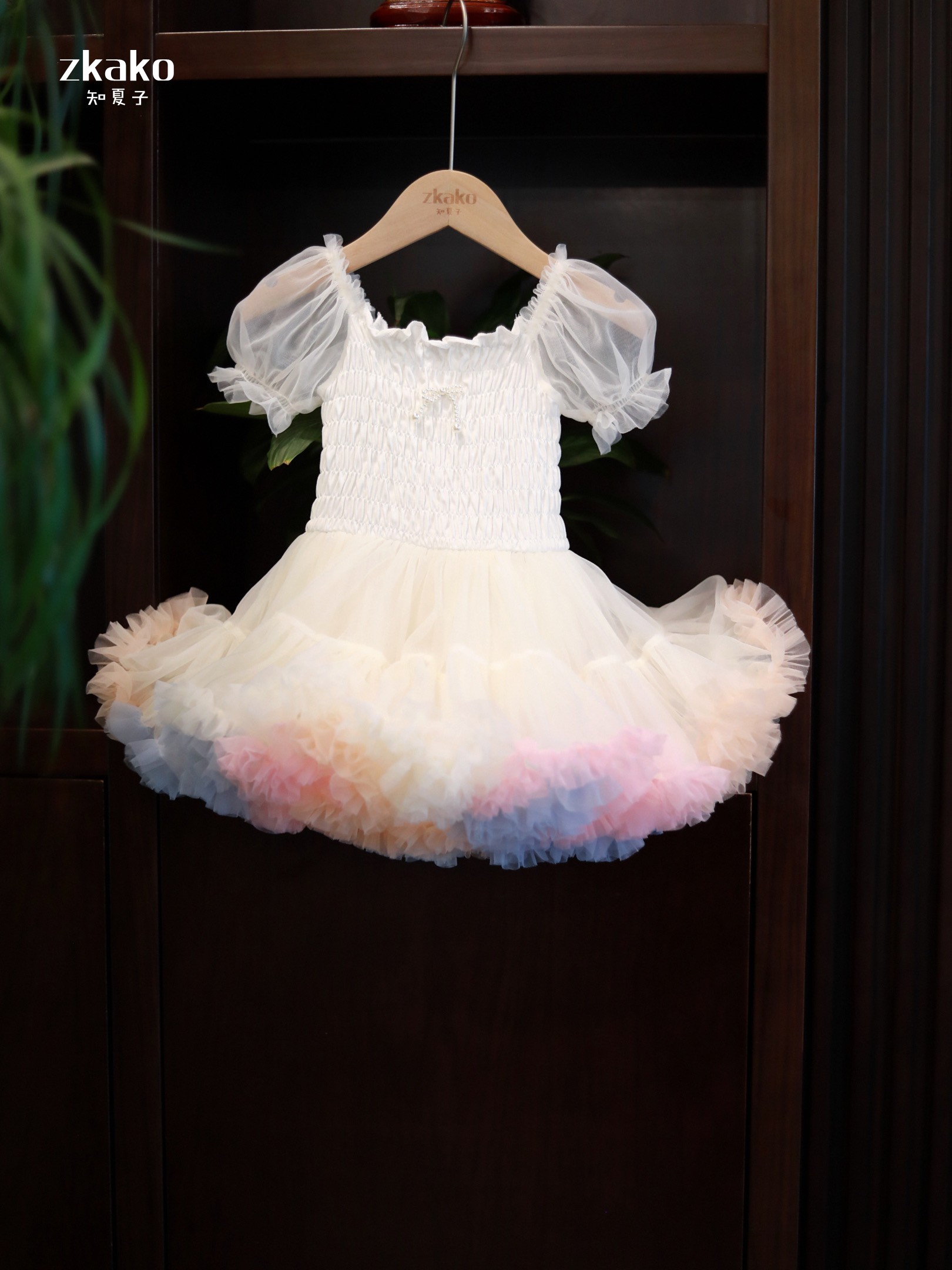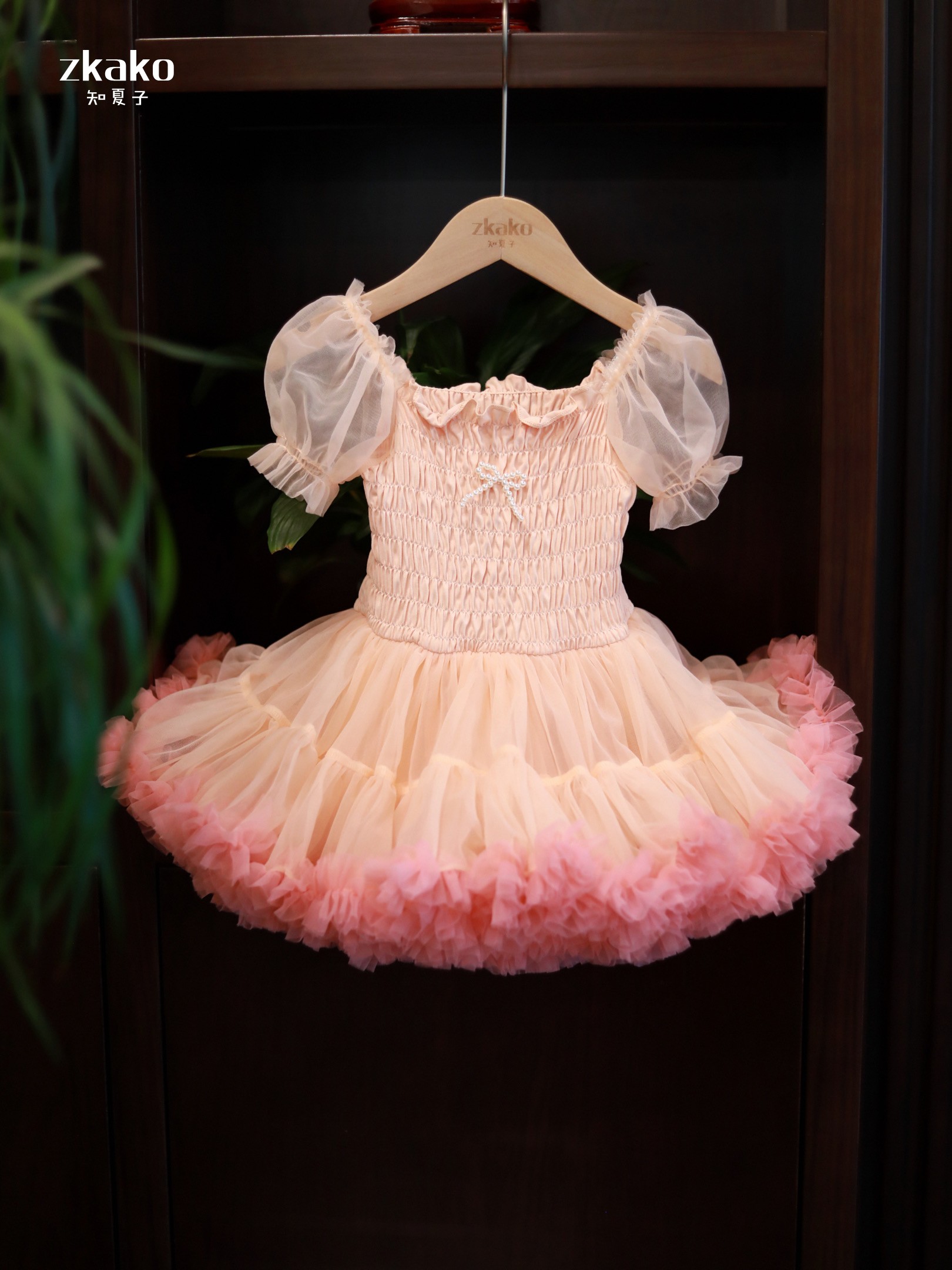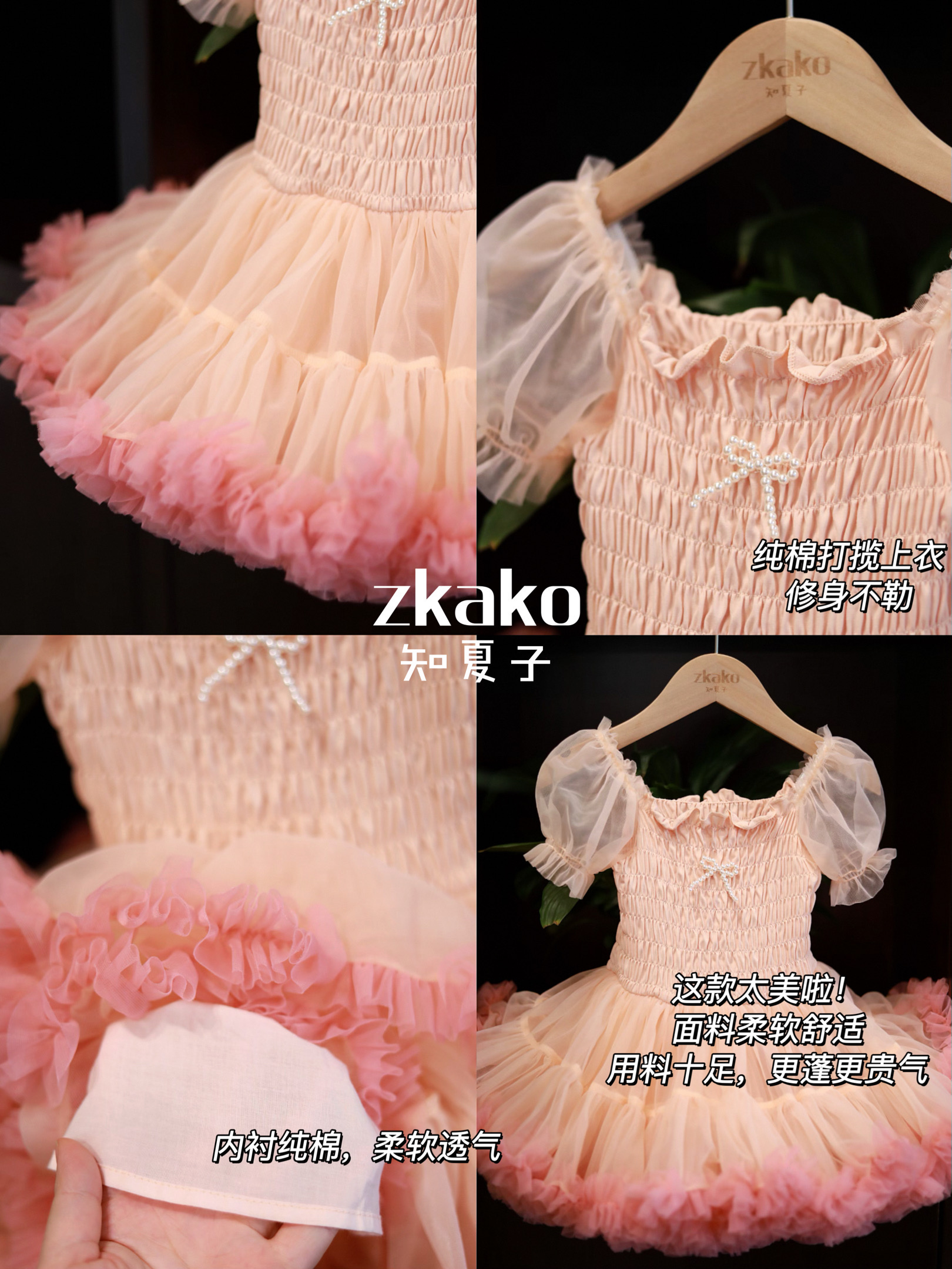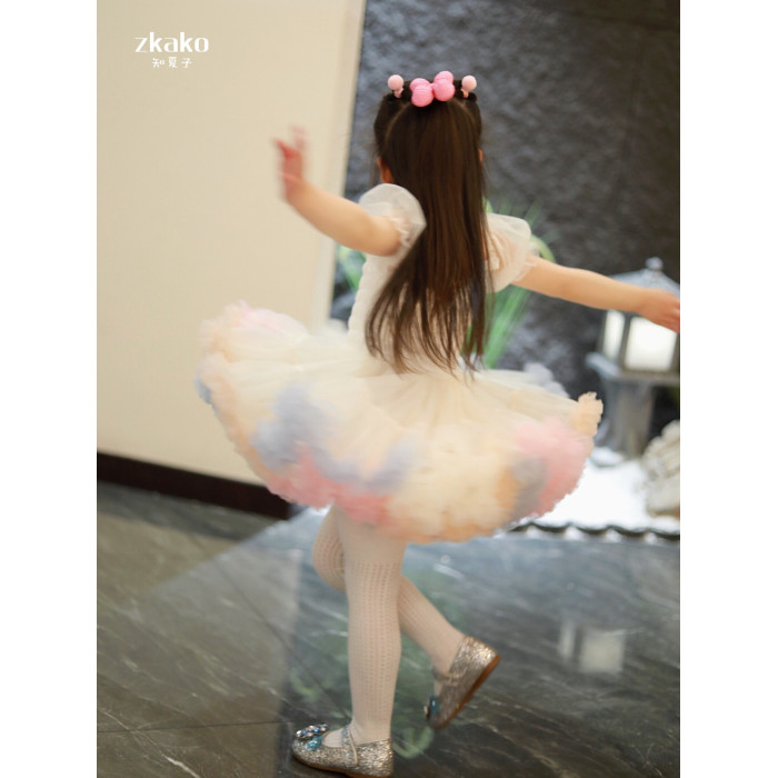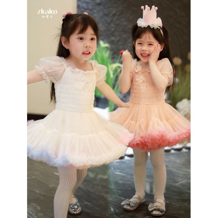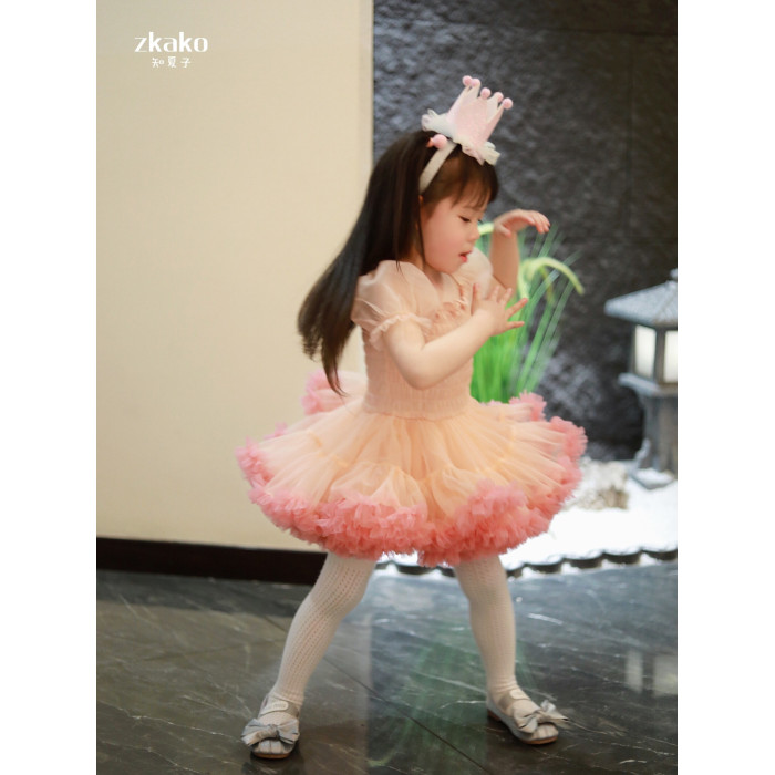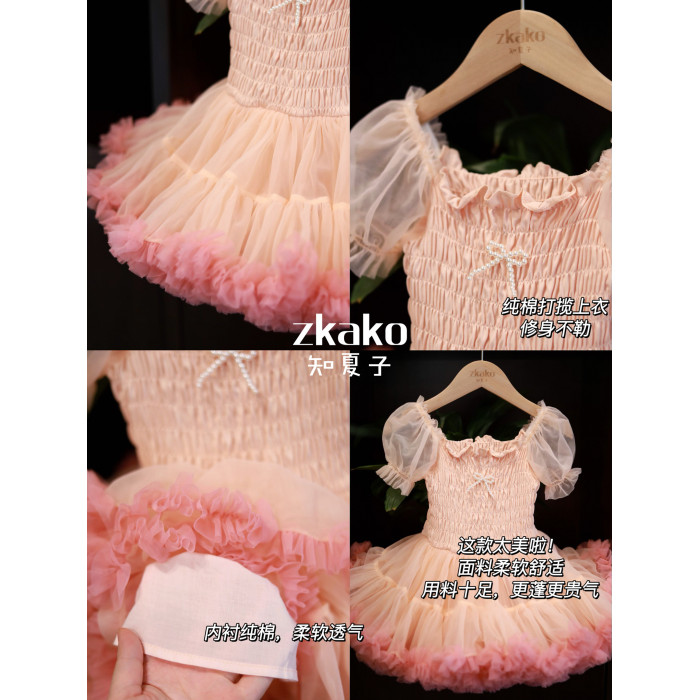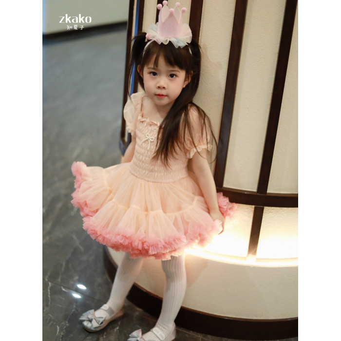 zkako知夏子女童tutu裙網紅公主裙粉色網紗蓬蓬裙短袖生日連衣裙