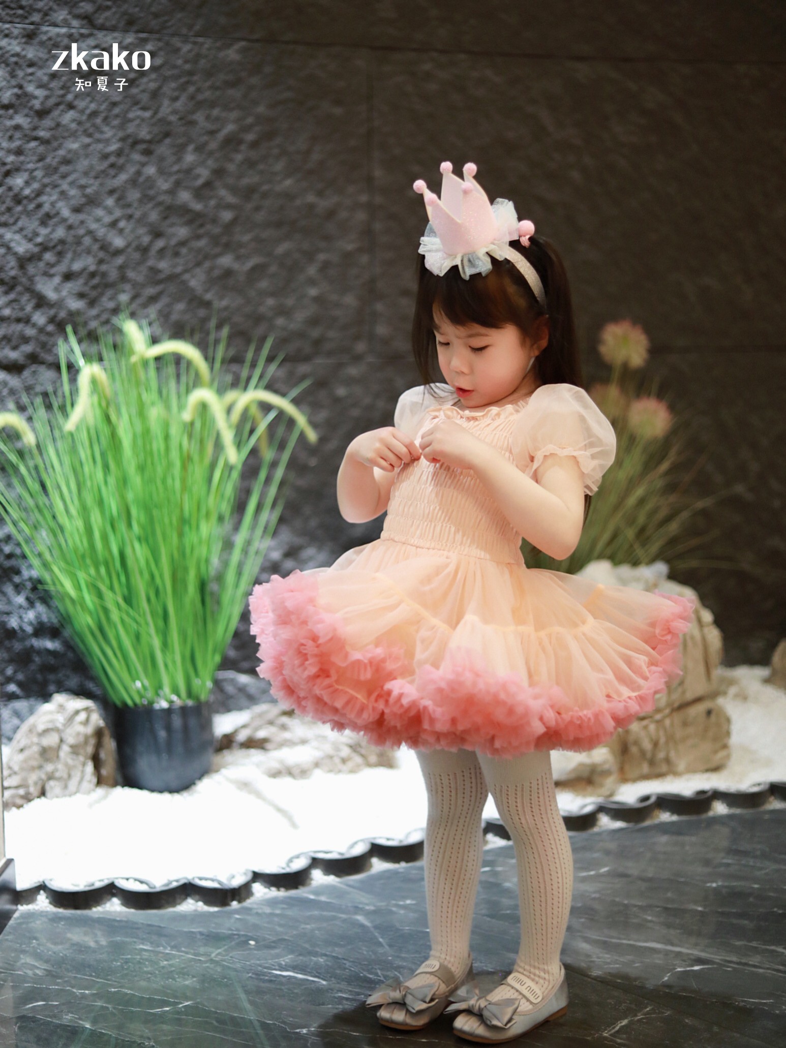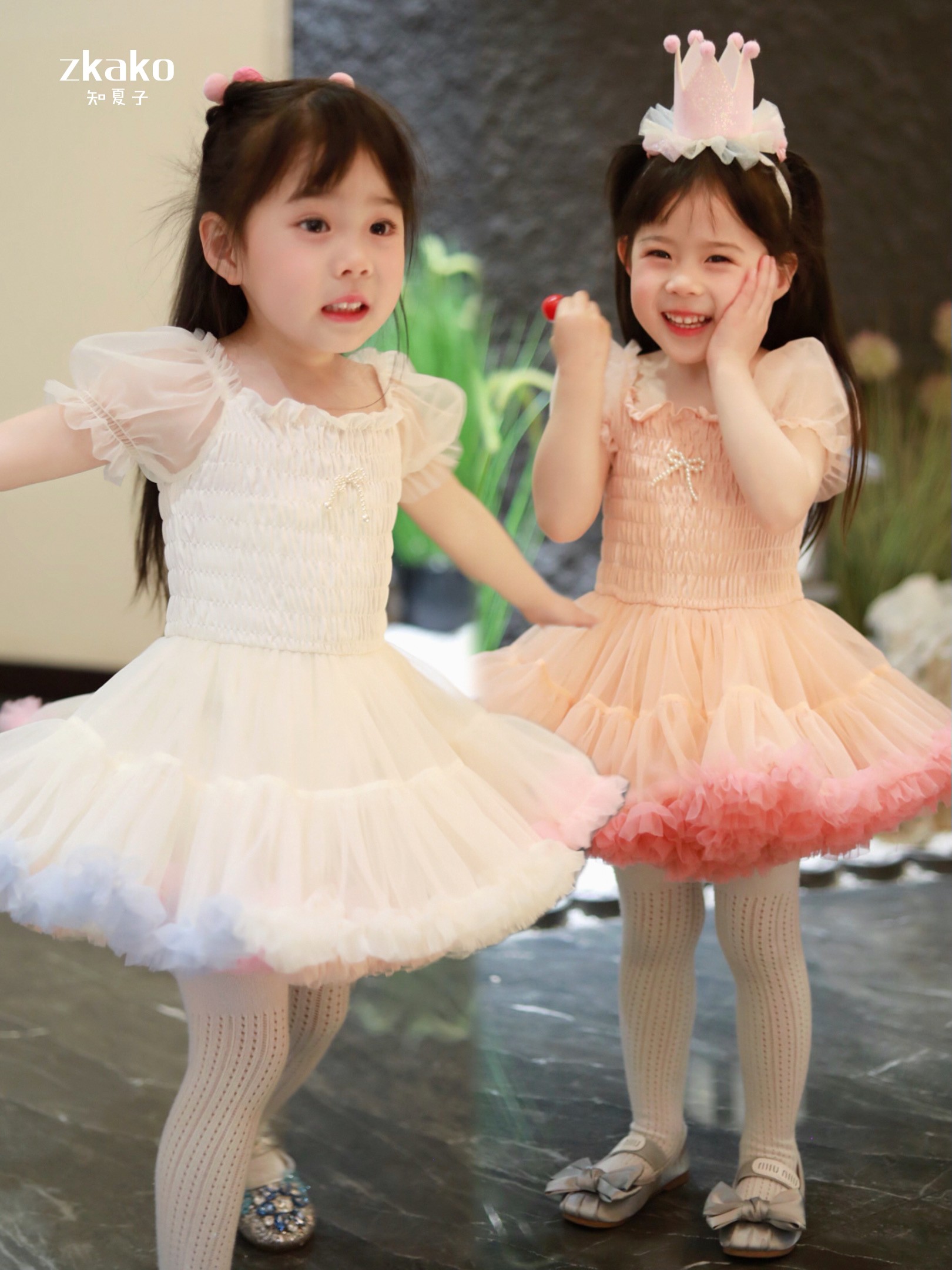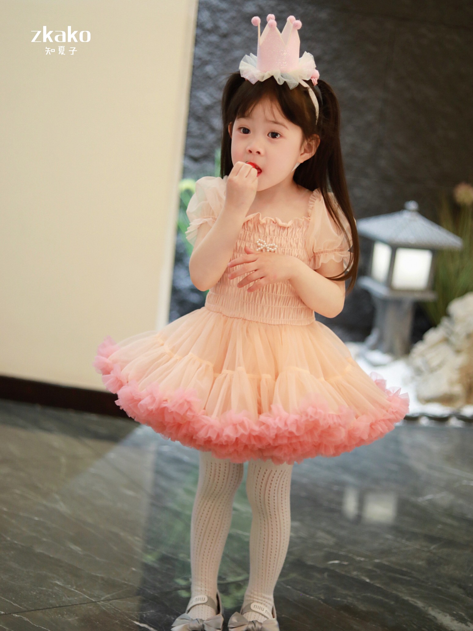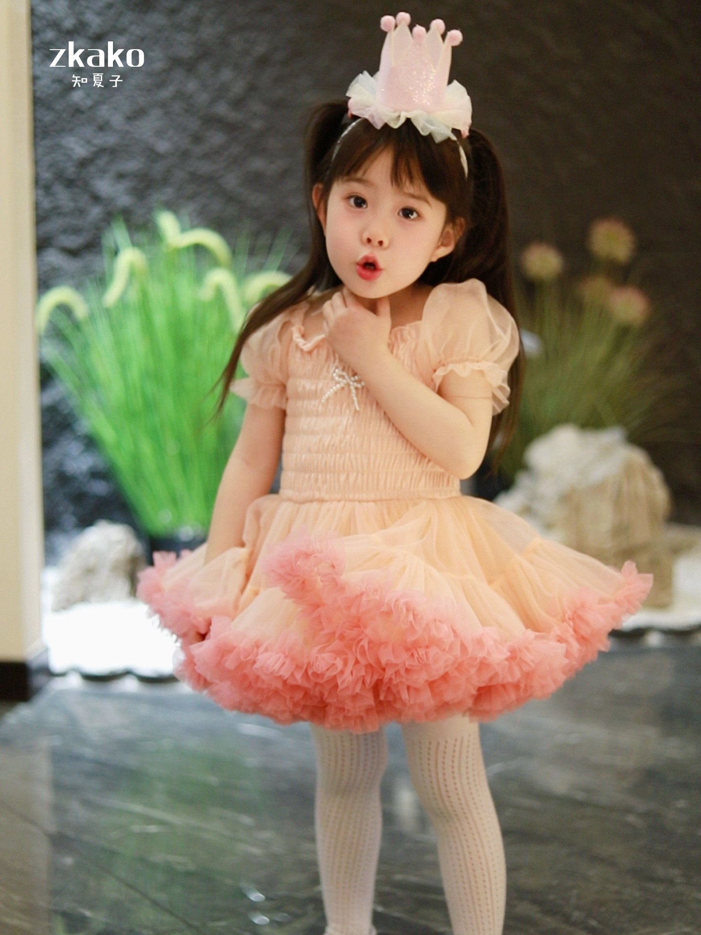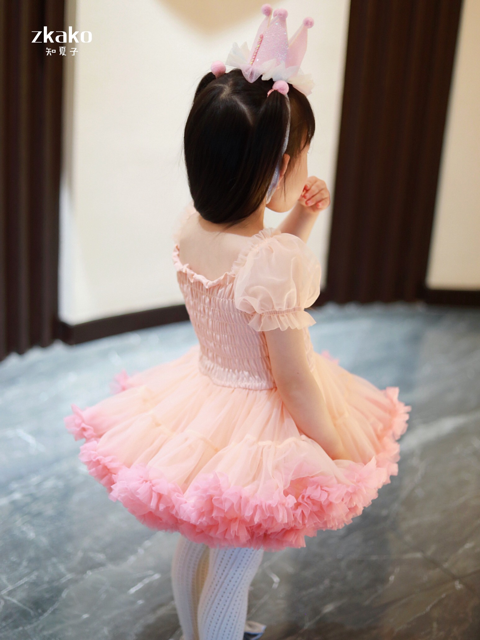 zkako知夏子女童tutu裙網紅公主裙粉色網紗蓬蓬裙短袖生日連衣裙