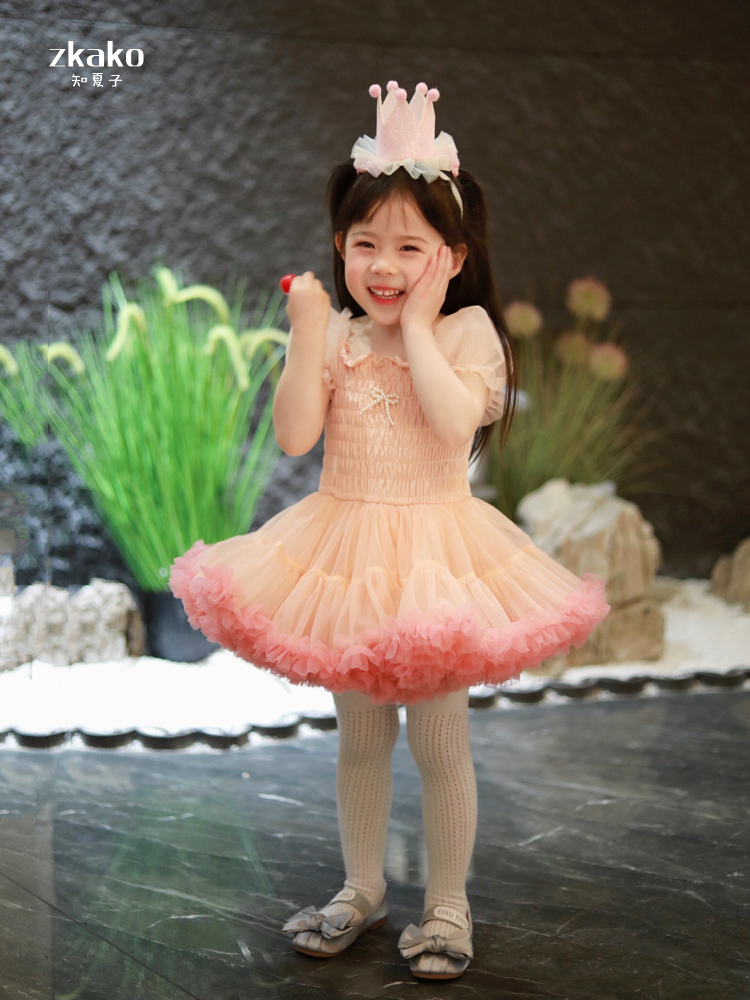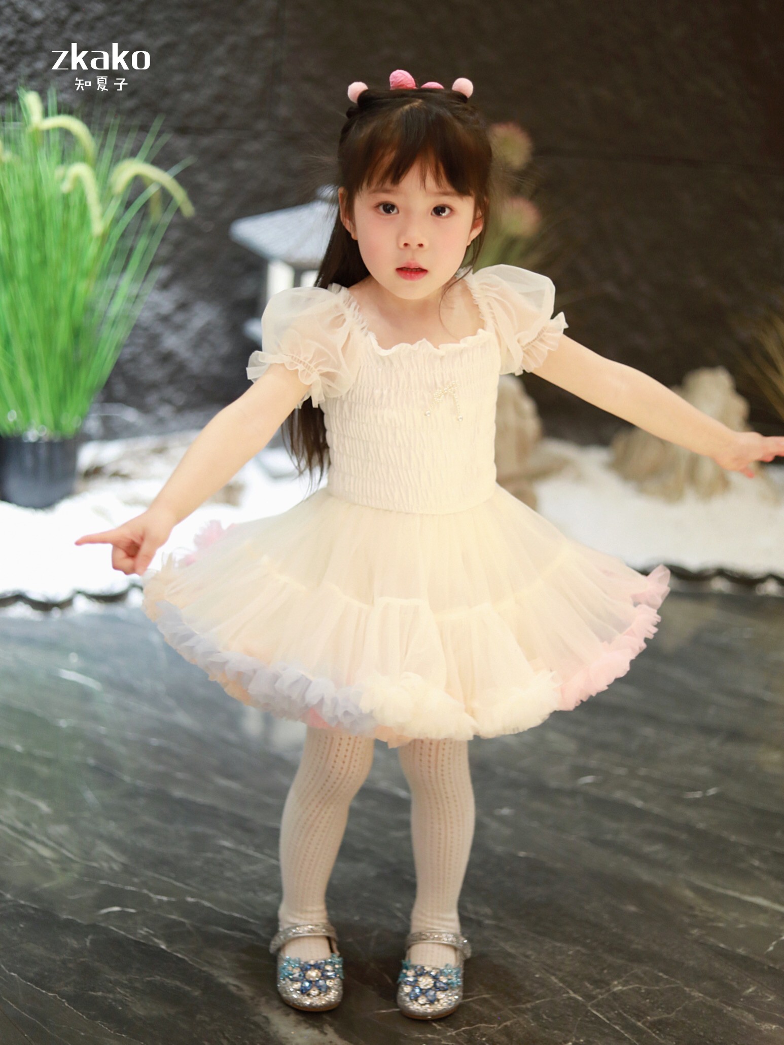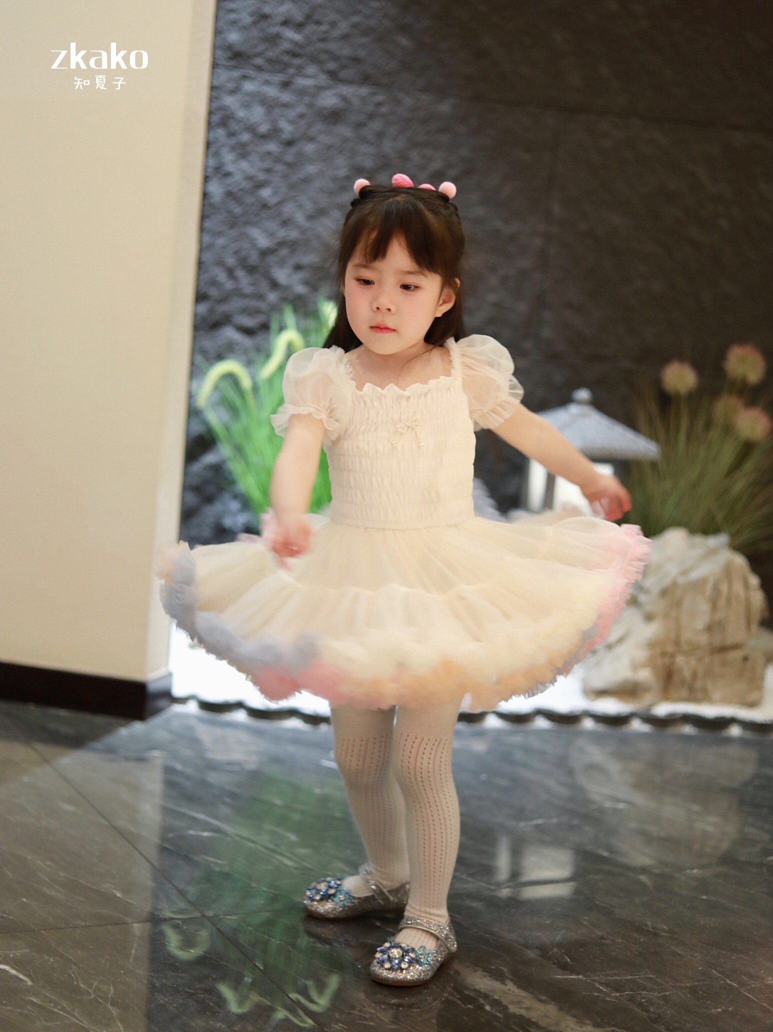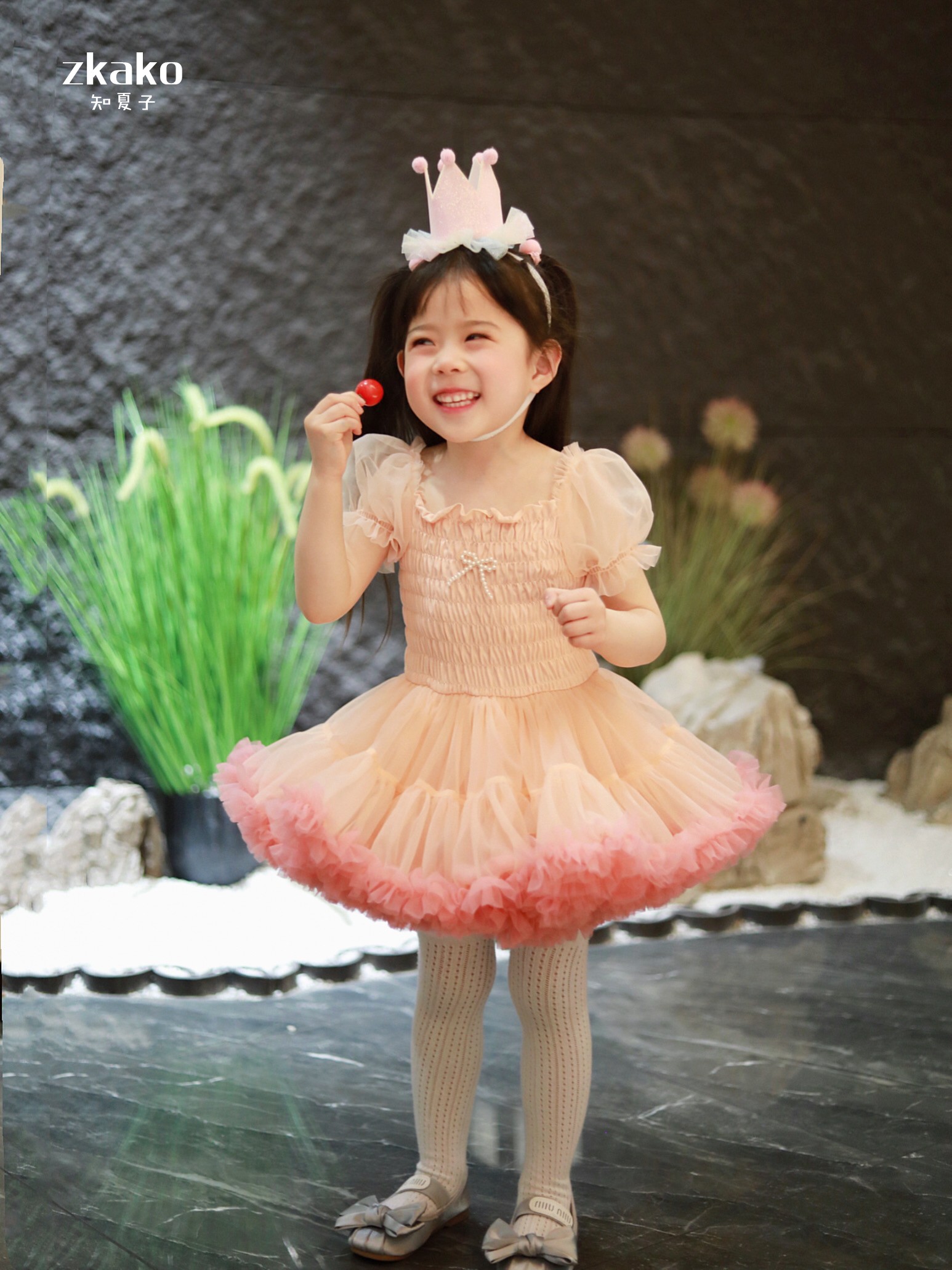 zkako知夏子女童tutu裙網紅公主裙粉色網紗蓬蓬裙短袖生日連衣裙