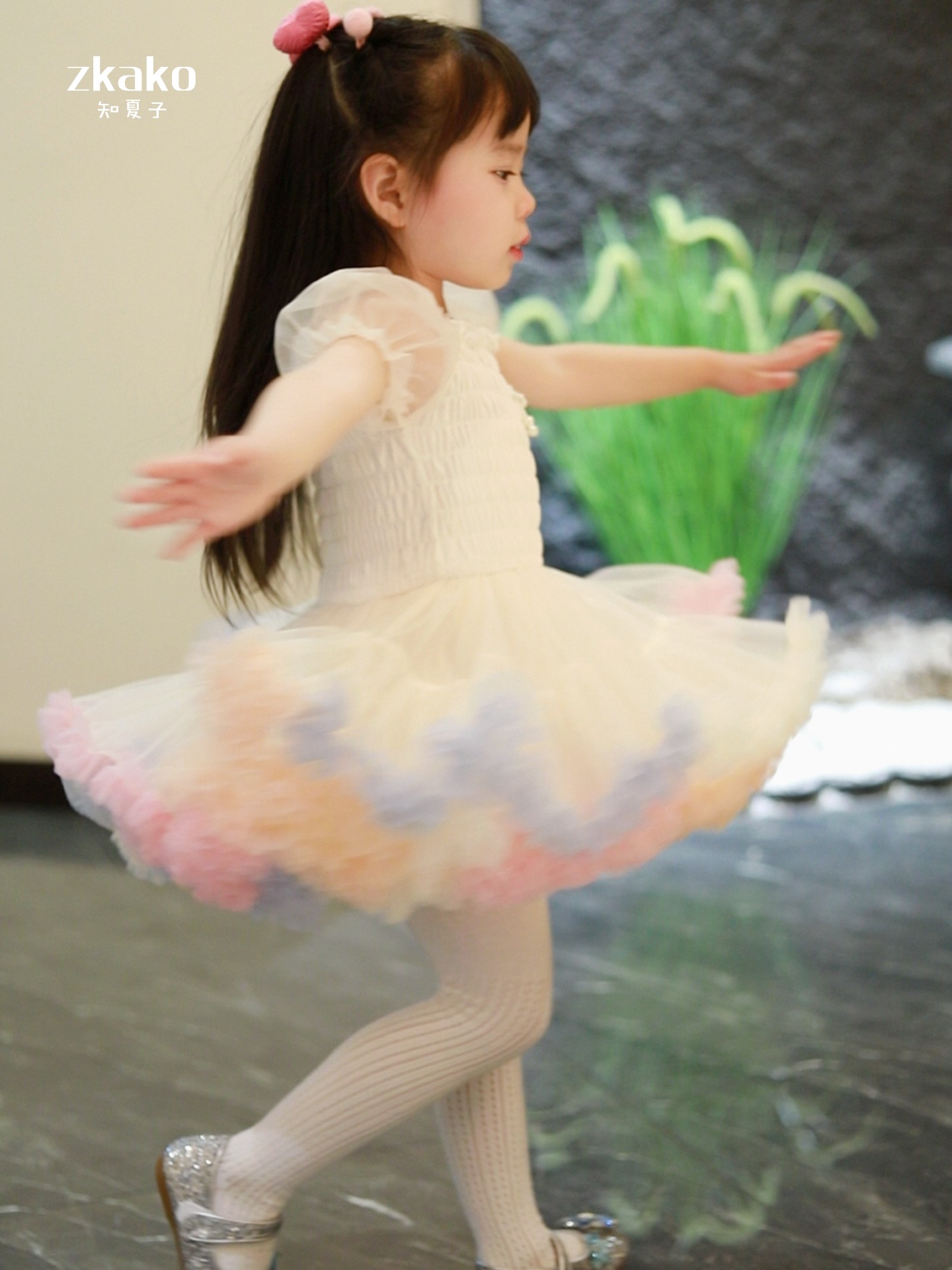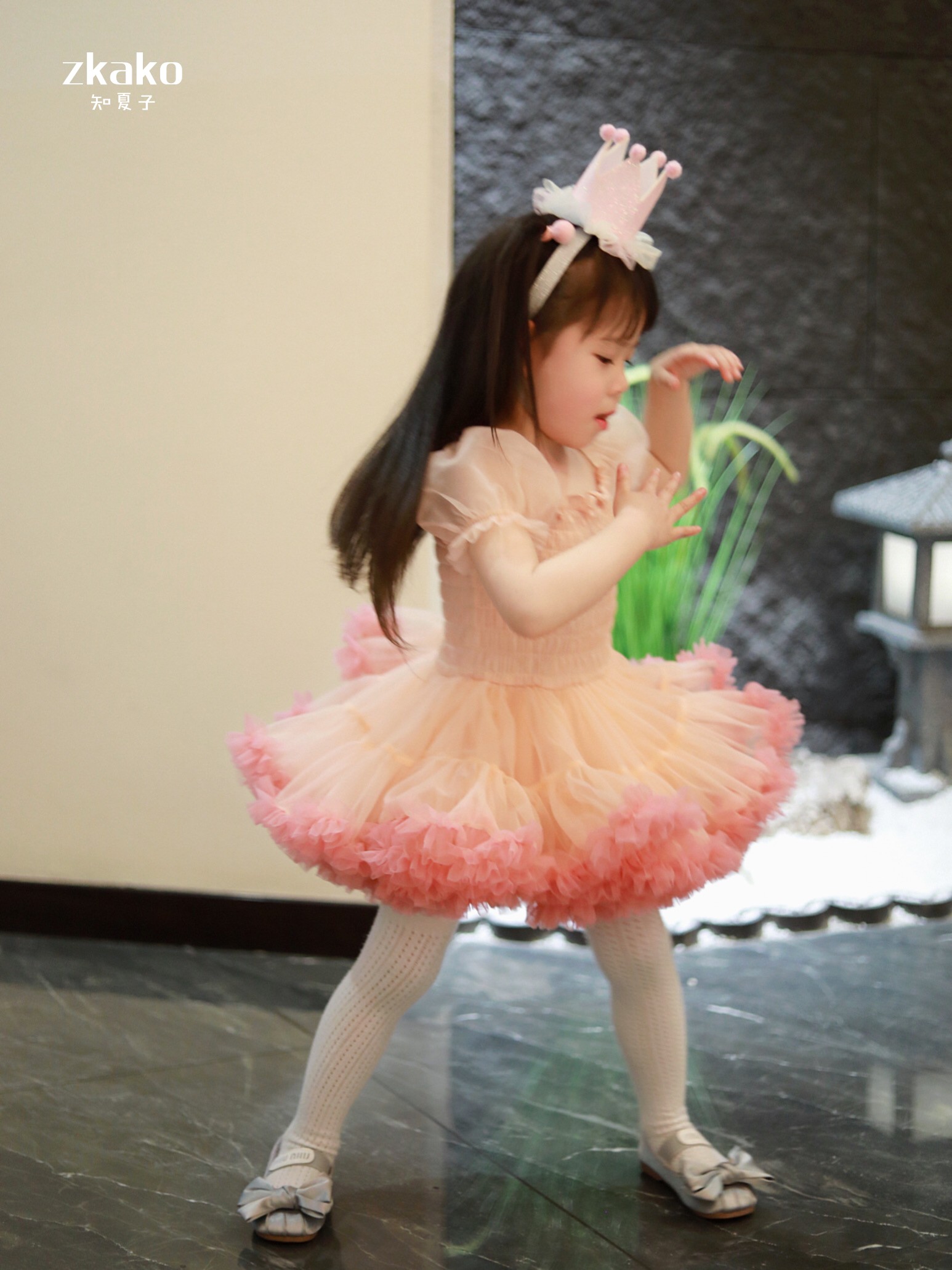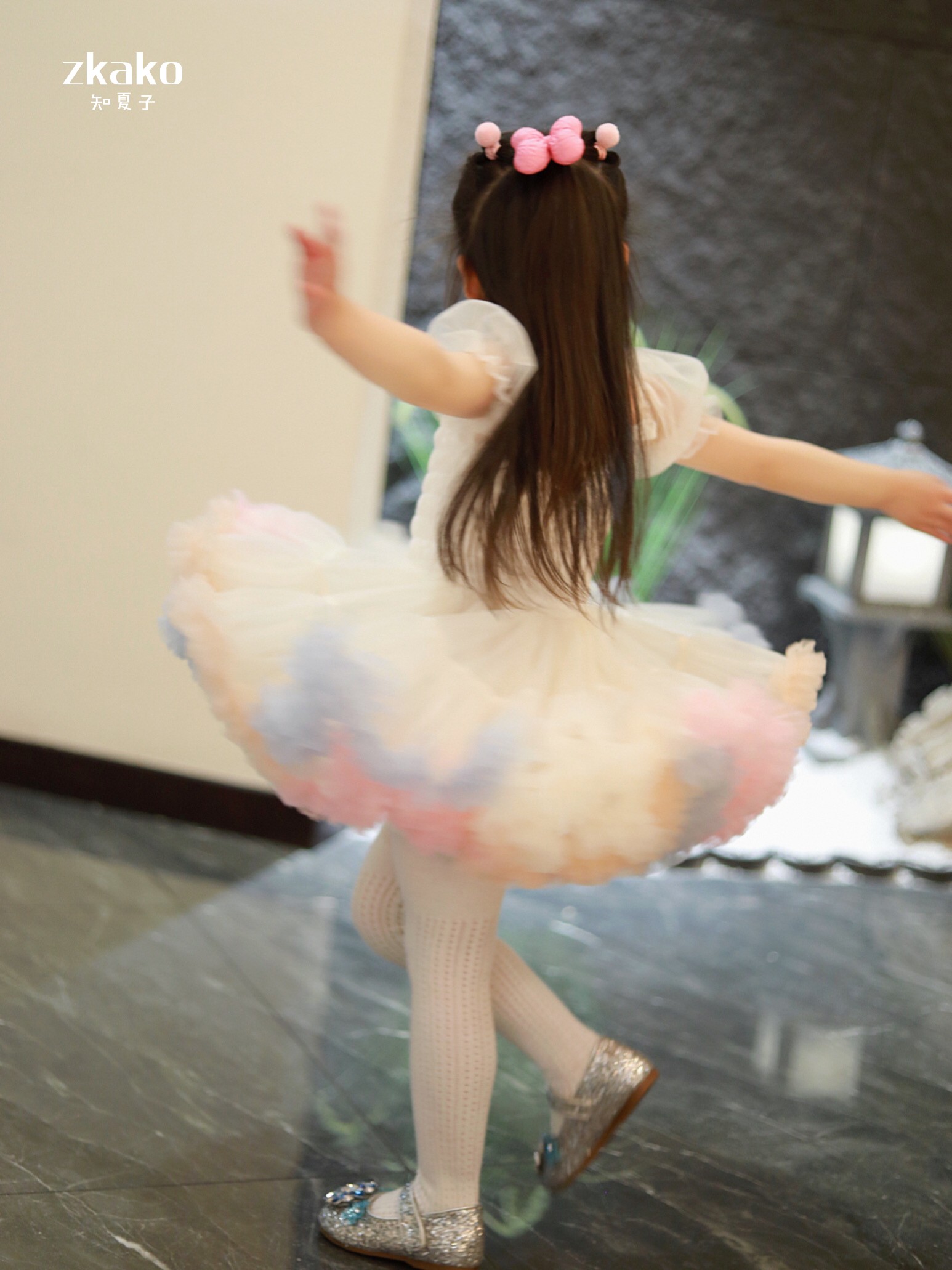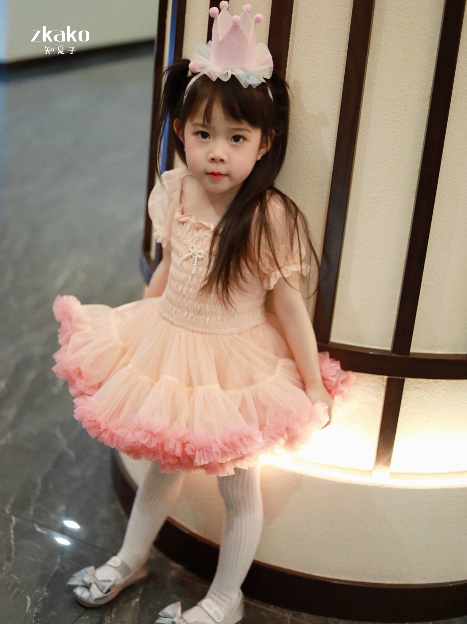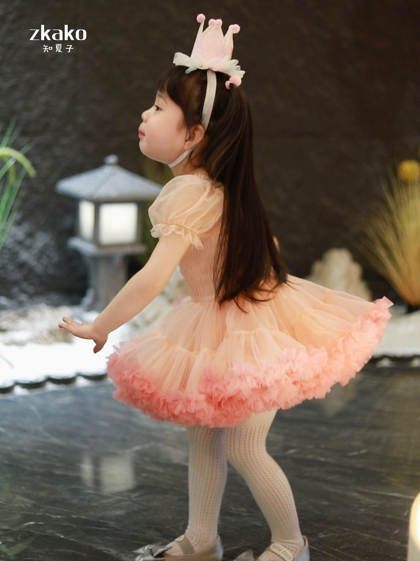 zkako知夏子女童tutu裙網紅公主裙粉色網紗蓬蓬裙短袖生日連衣裙