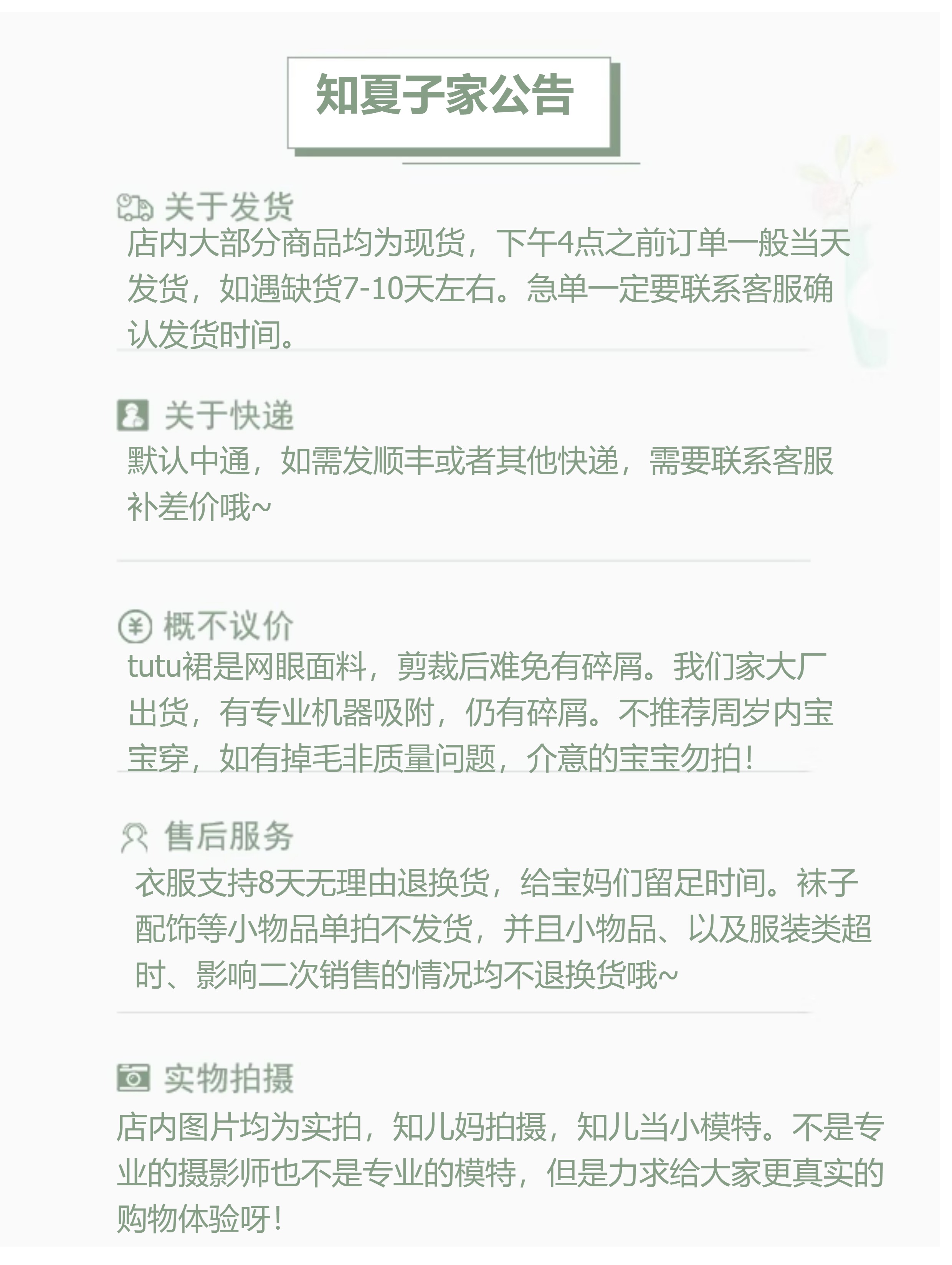 款式及尺寸:
