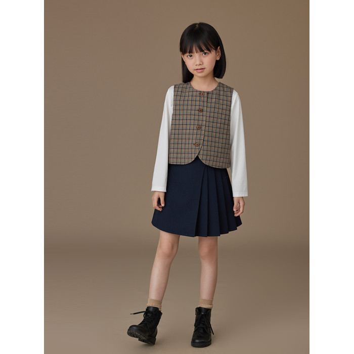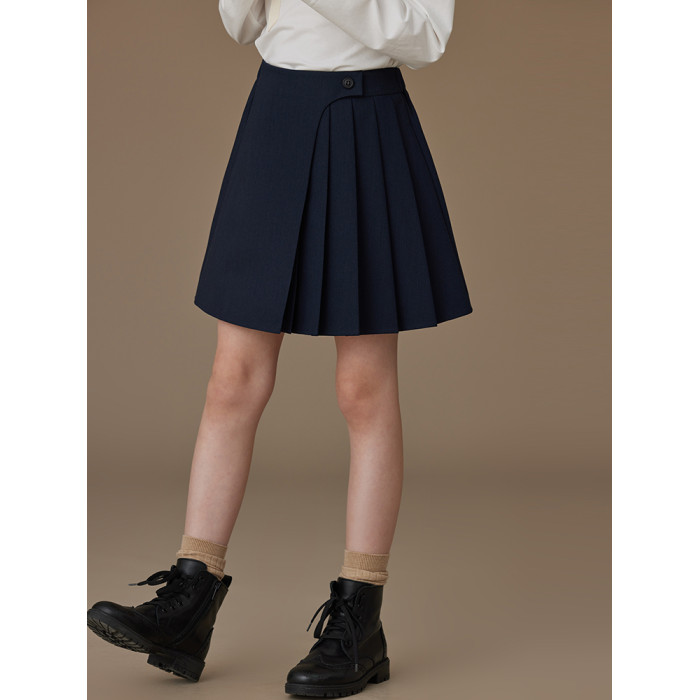 哈齒童裝春秋兒童短裙藏青學院風百褶裙親子高級感A字半身裙女童