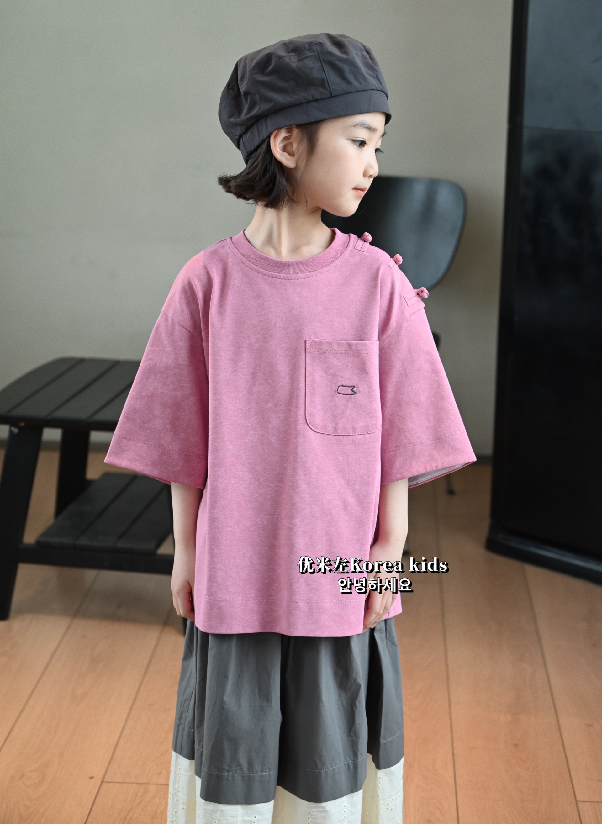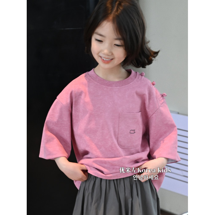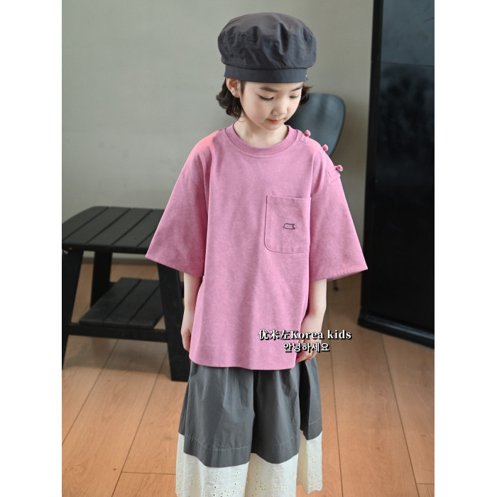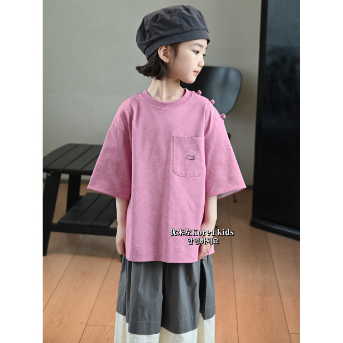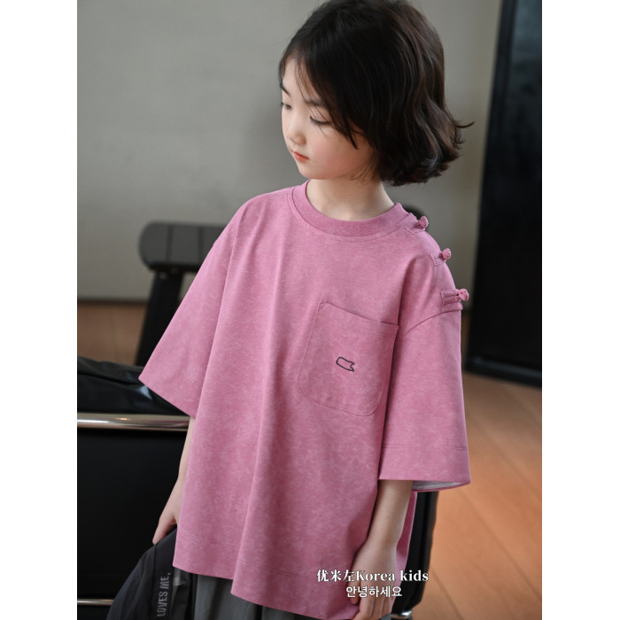 優米左品牌童裝女童短袖T恤復古風盤釦女孩上衣2025新款兒童夏裝