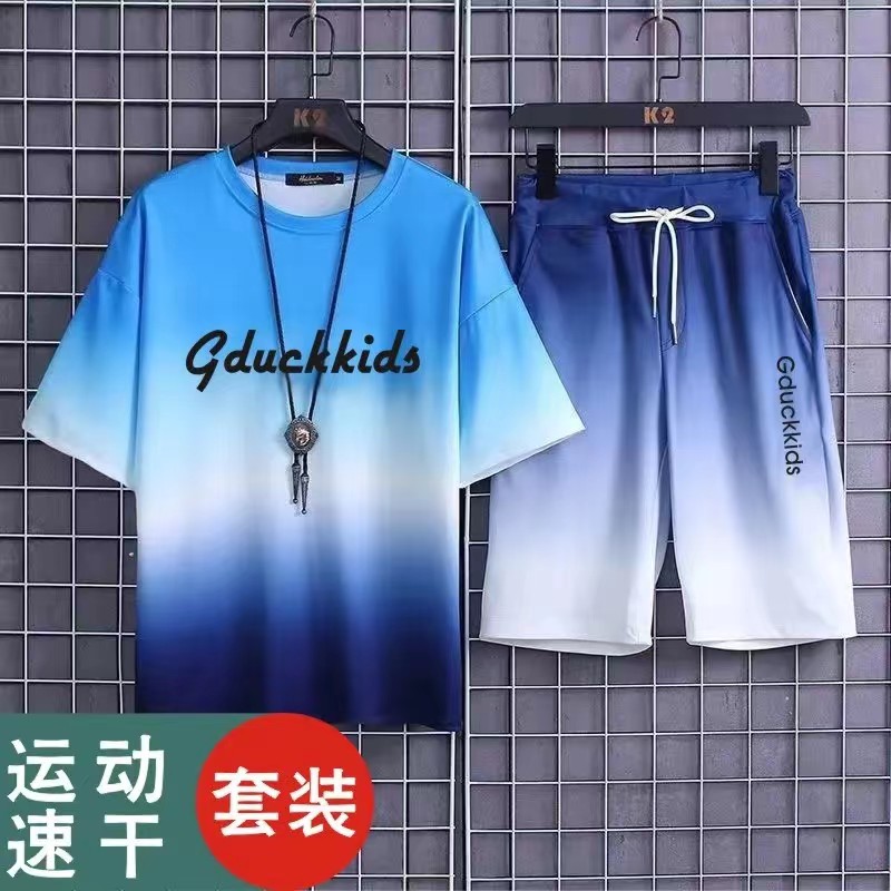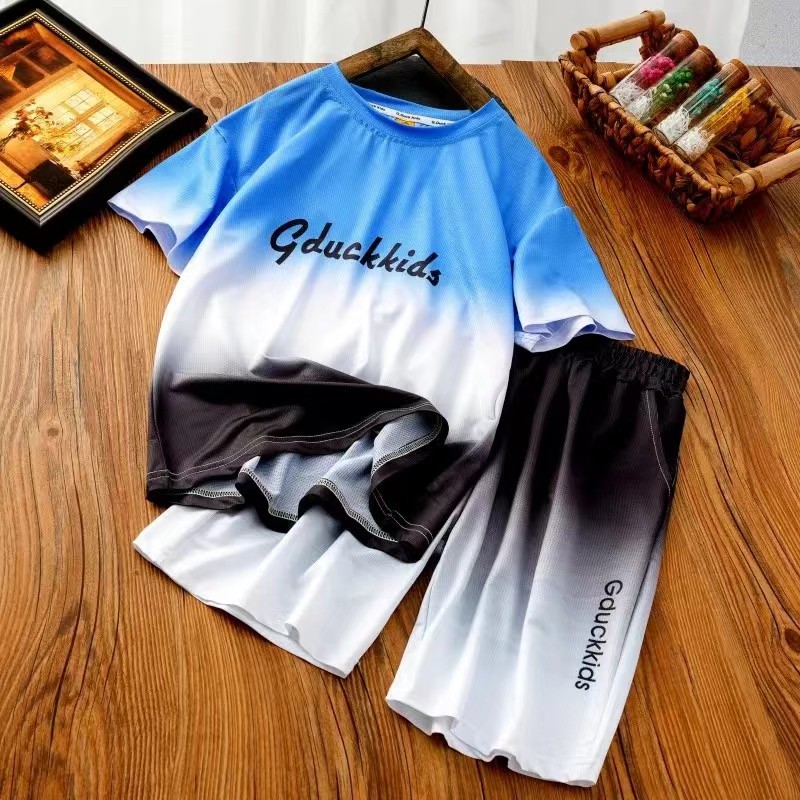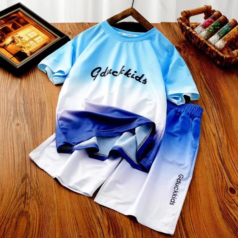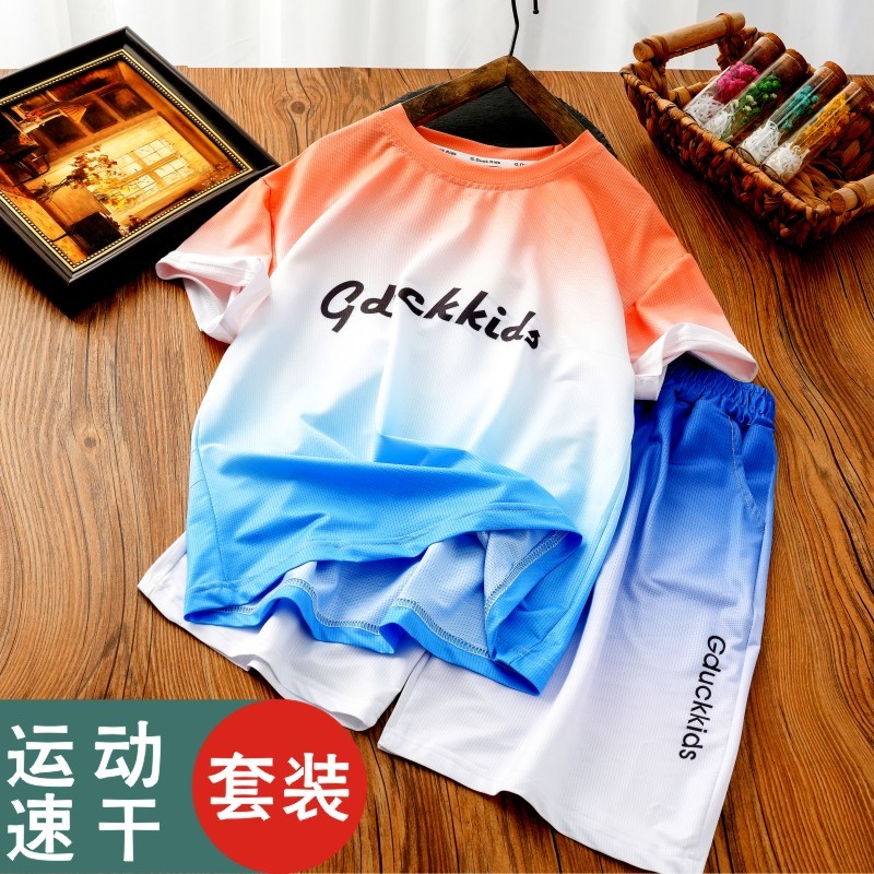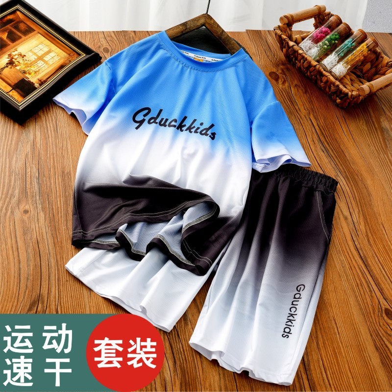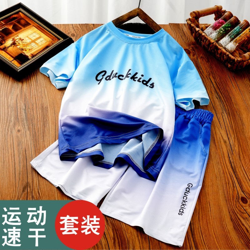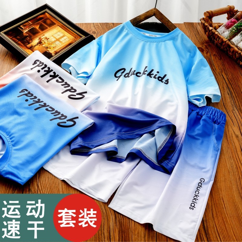 新款冰絲面料男童速乾網眼短袖夏季套裝五分短褲中大童運動兩件套
