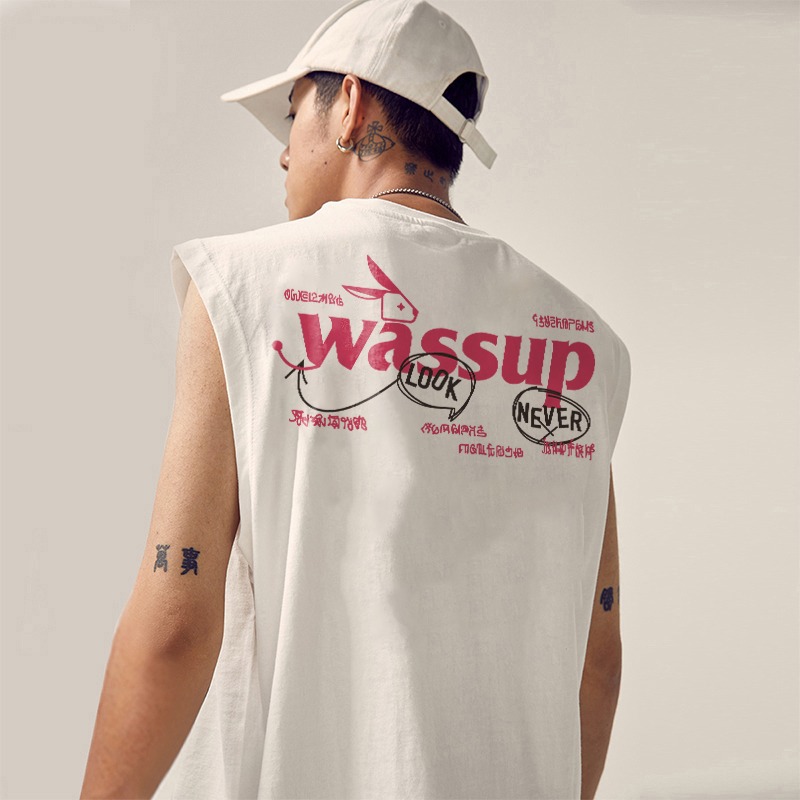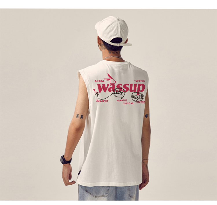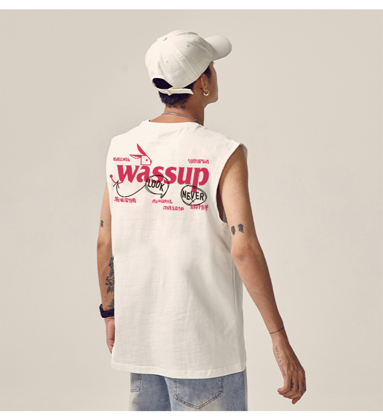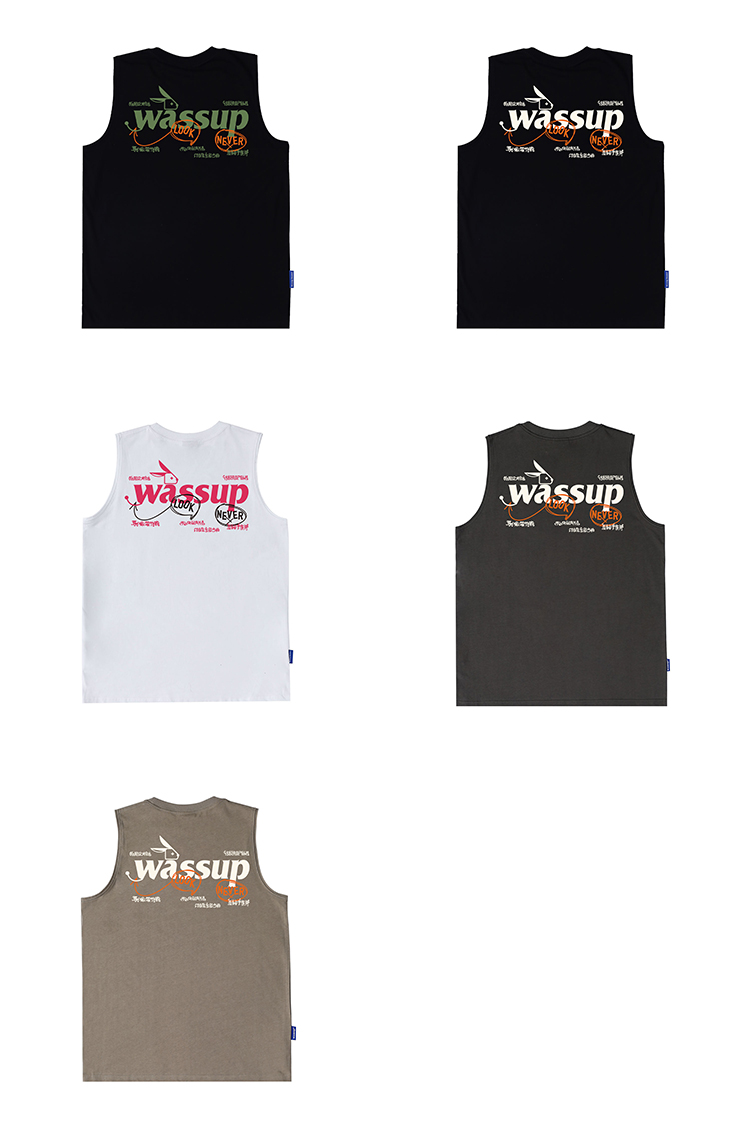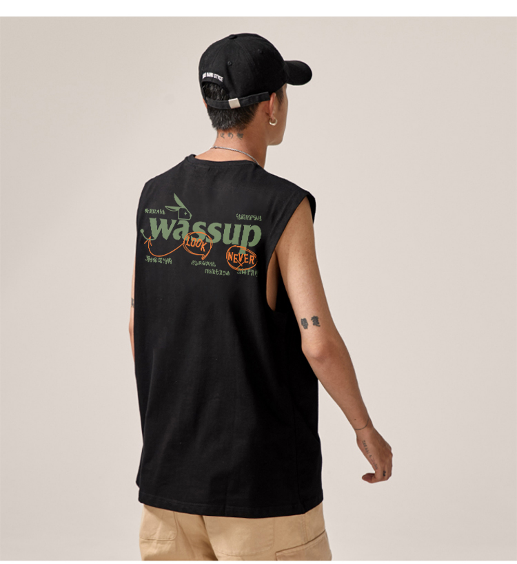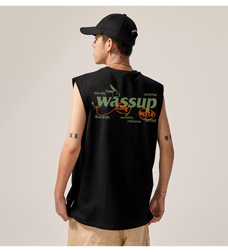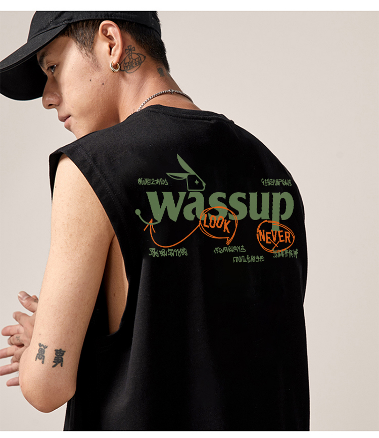 WASSUP潮牌夏季2025新款重磅純棉上衣運動健身籃球無袖寬松背心男