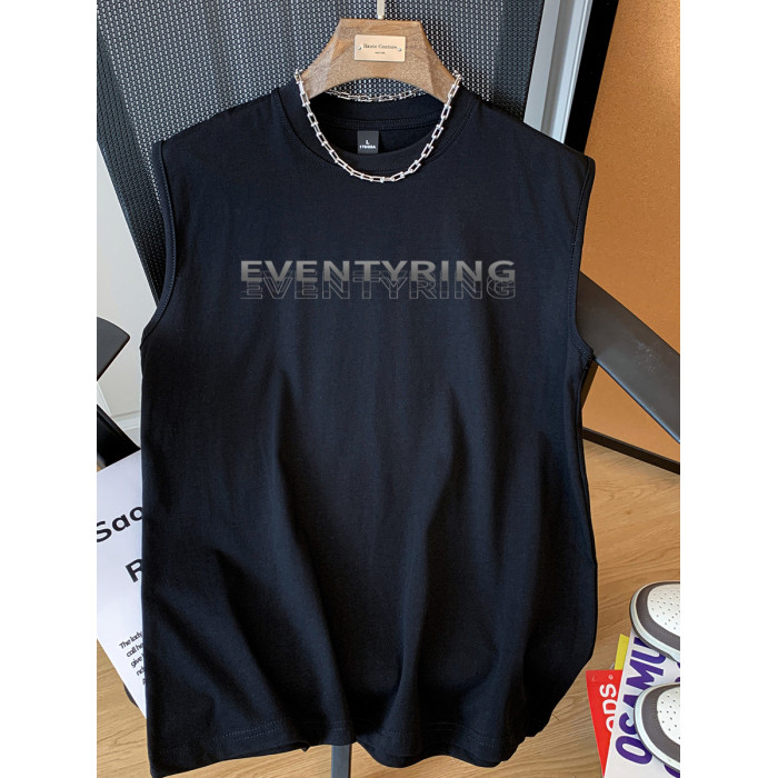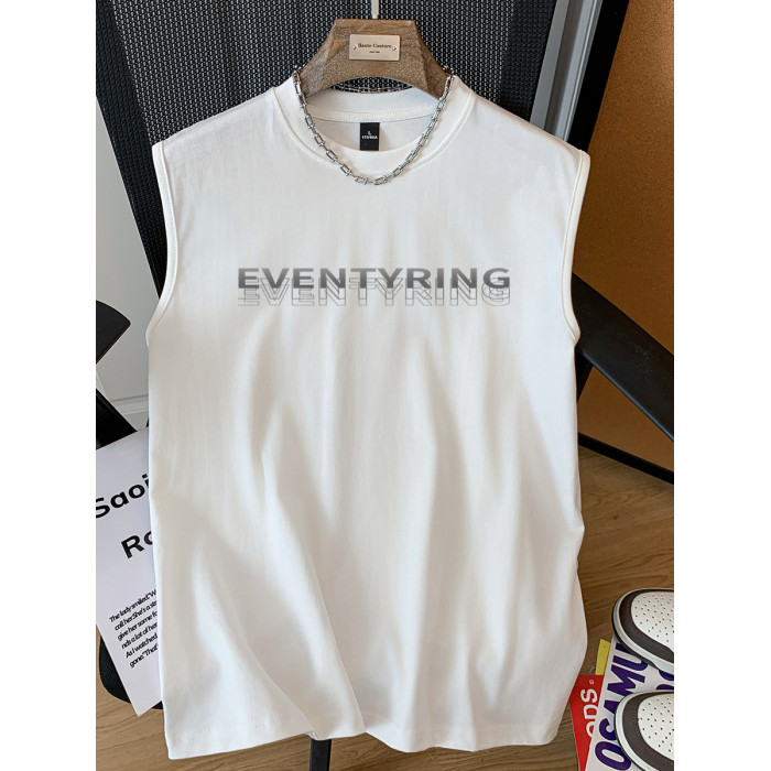 JIAF男生青少年無袖背心純棉T恤260g重磅圓領簡約透氣痞帥氣上衣