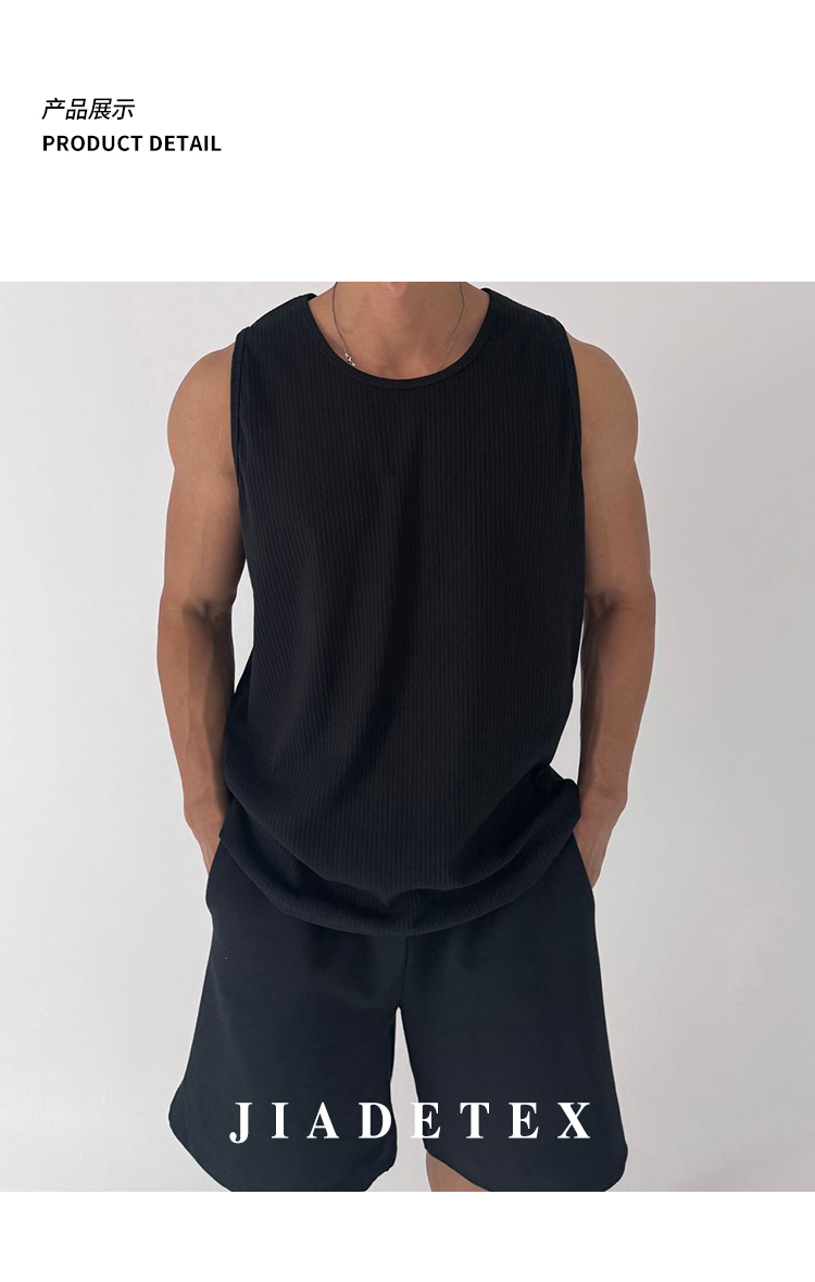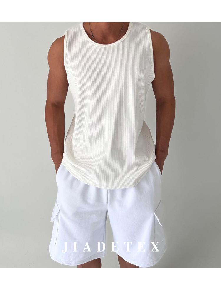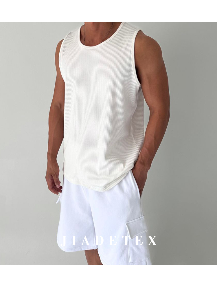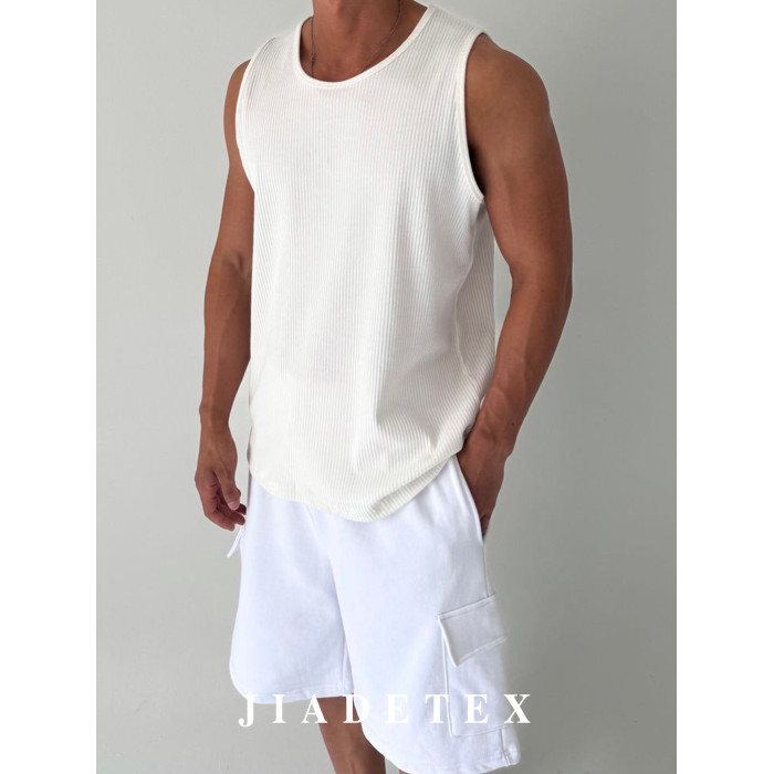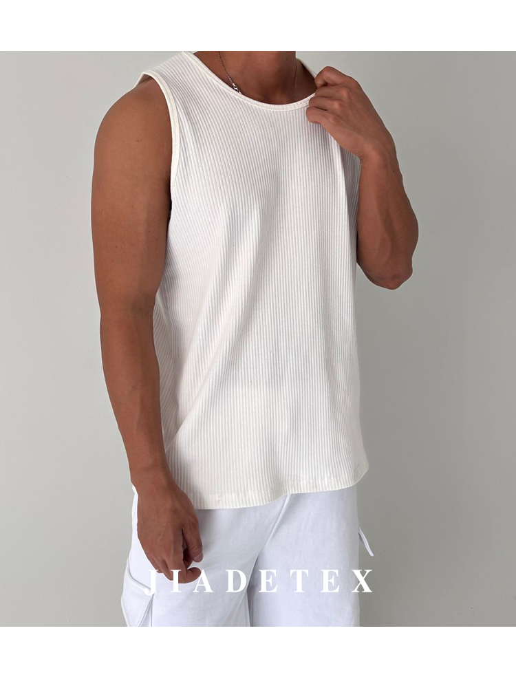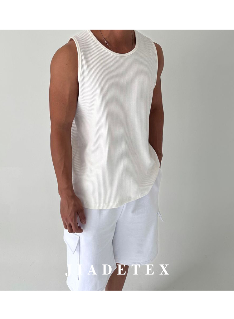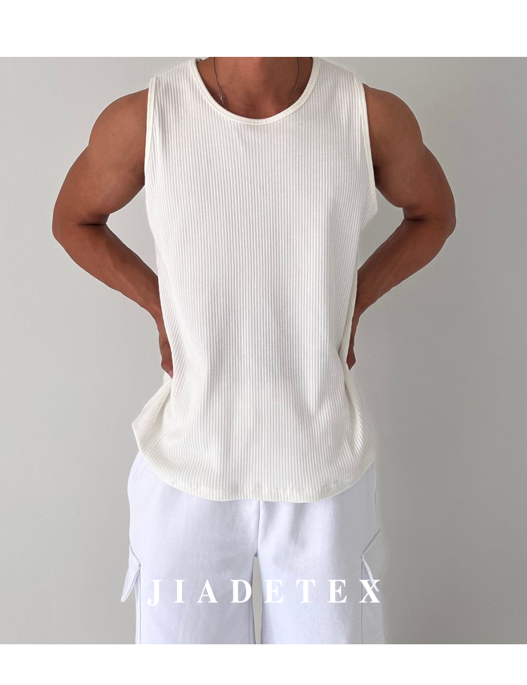 白色竪條螺紋*嘉德JIADE*寬松背心男夏季休閒彈力美式圓領無袖