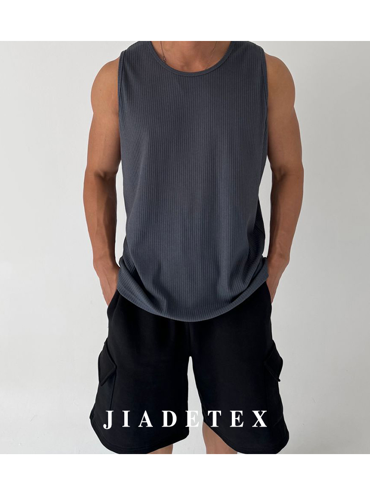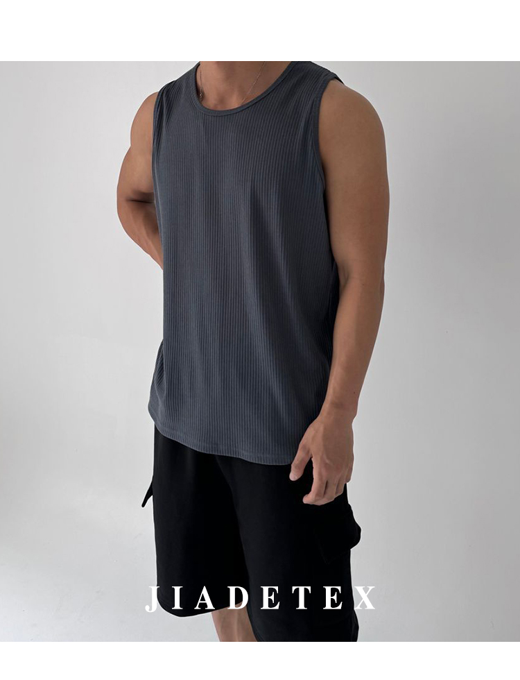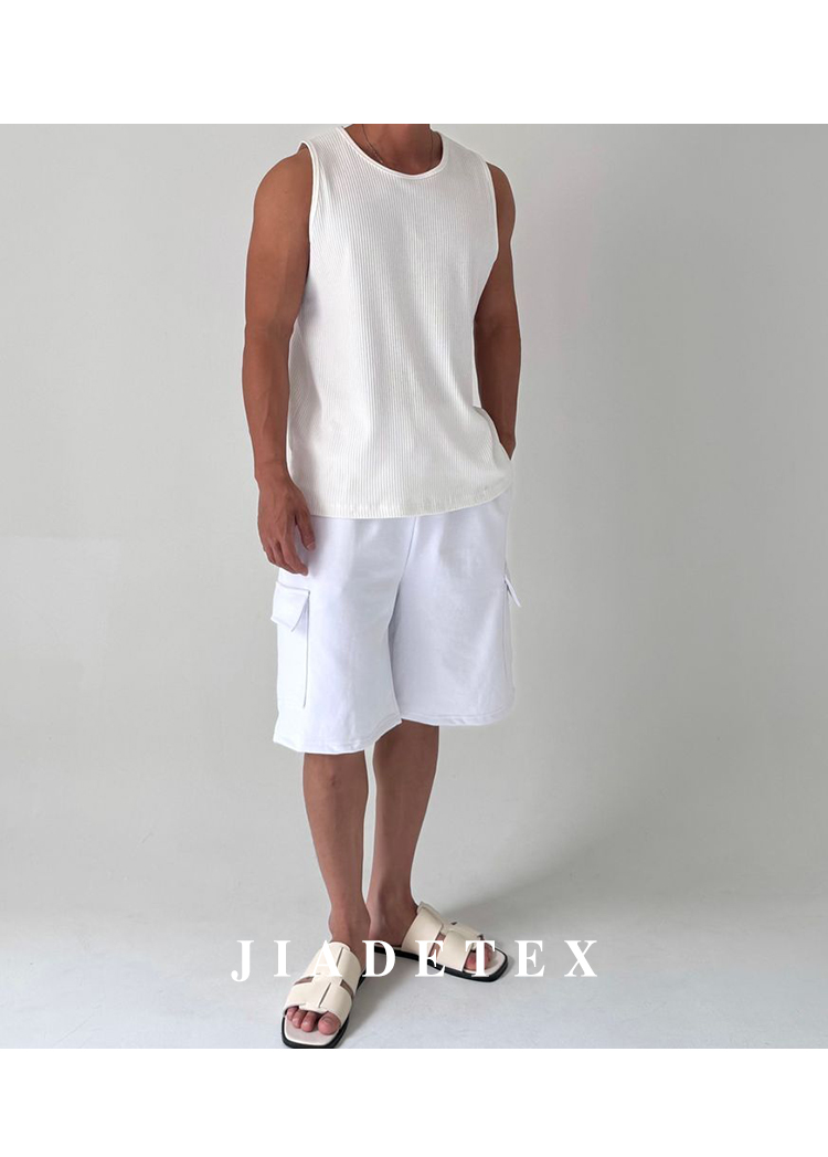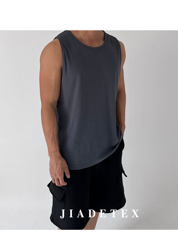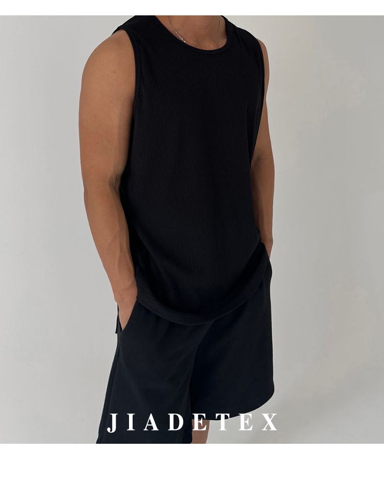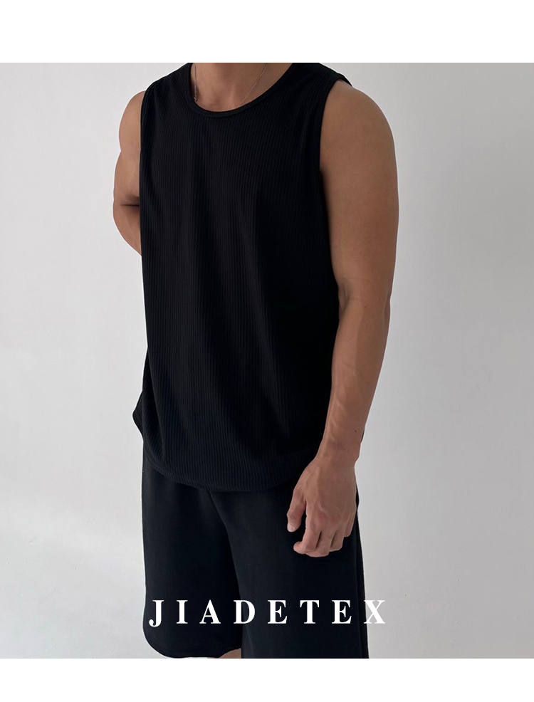 白色竪條螺紋*嘉德JIADE*寬松背心男夏季休閒彈力美式圓領無袖