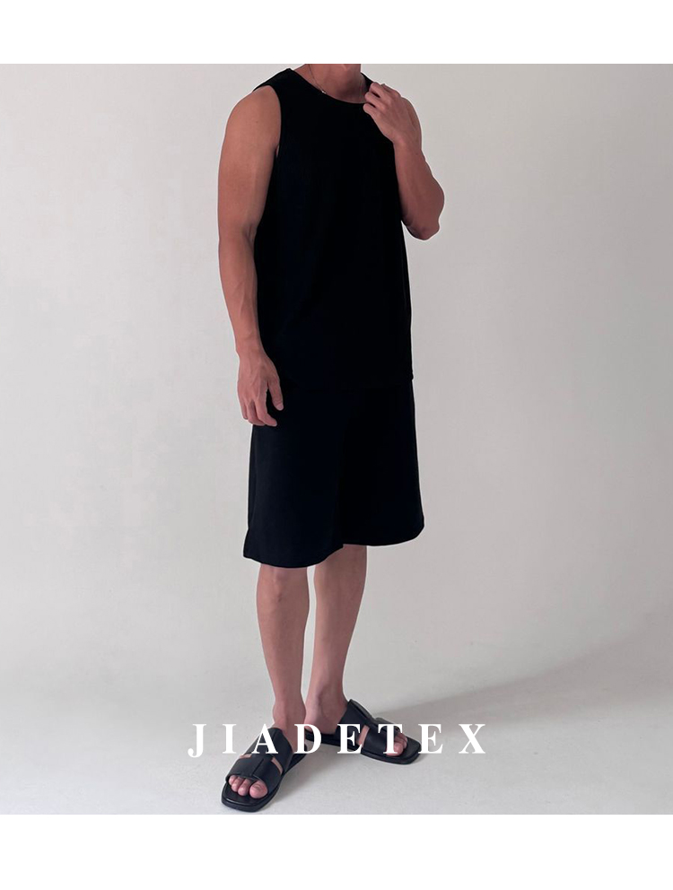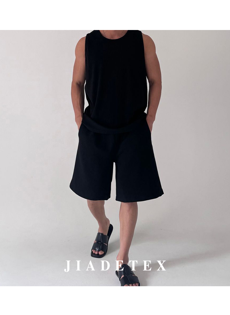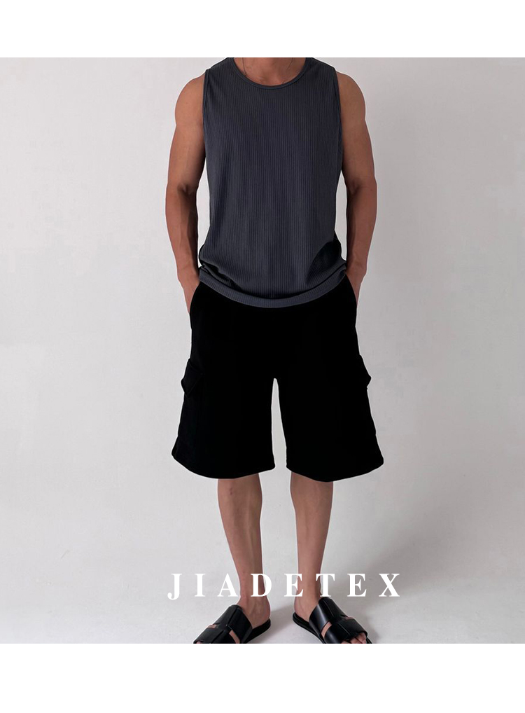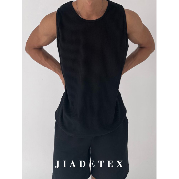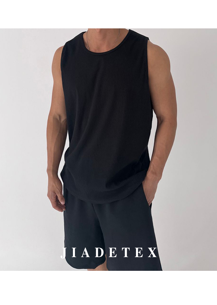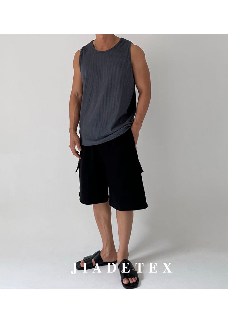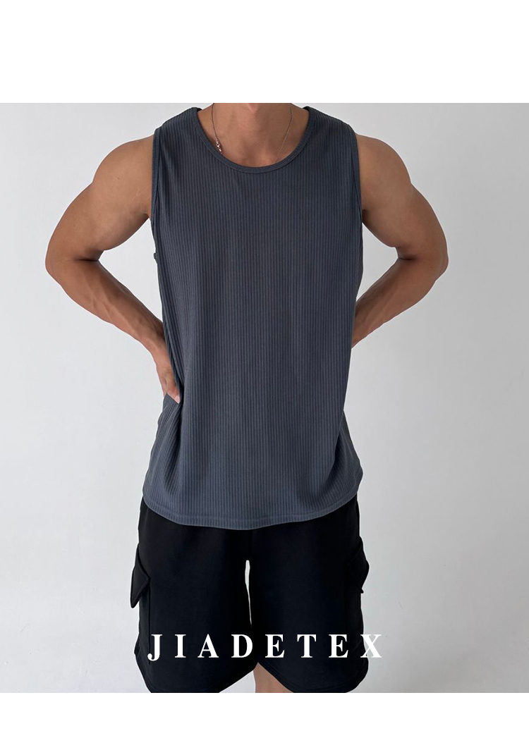 白色竪條螺紋*嘉德JIADE*寬松背心男夏季休閒彈力美式圓領無袖