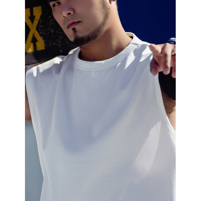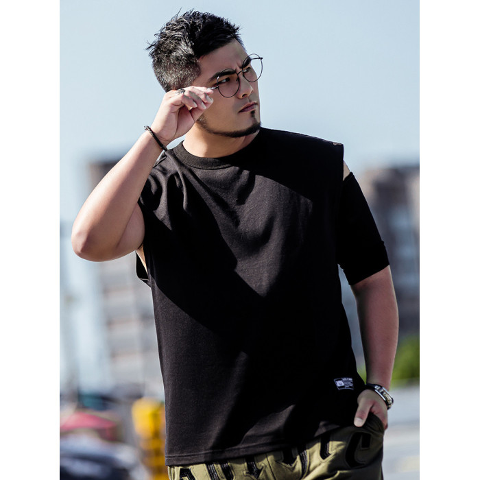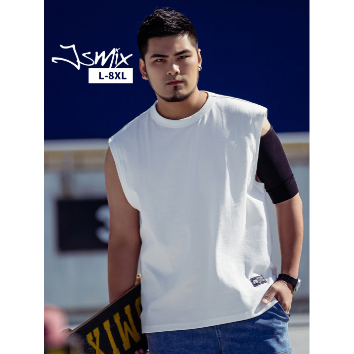 JSMIX潮牌大碼男裝寬松加肥加大無袖坎肩棉運動休閒圓領純棉背心