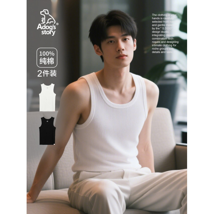純棉工字男士背心夏季男裝修身粗螺紋透氣休閒家居白色無痕內搭