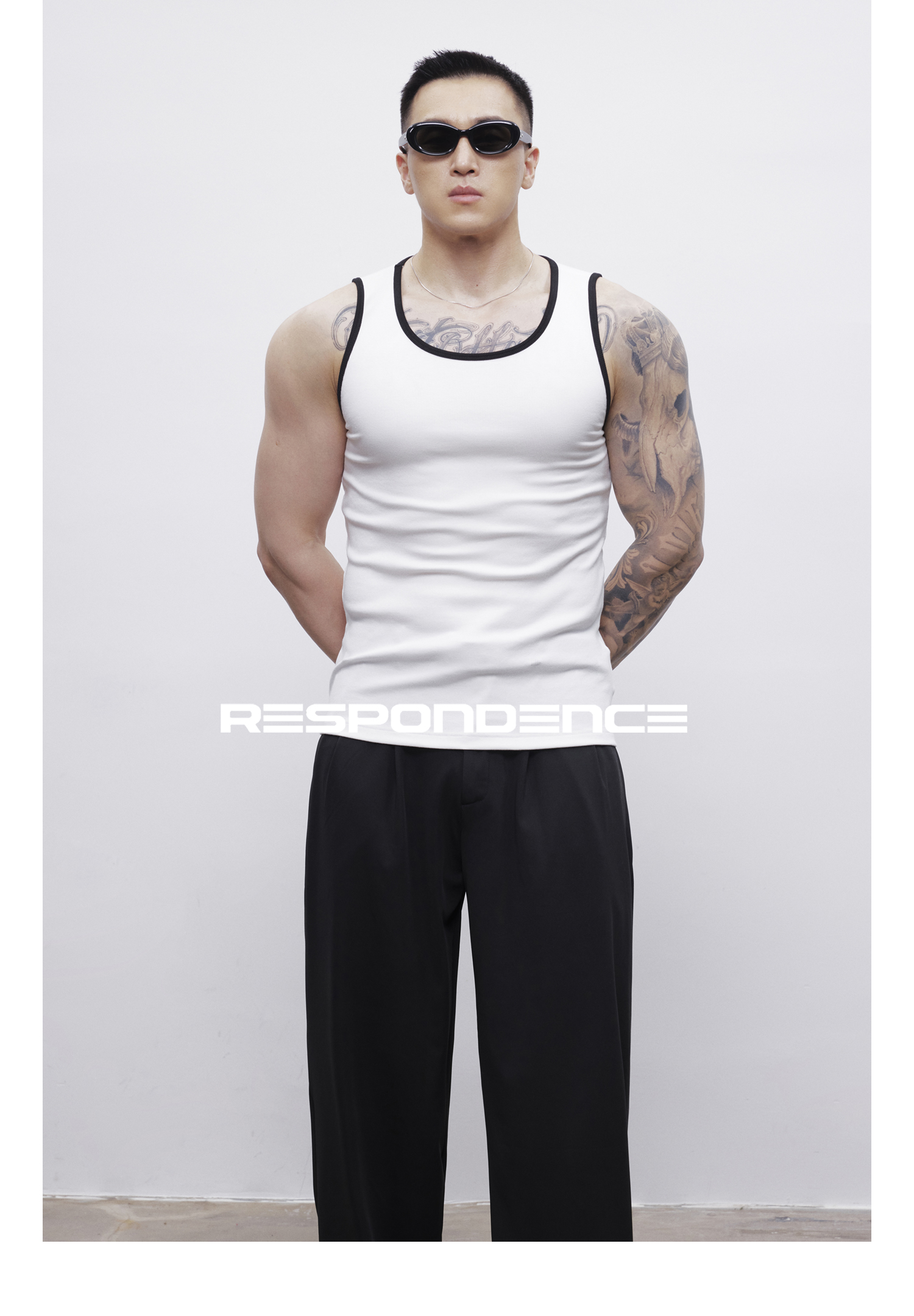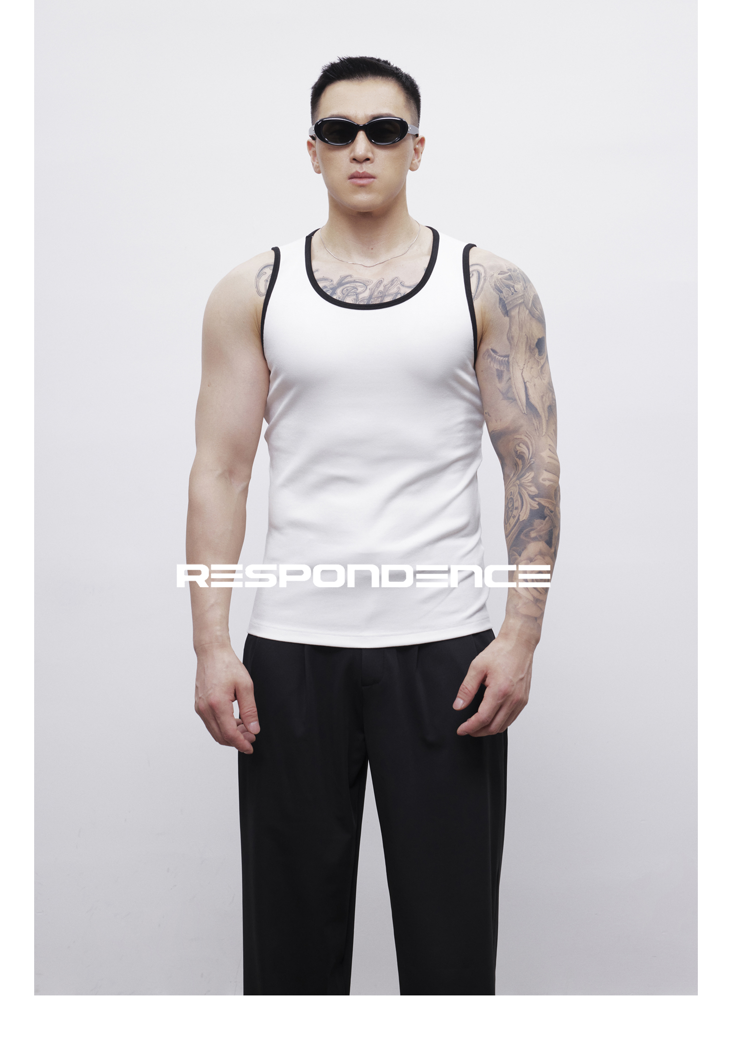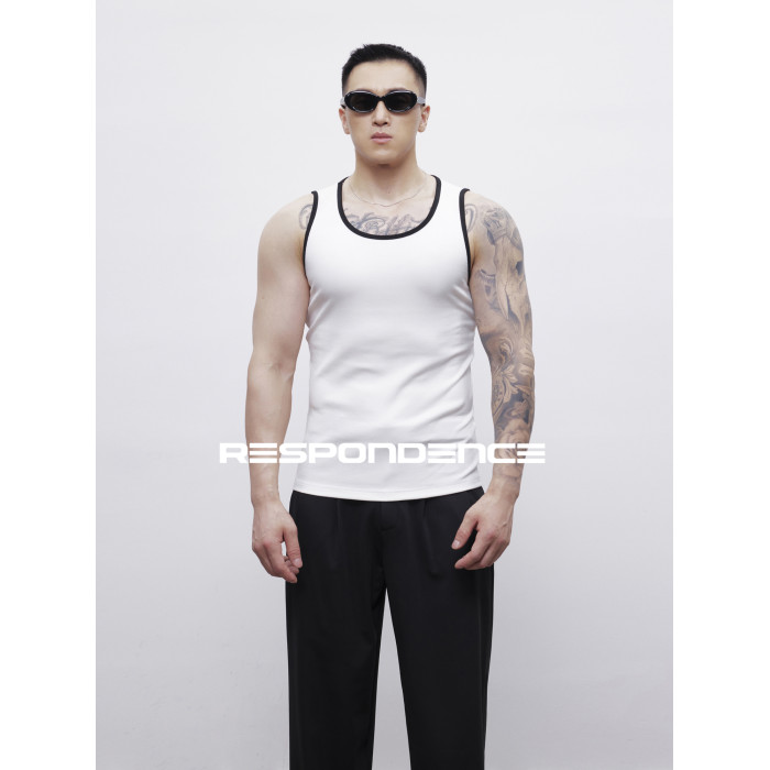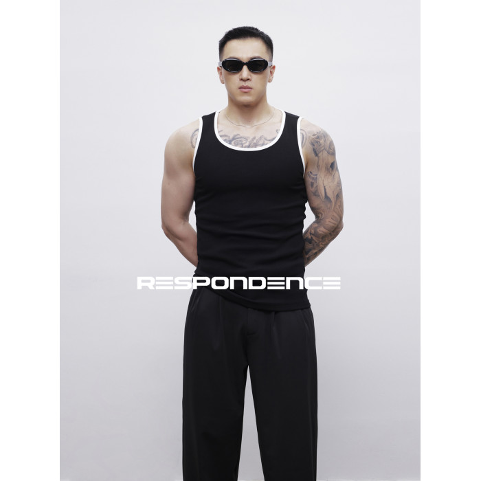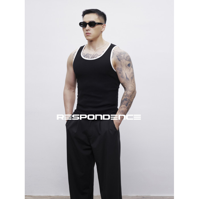 RESPONDENCE 撞色修身彈力緊身運動螺紋背心男款健身跑步上衣