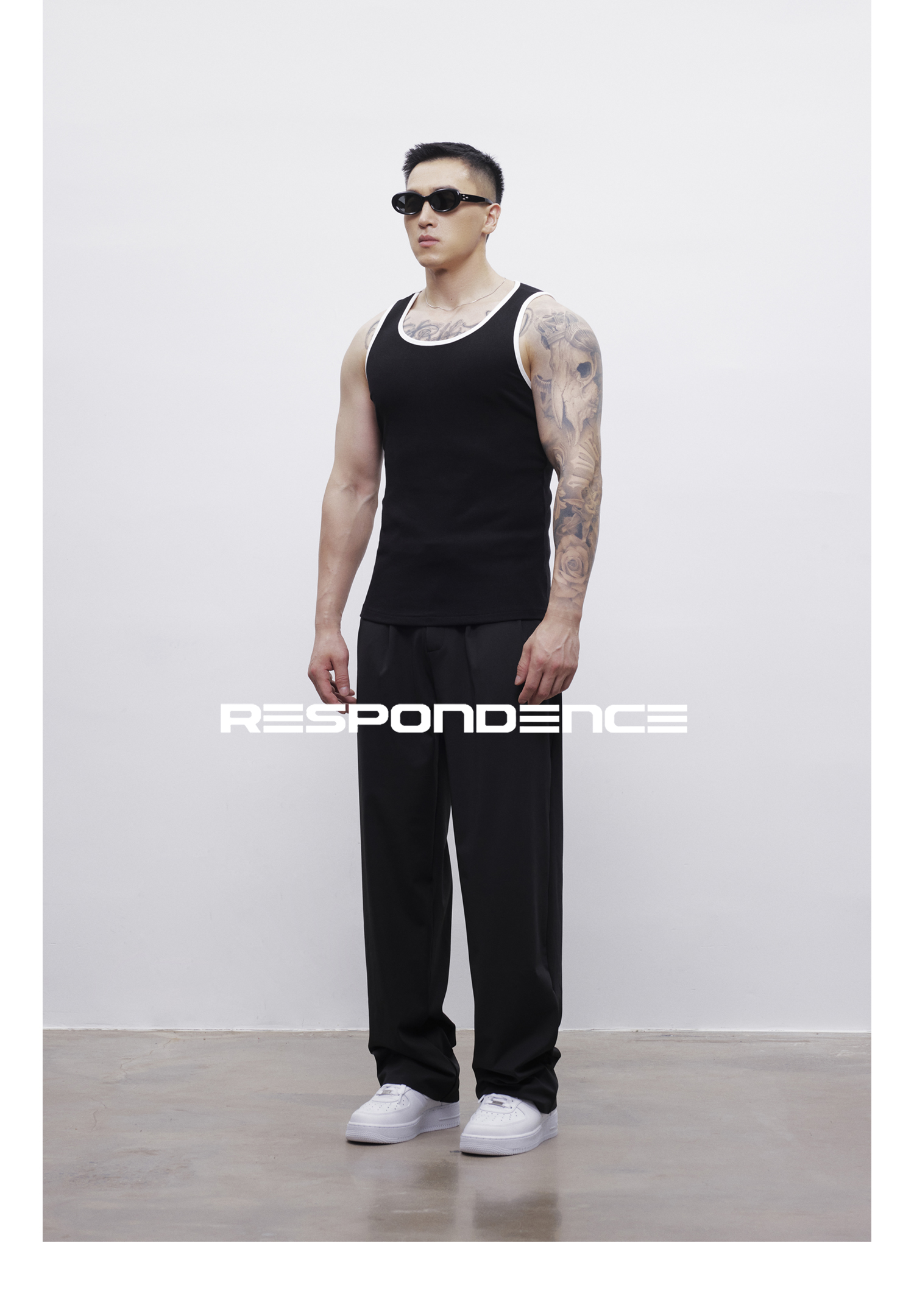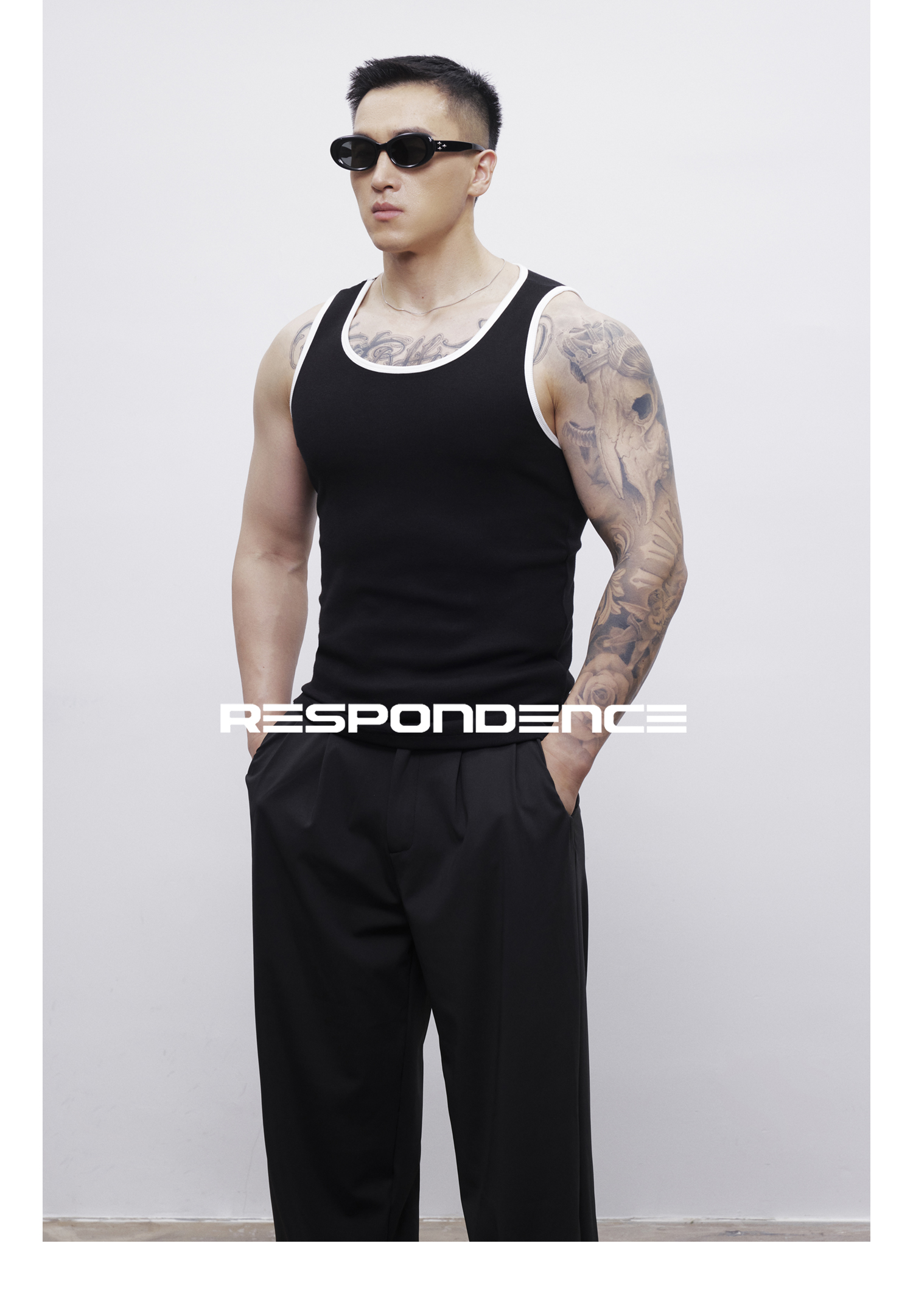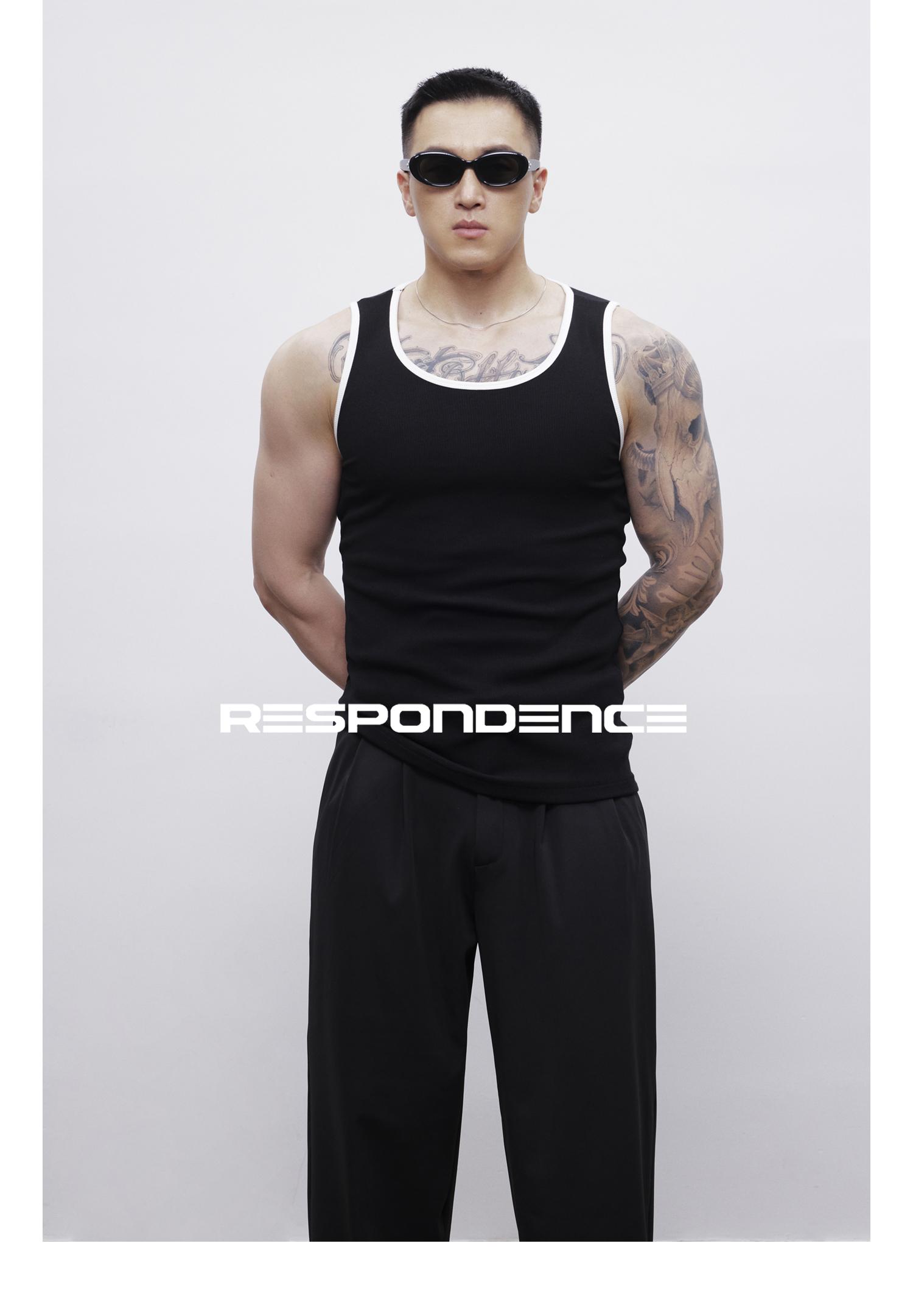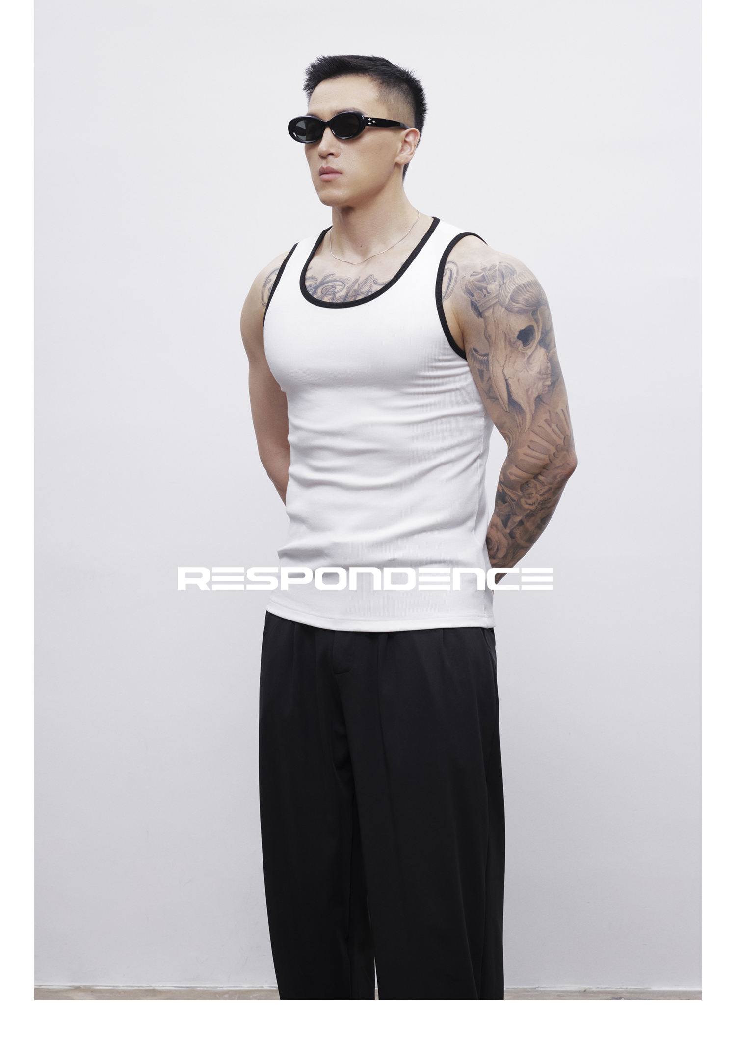RESPONDENCE 撞色修身彈力緊身運動螺紋背心男款健身跑步上衣