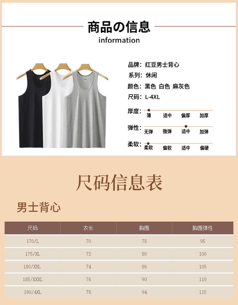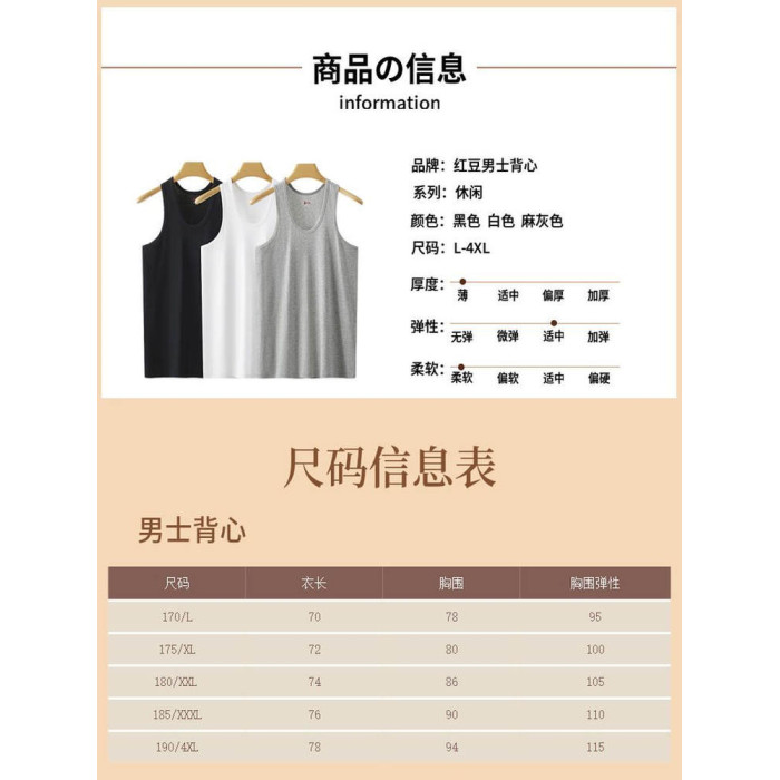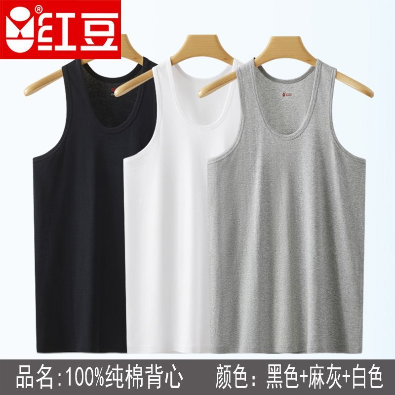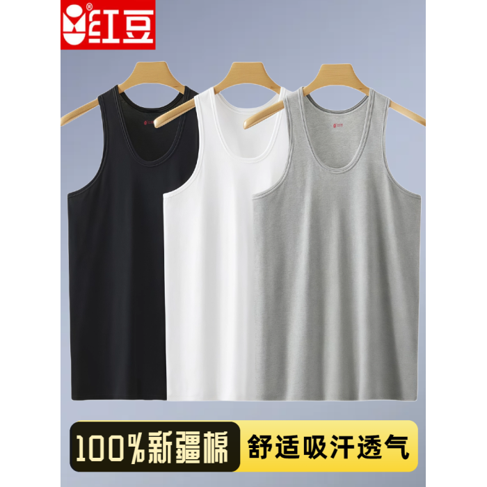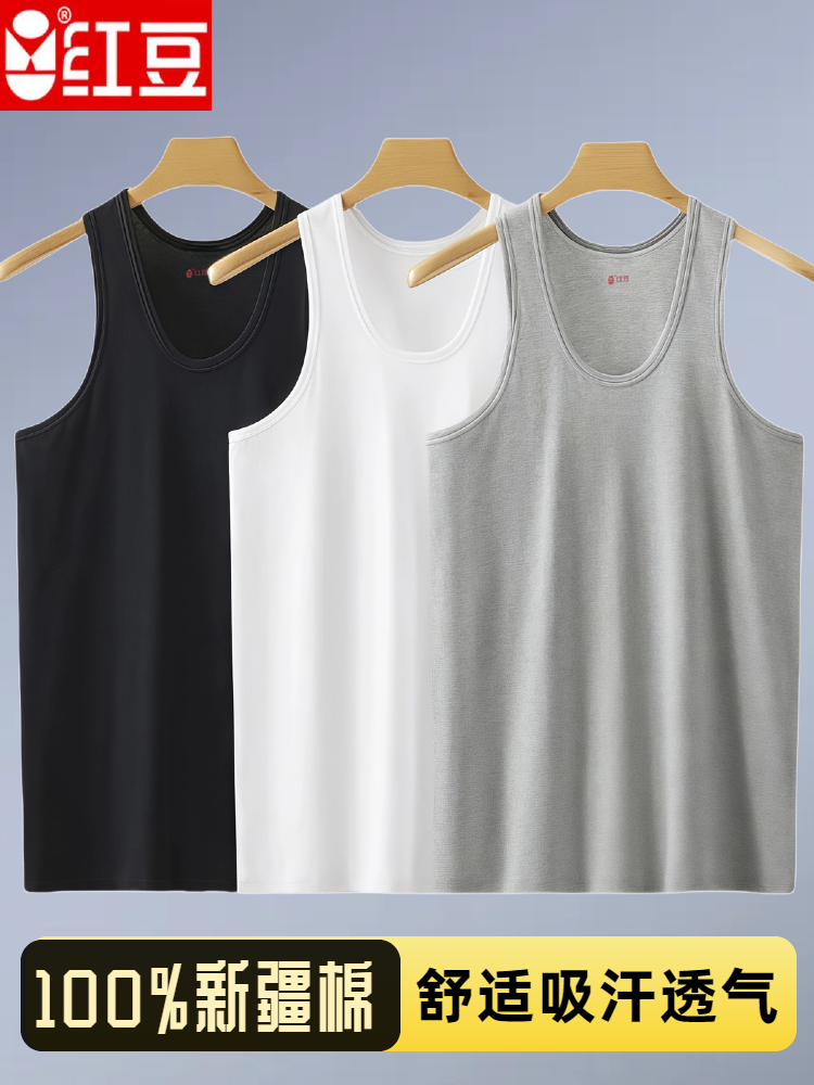 紅豆男士背心純棉爸爸內穿打底全棉老頭衫運動吸汗大碼中老年汗衫