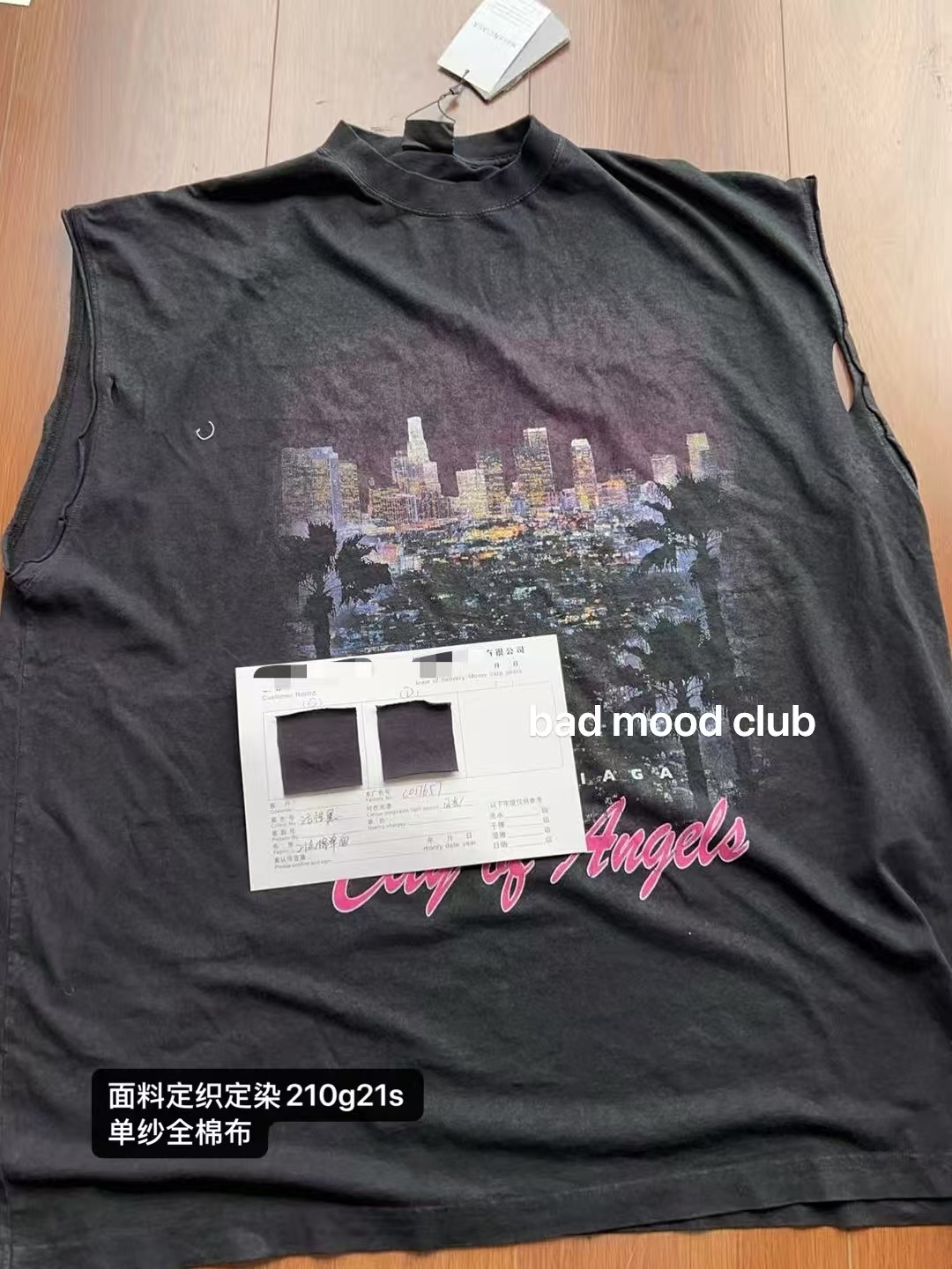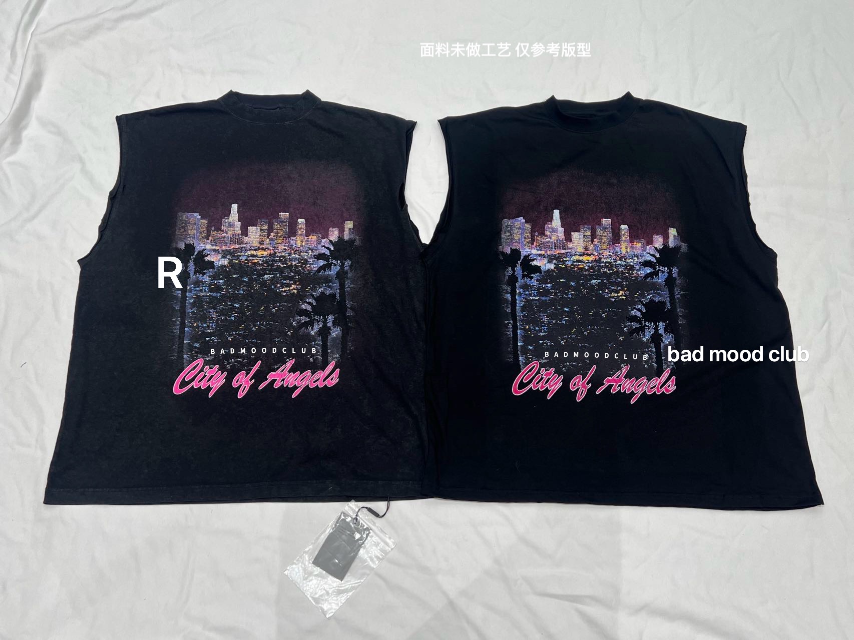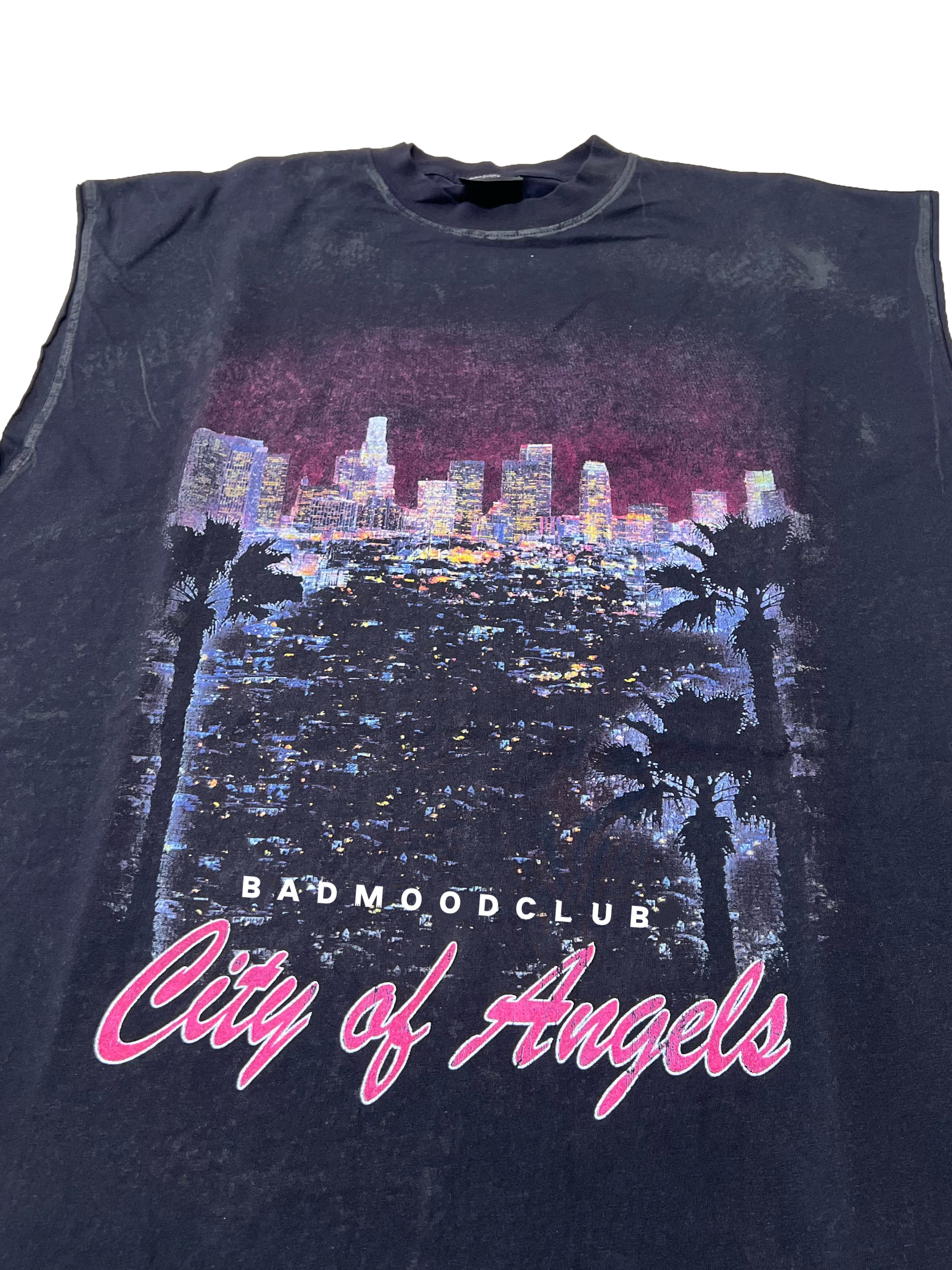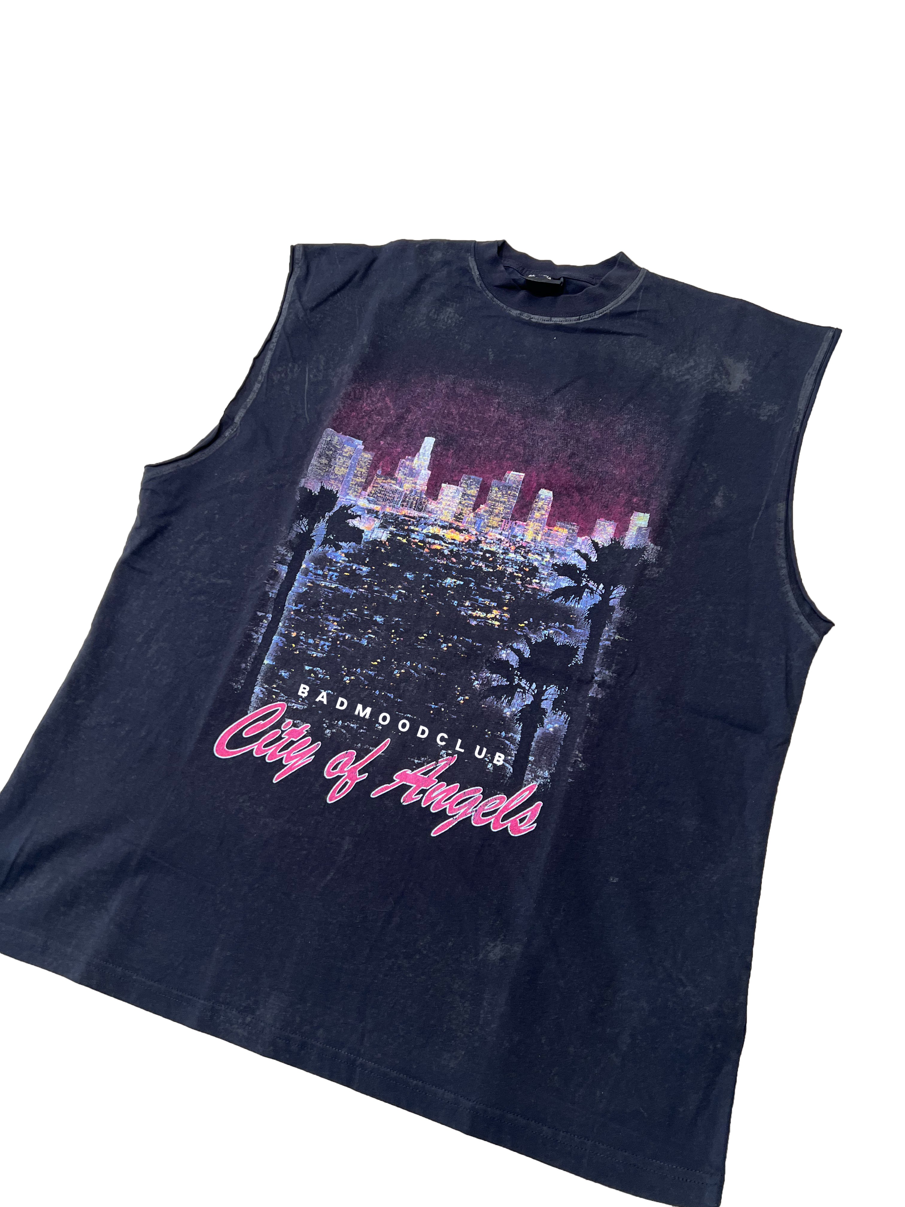 BMC天使之城洛杉磯夜景印花背心做舊泥染破壞寬松廓形無袖短袖T恤