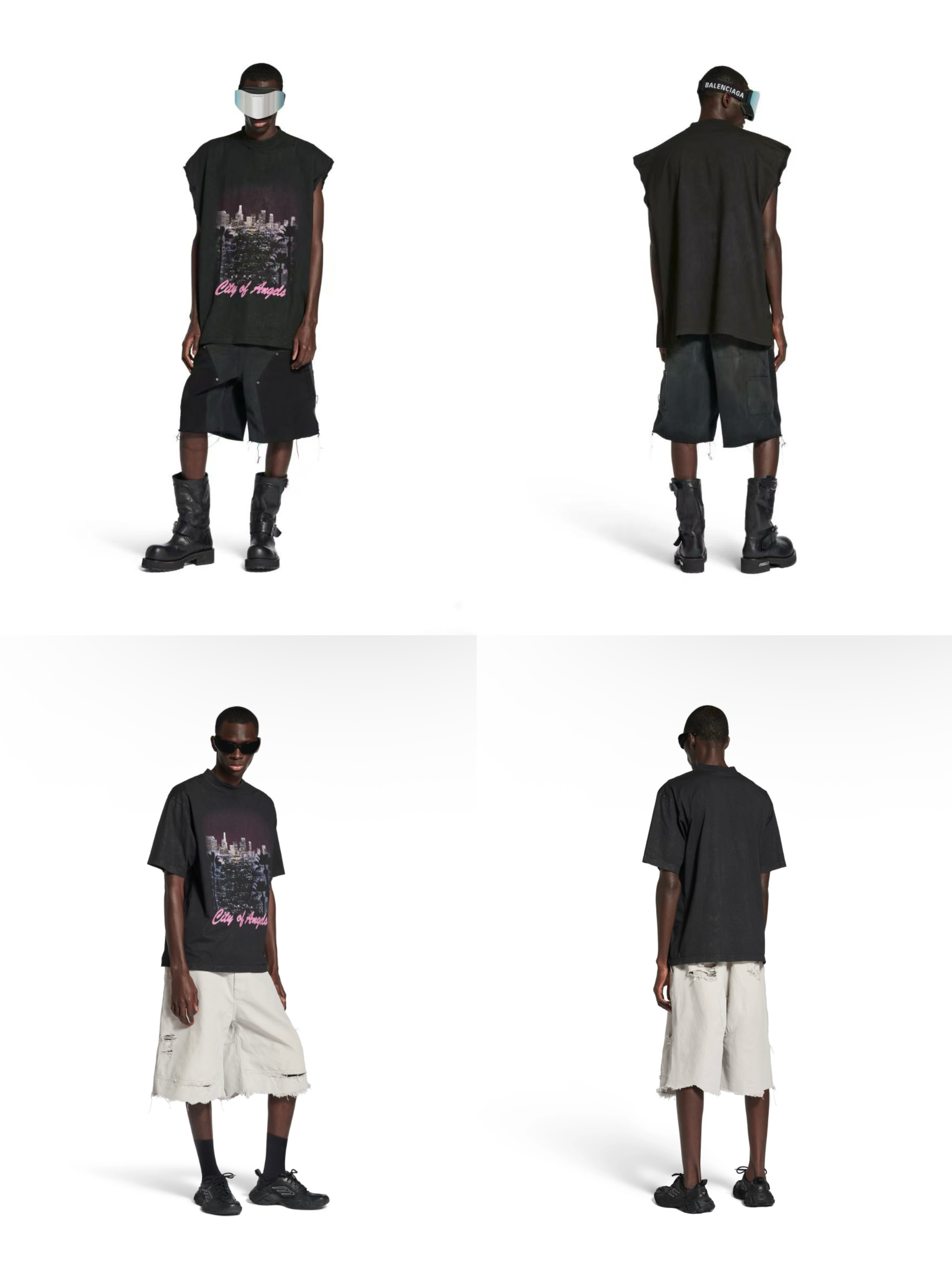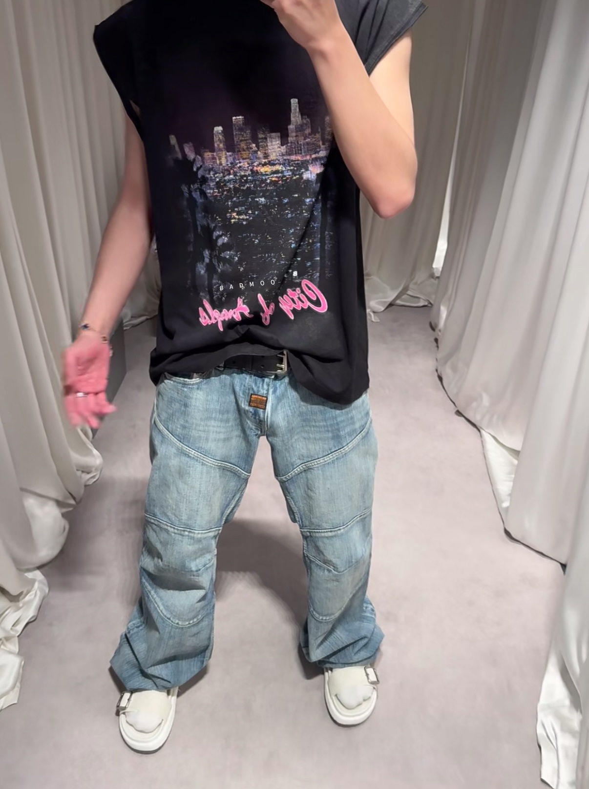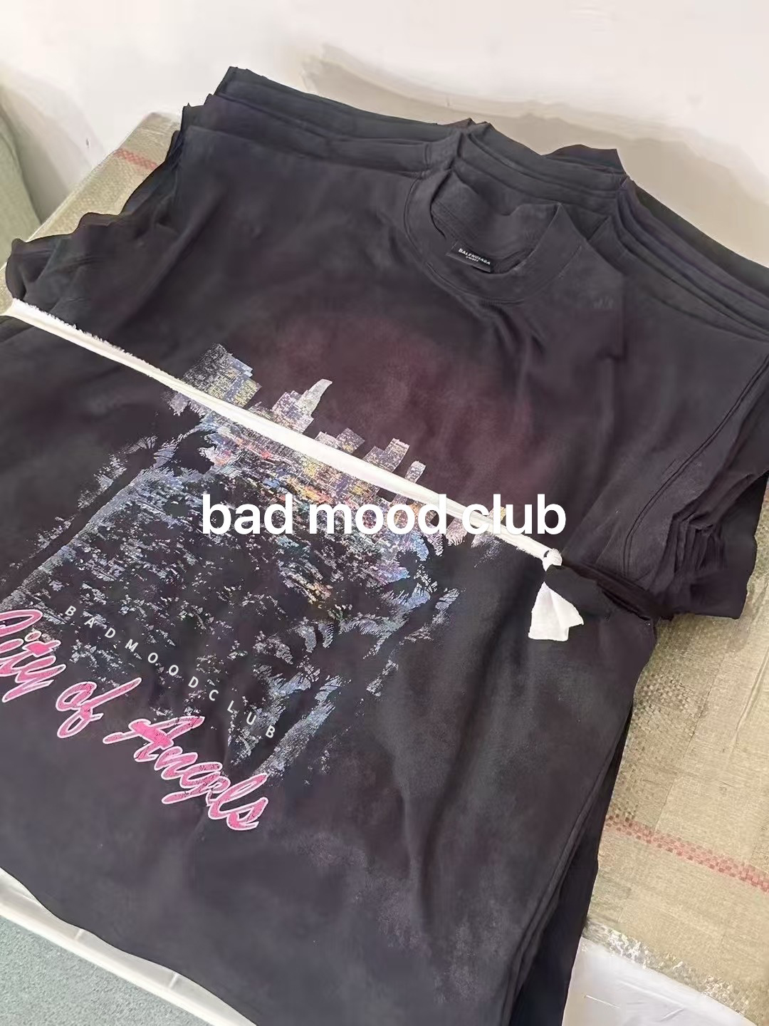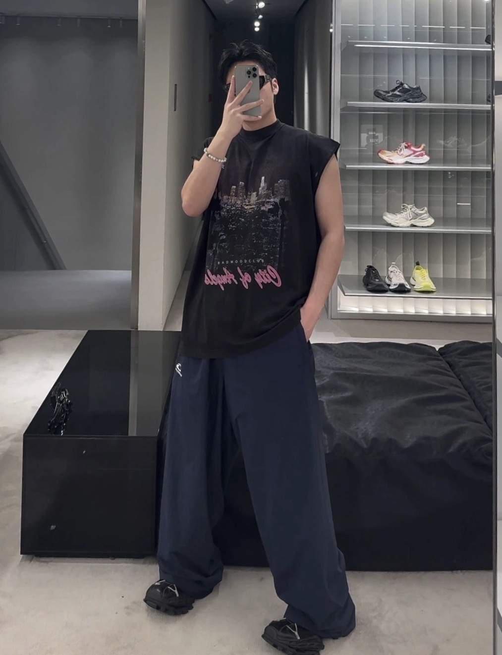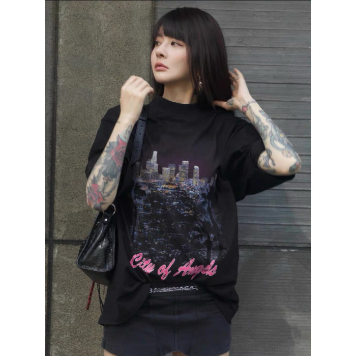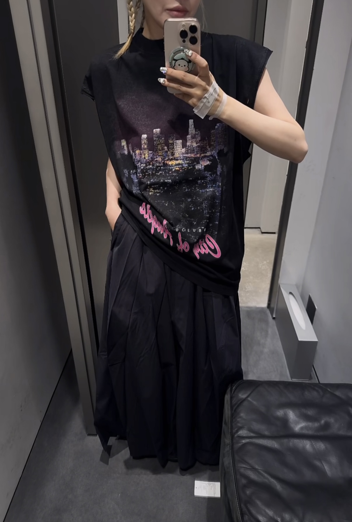 BMC天使之城洛杉磯夜景印花背心做舊泥染破壞寬松廓形無袖短袖T恤