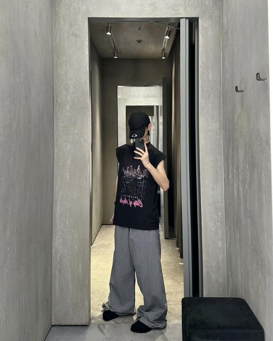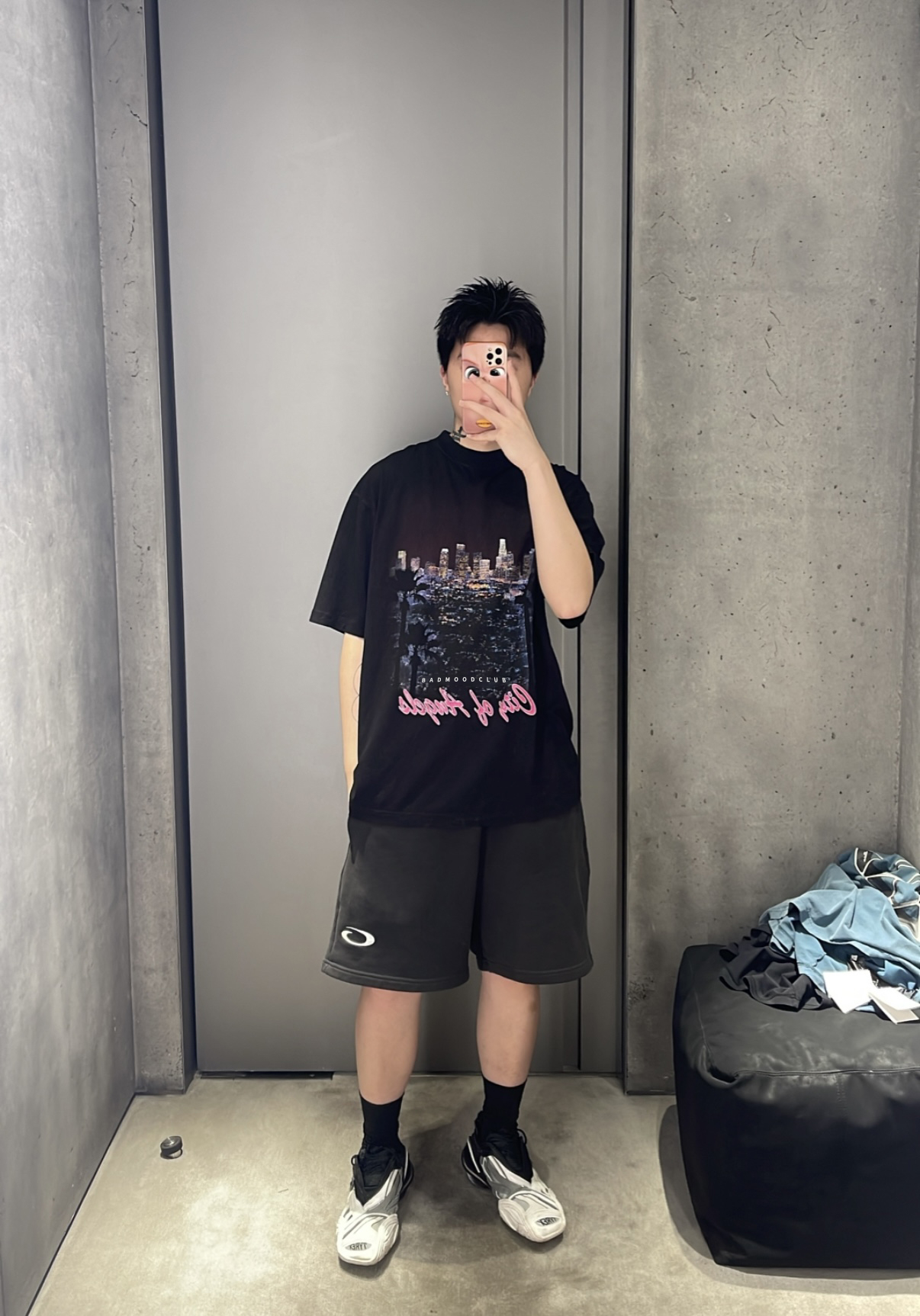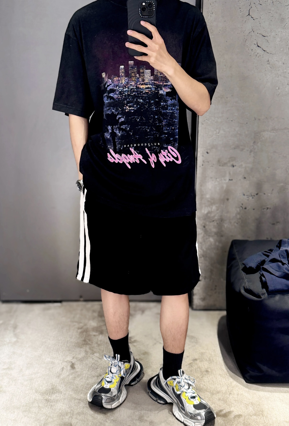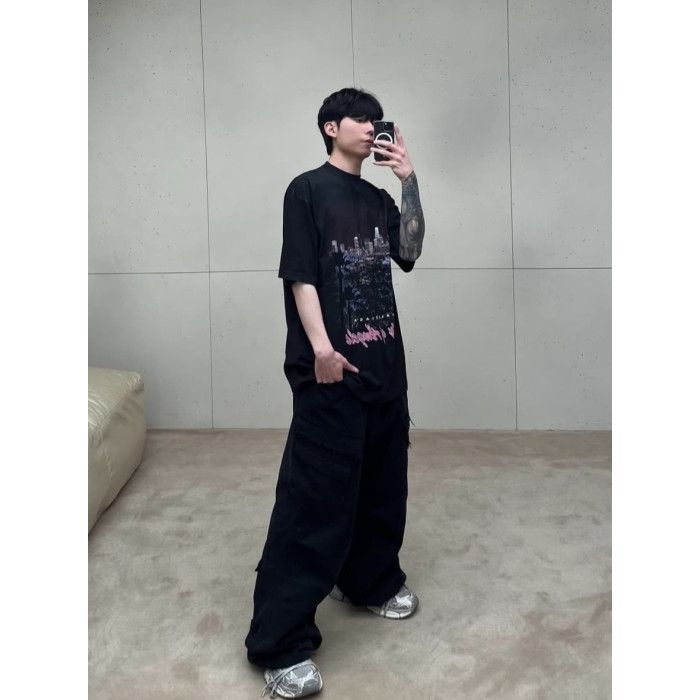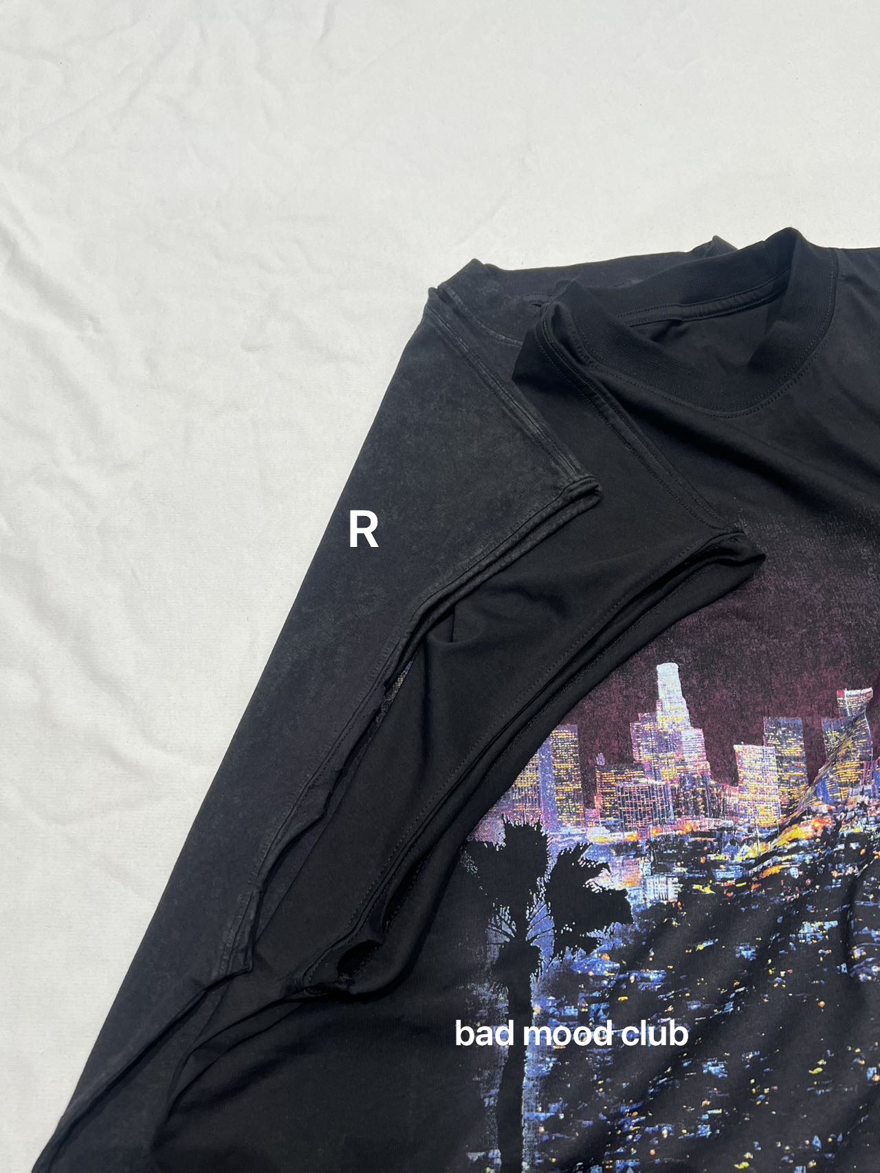 BMC天使之城洛杉磯夜景印花背心做舊泥染破壞寬松廓形無袖短袖T恤