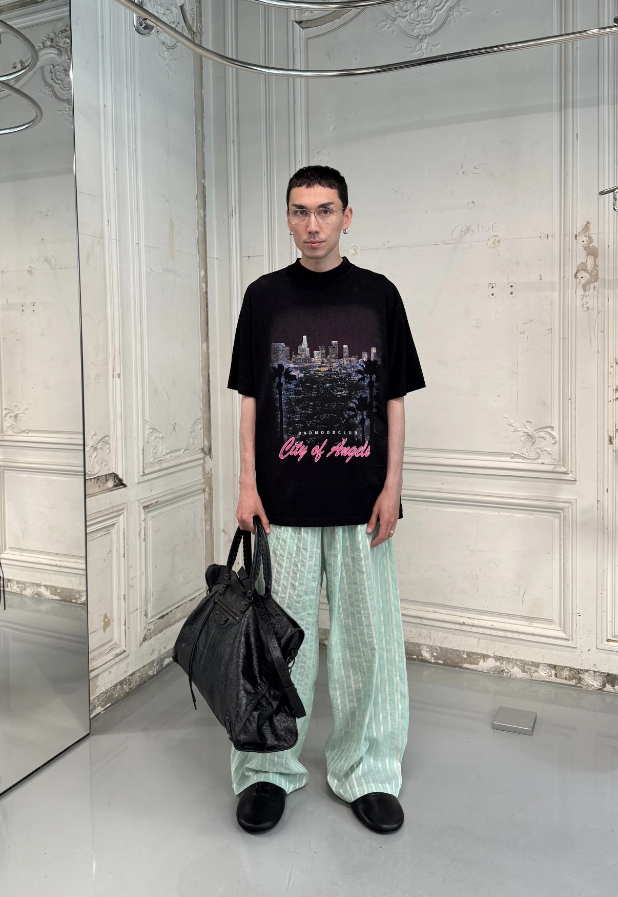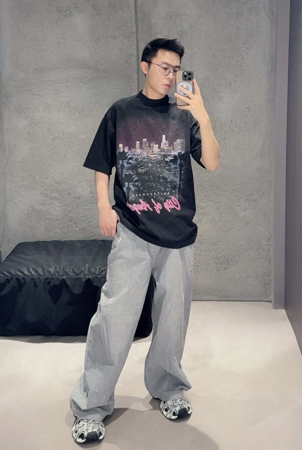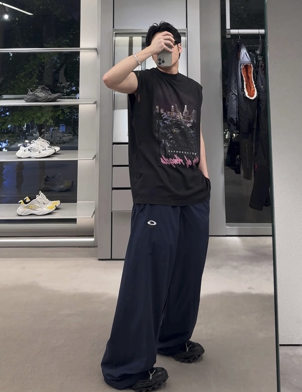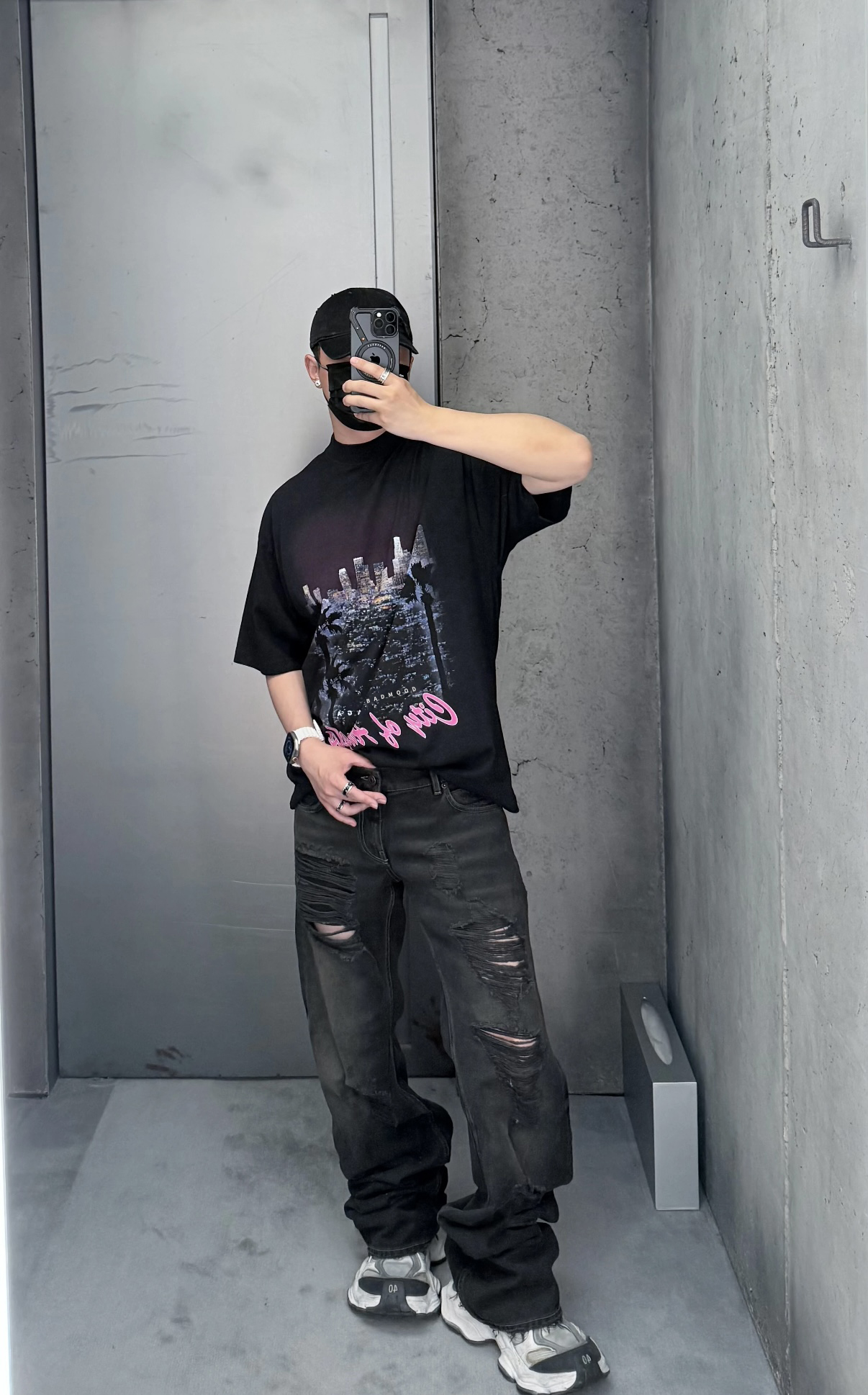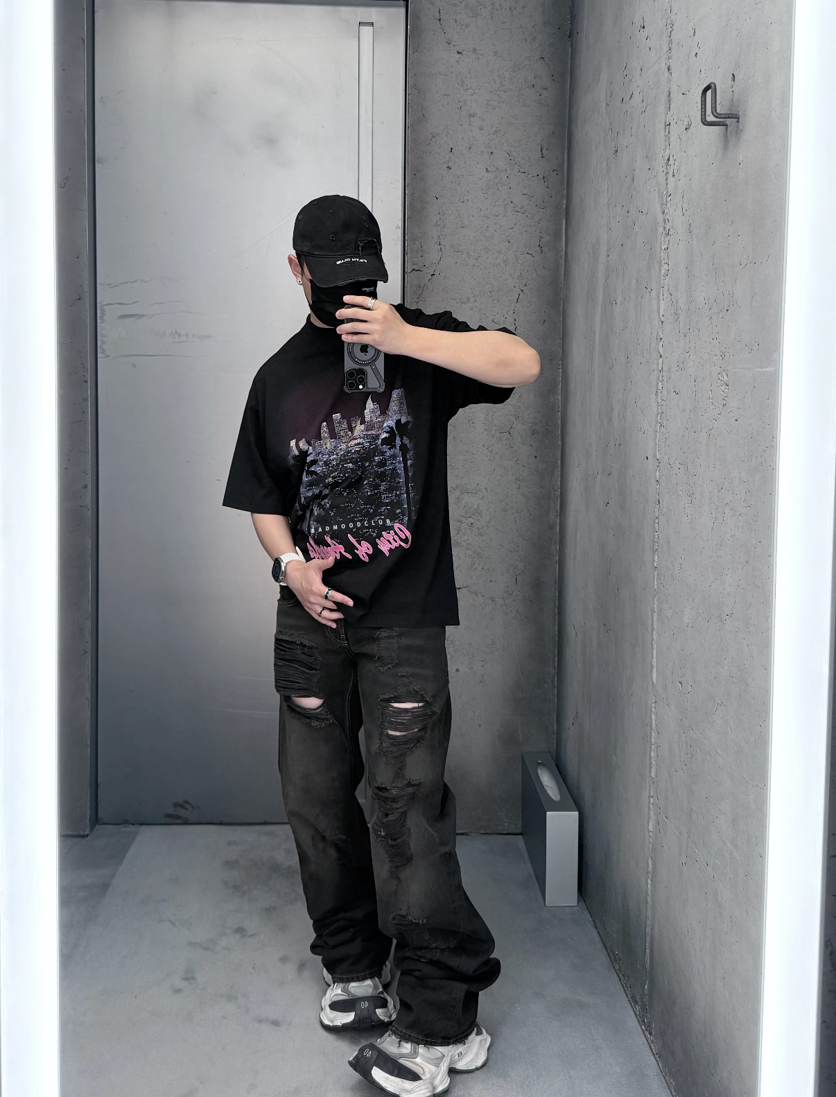 BMC天使之城洛杉磯夜景印花背心做舊泥染破壞寬松廓形無袖短袖T恤