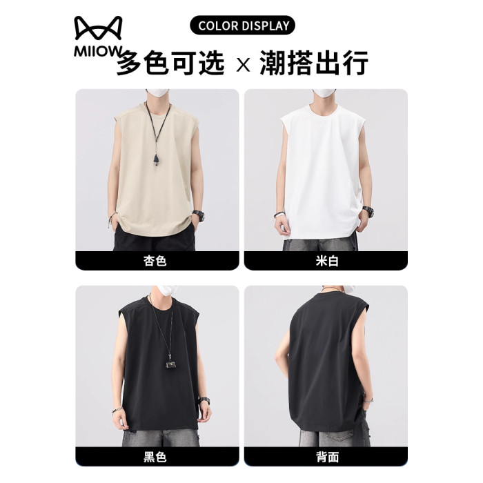 貓人運動涼感背心男夏季寬松休閒無袖T恤訓練服籃球坎肩健身跑步