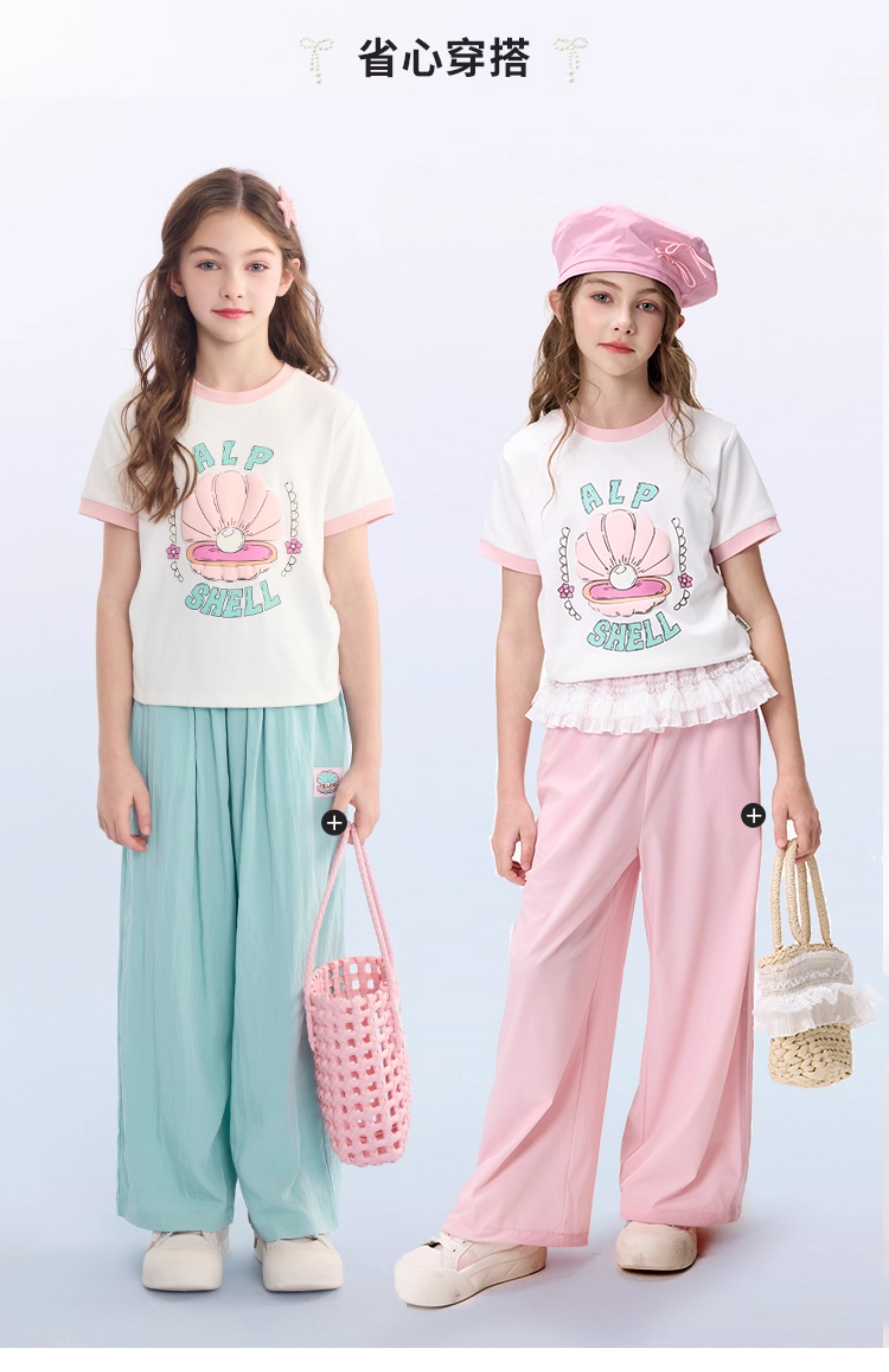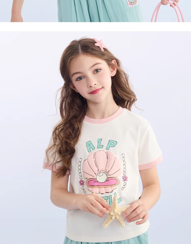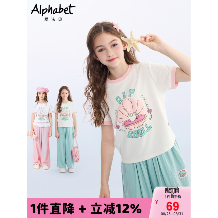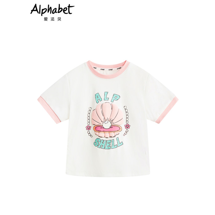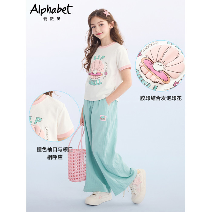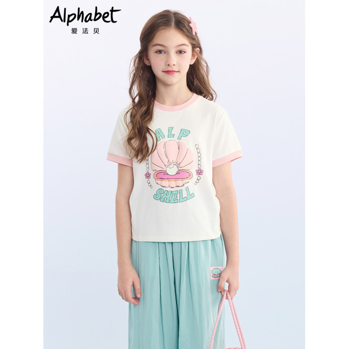 愛法貝2025春夏新款女童清新撞色短袖t恤中大兒童裝洋氣體恤韓系