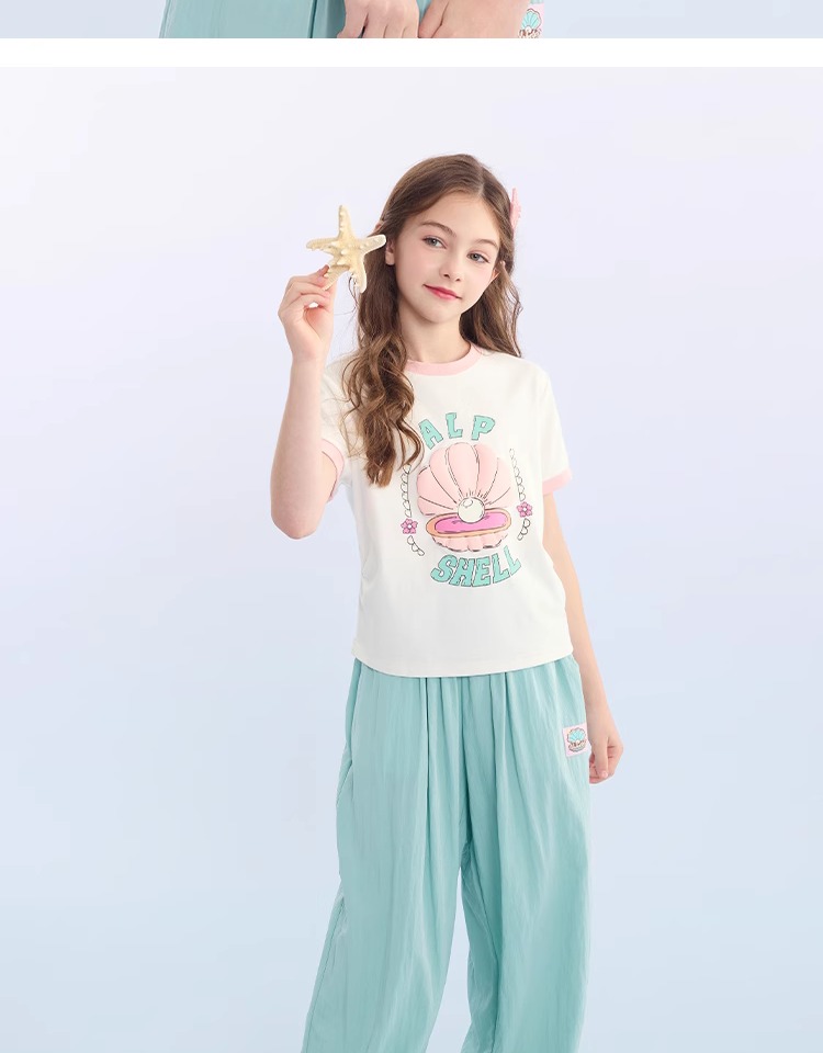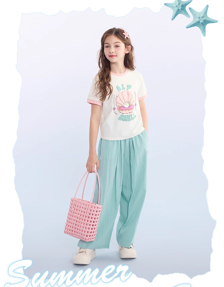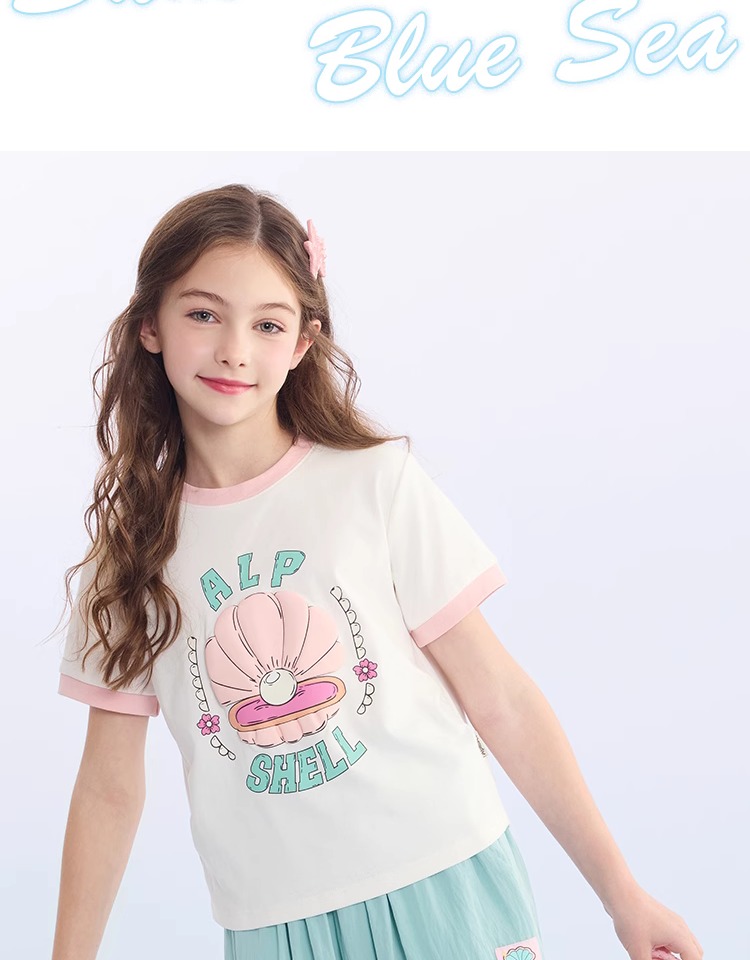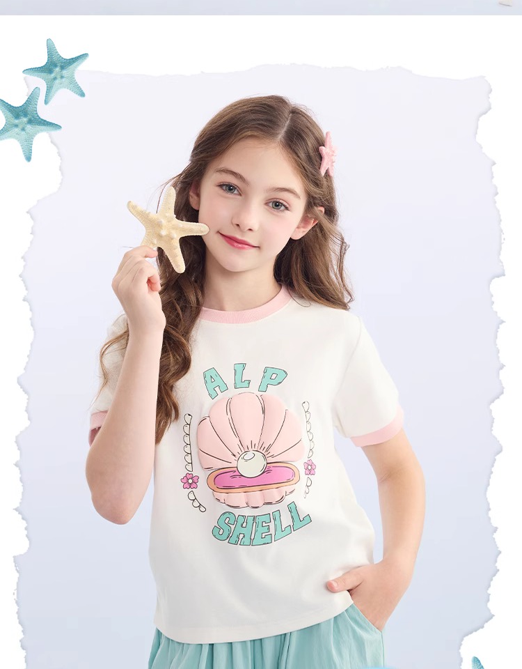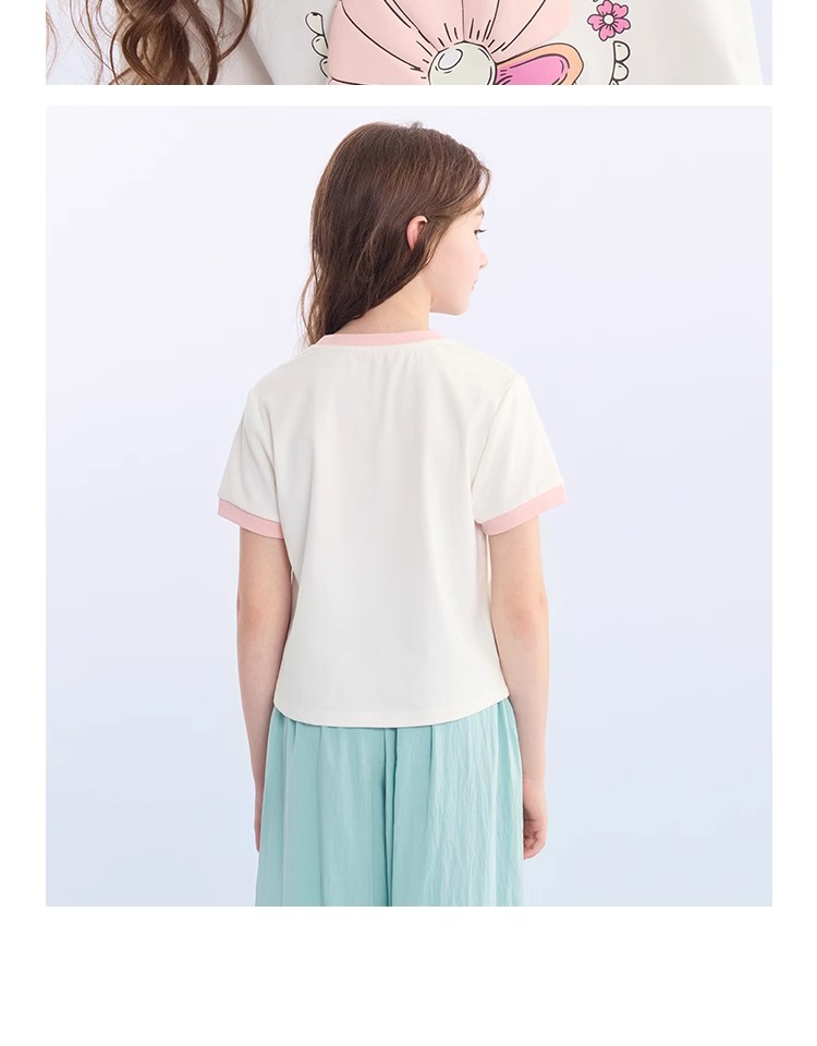 愛法貝2025春夏新款女童清新撞色短袖t恤中大兒童裝洋氣體恤韓系