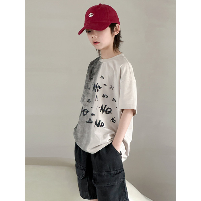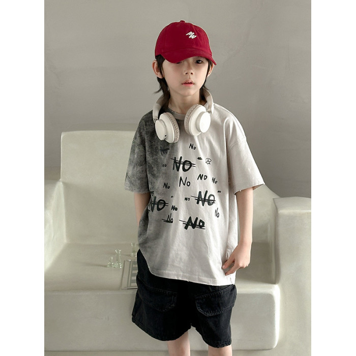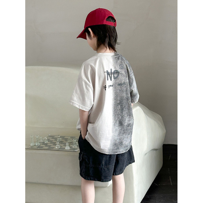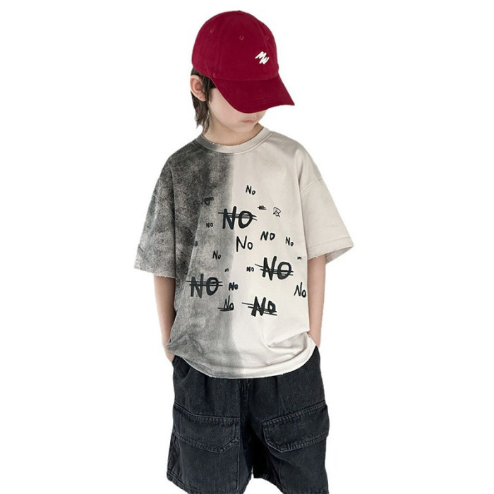 2025新款男童拼色英文短袖T恤兒童夏季半袖中大童洋氣時尚上衣潮t