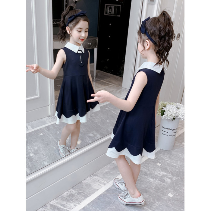 韓國女童連衣裙純棉夏裝2025新款夏季女孩無袖公主裙兒童背心裙子