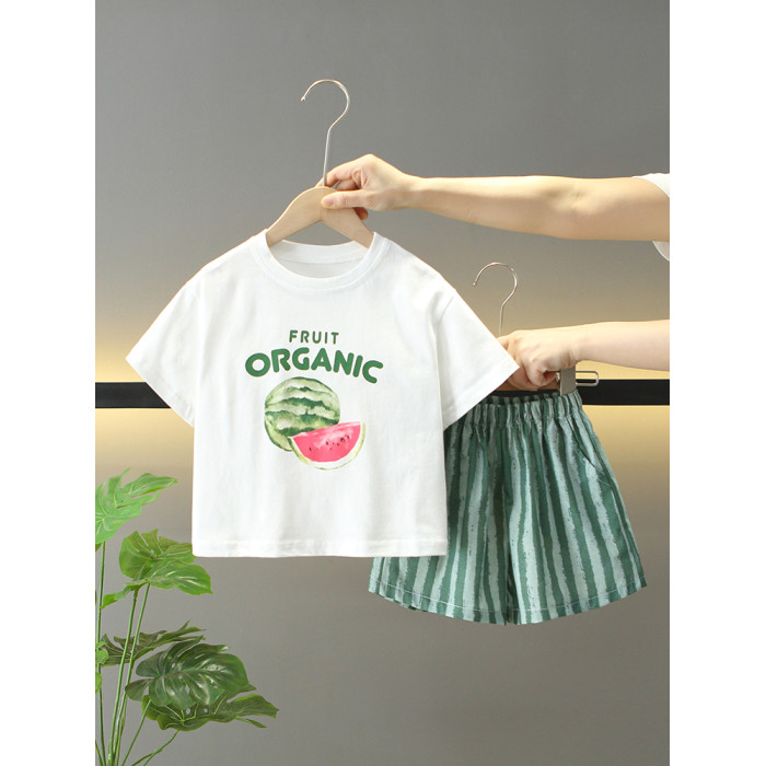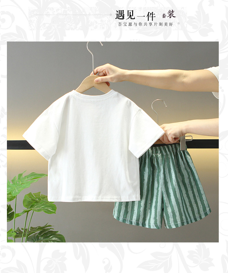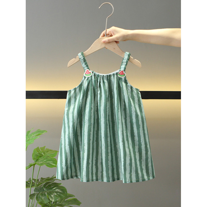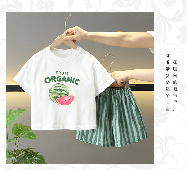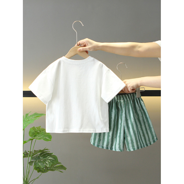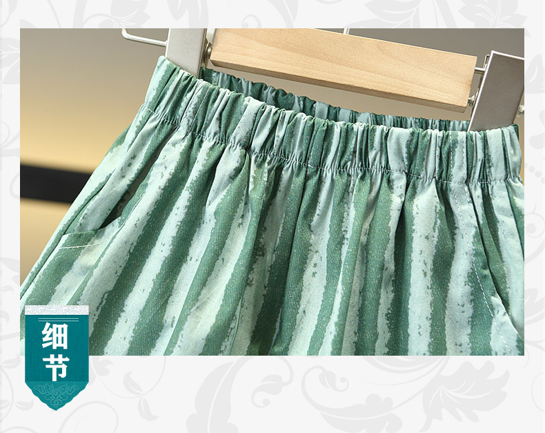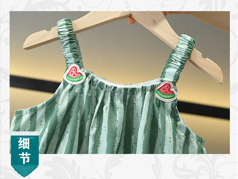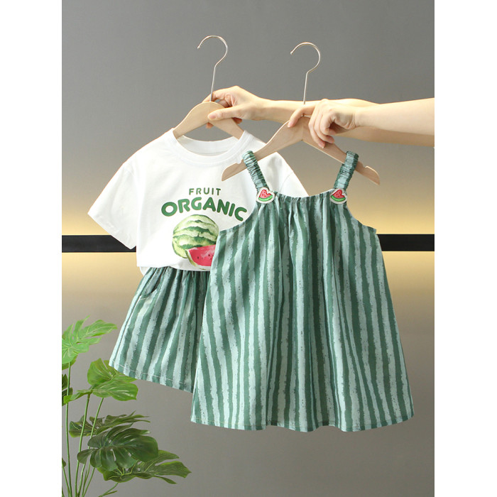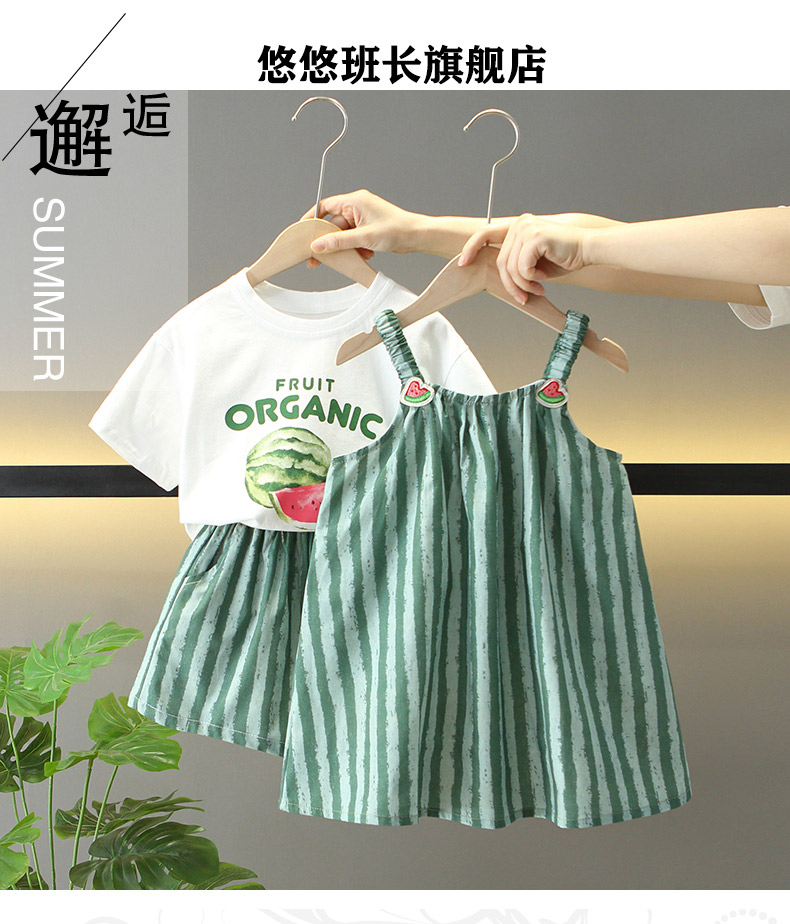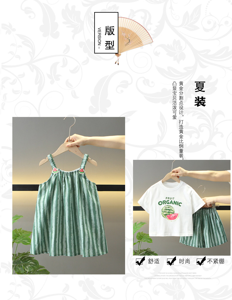 兒童夏季兄妹裝2025新款洋氣男女寶寶卡通西瓜短袖條紋短褲吊帶裙