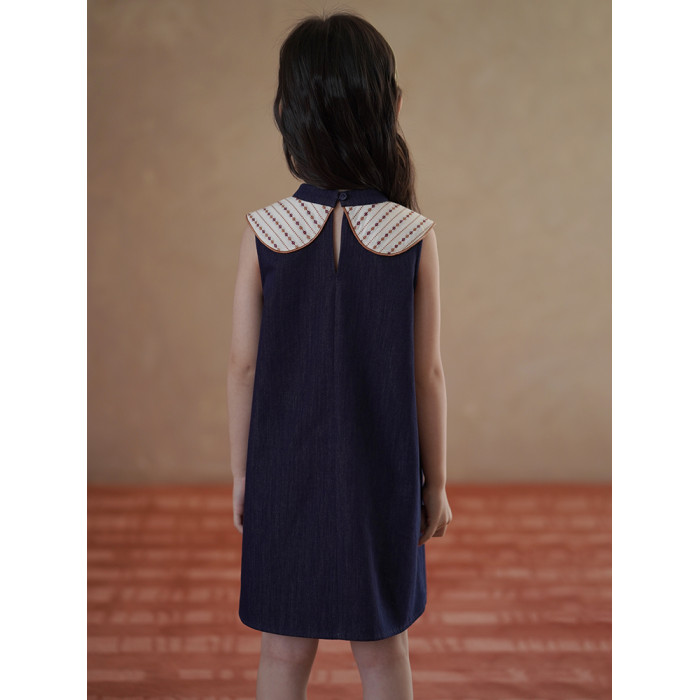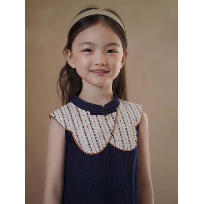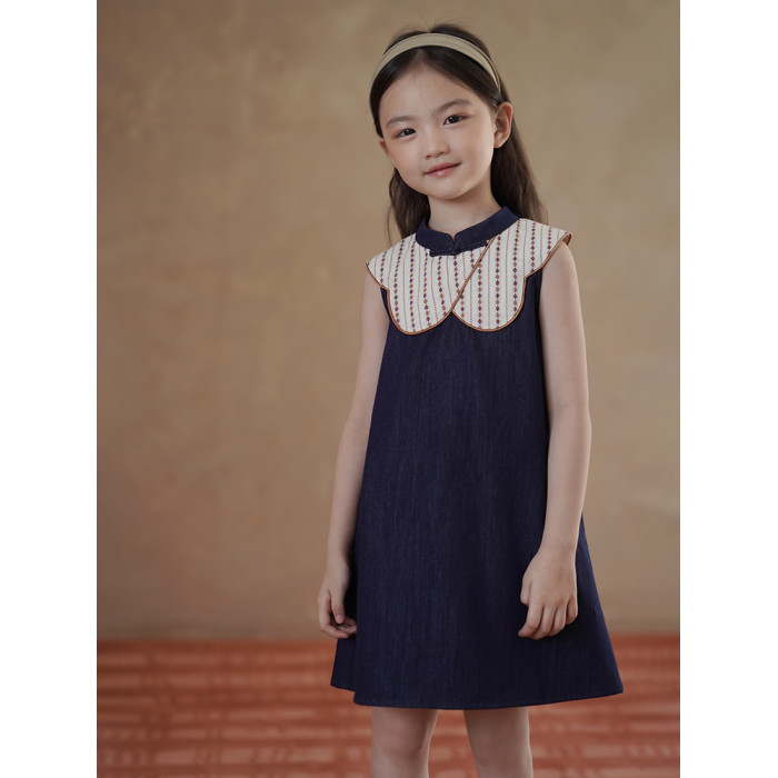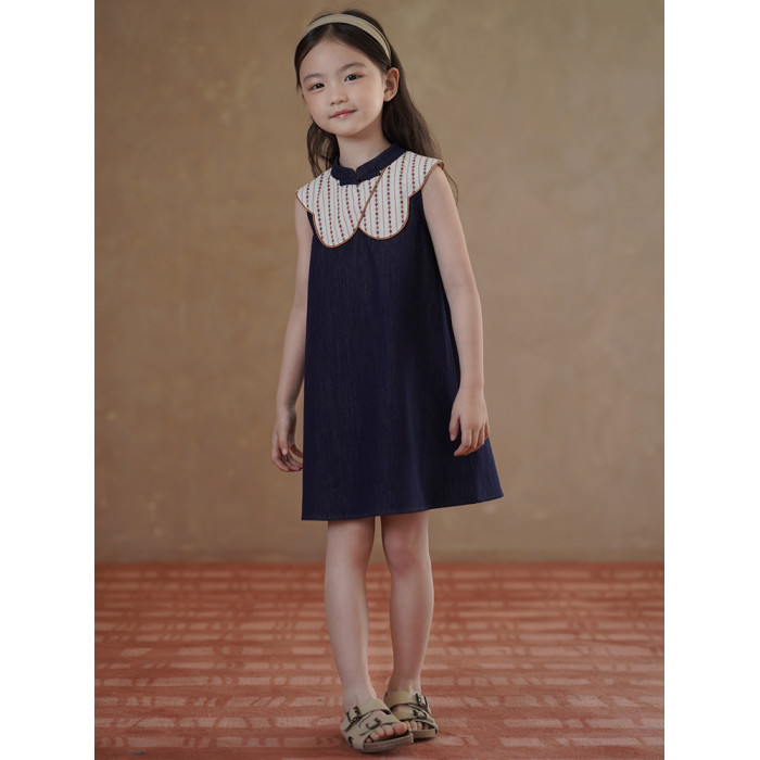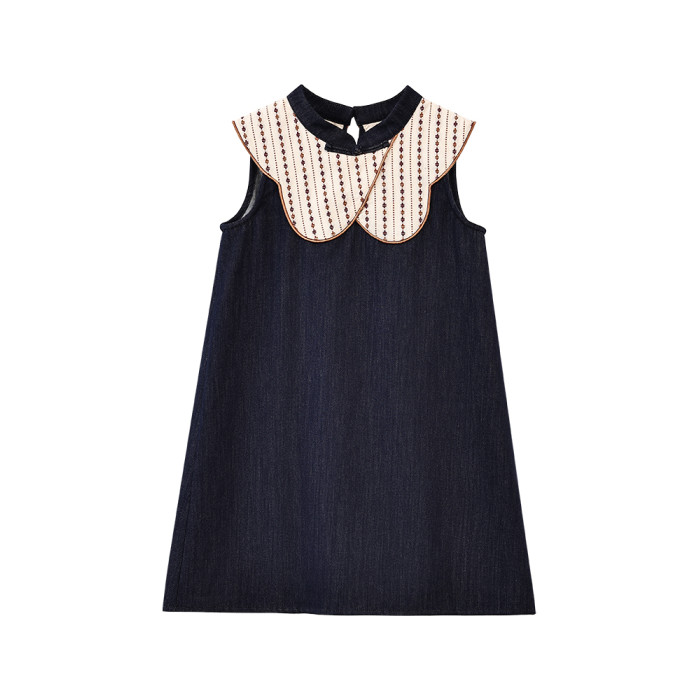 哈齒童裝夏季薄款裙子新中式背心裙女童牛仔裙復古拼接連衣裙女孩