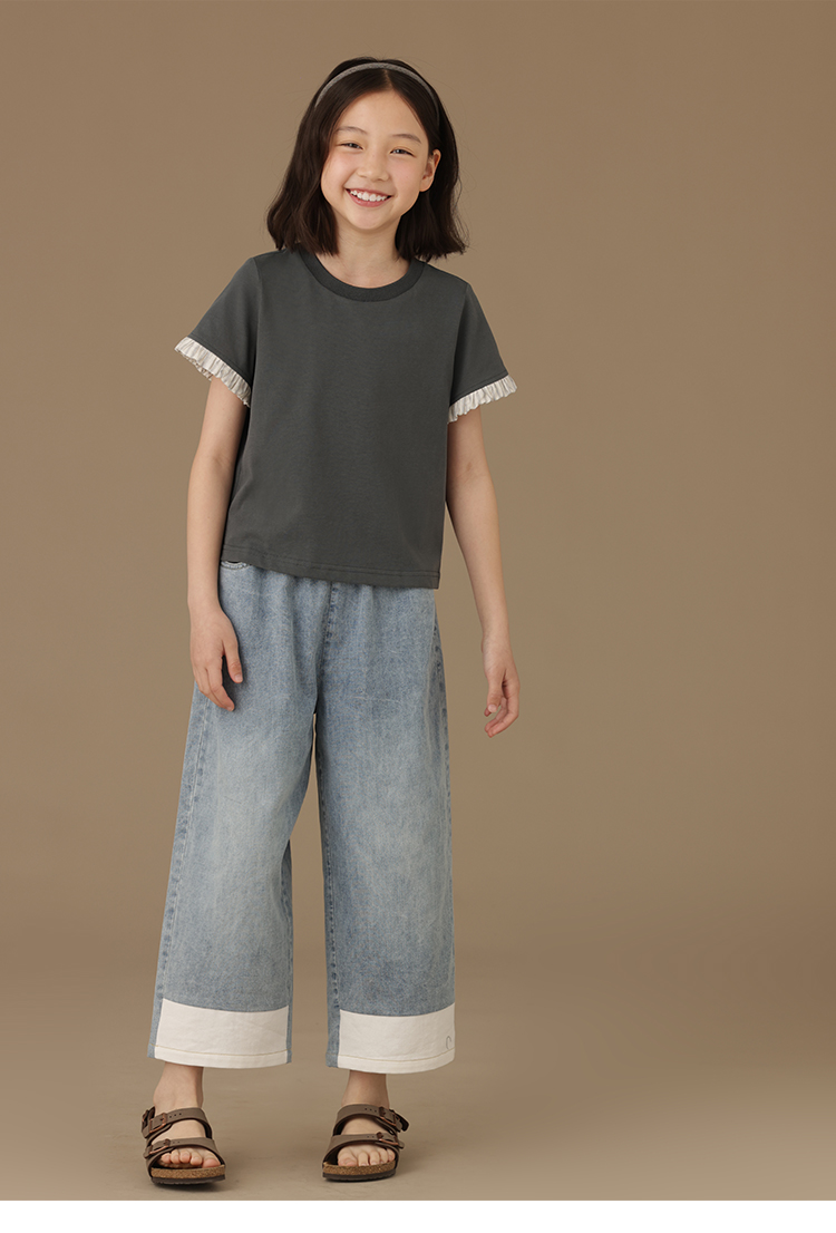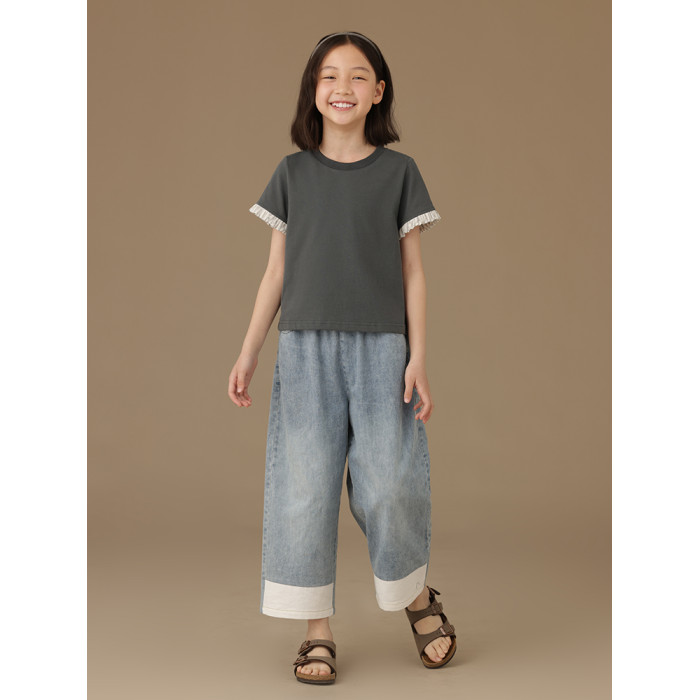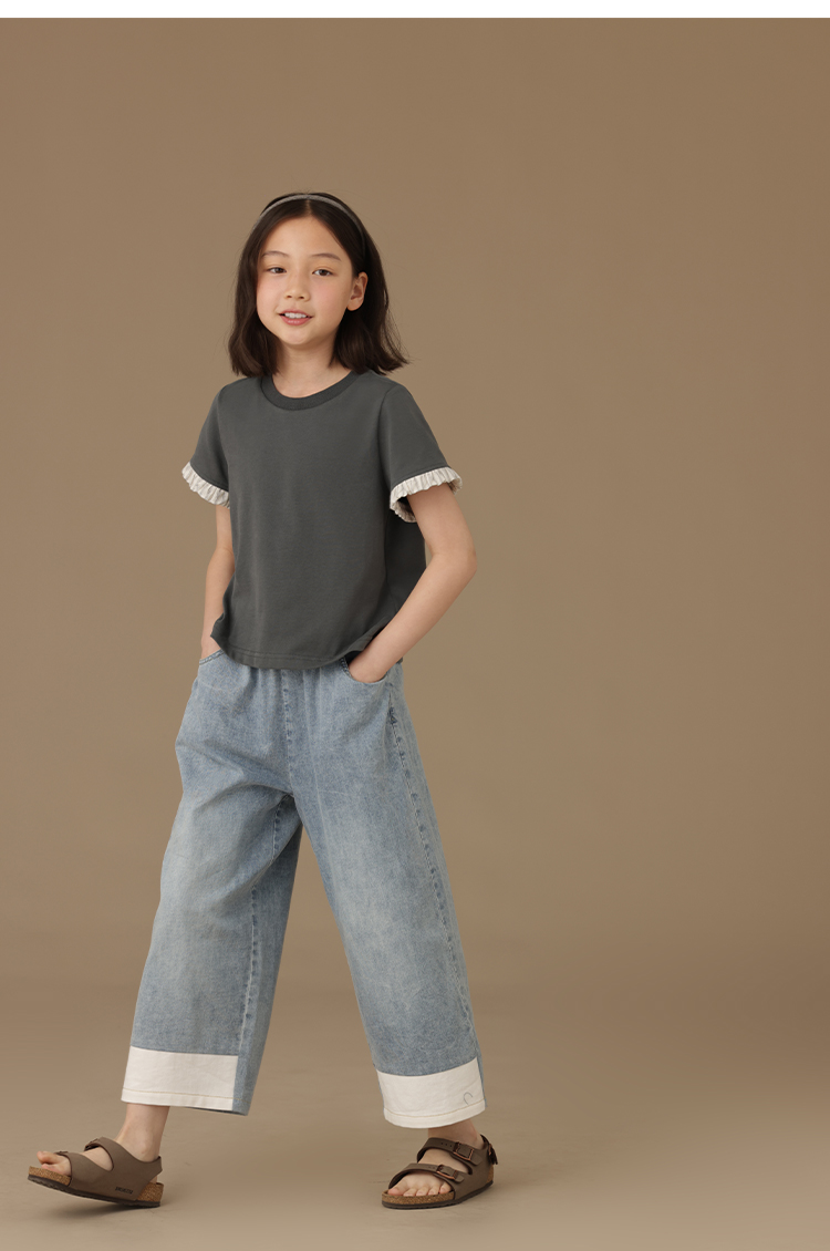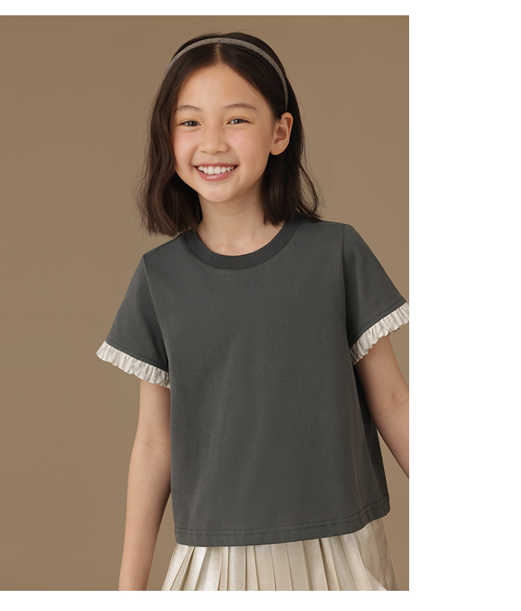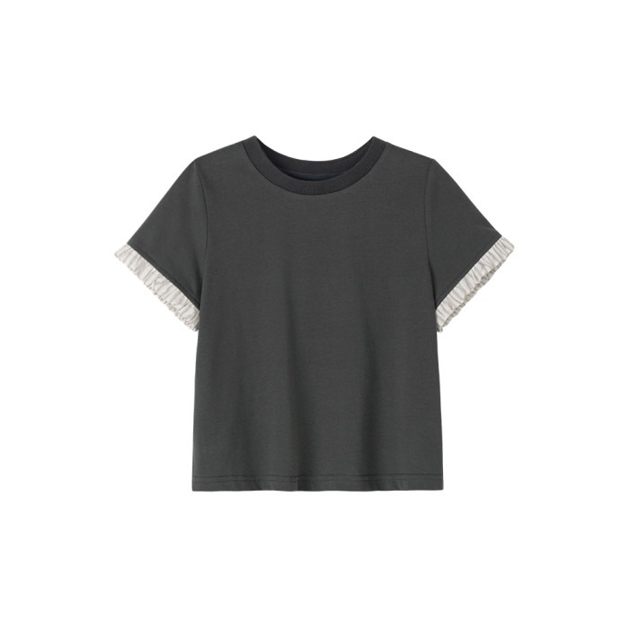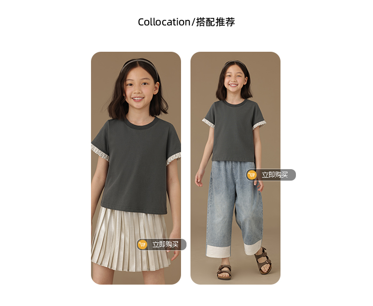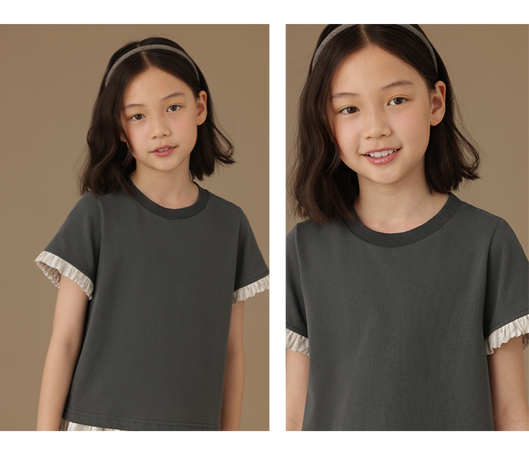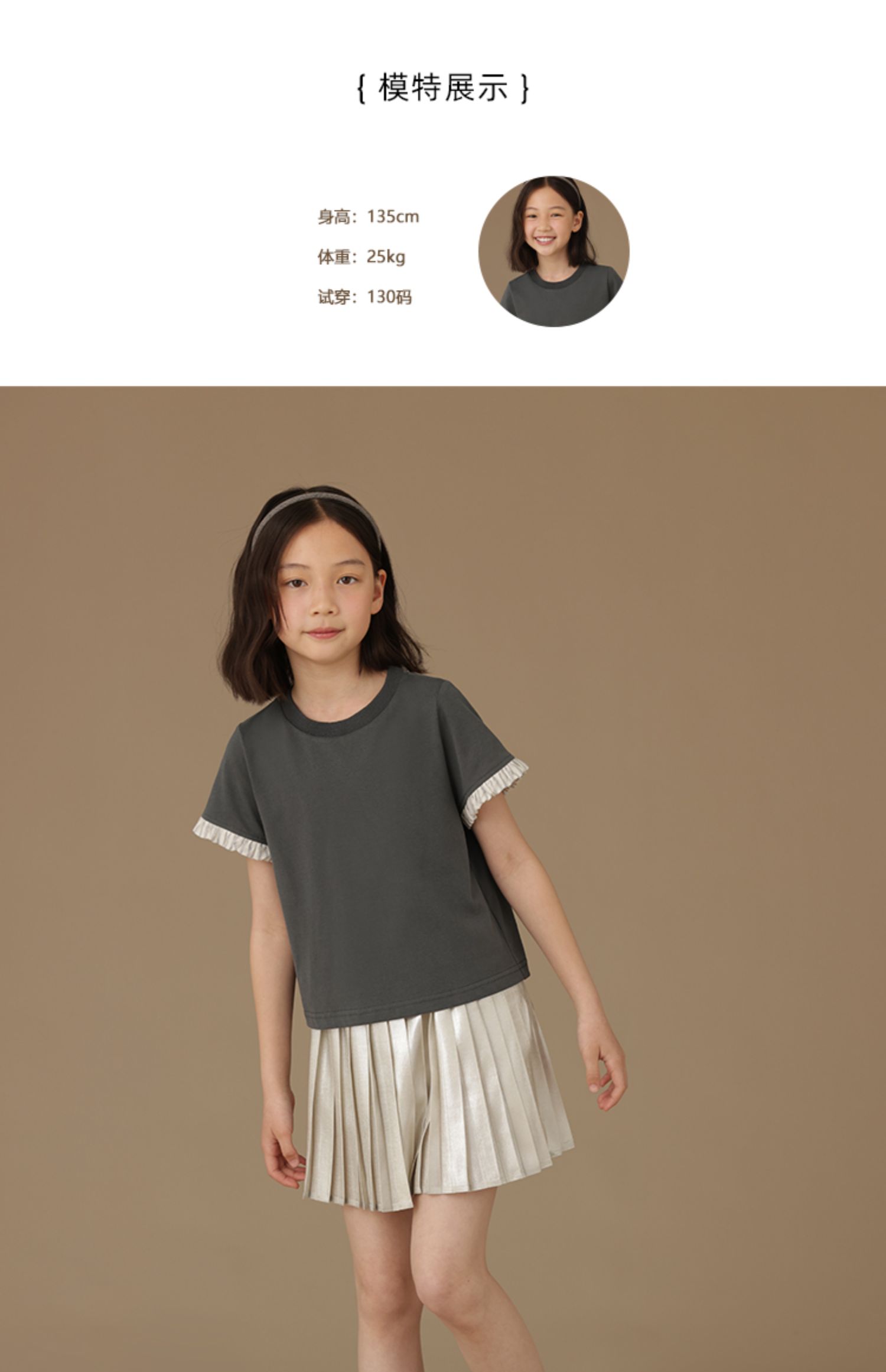 哈齒童裝兒童深灰短袖上衣夏季薄款百搭寬松圓領T恤女童夏裝洋氣