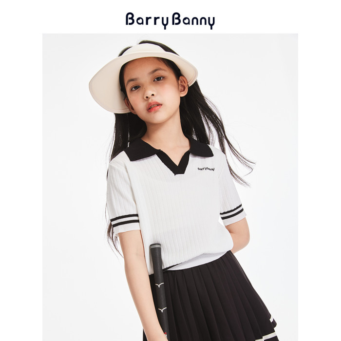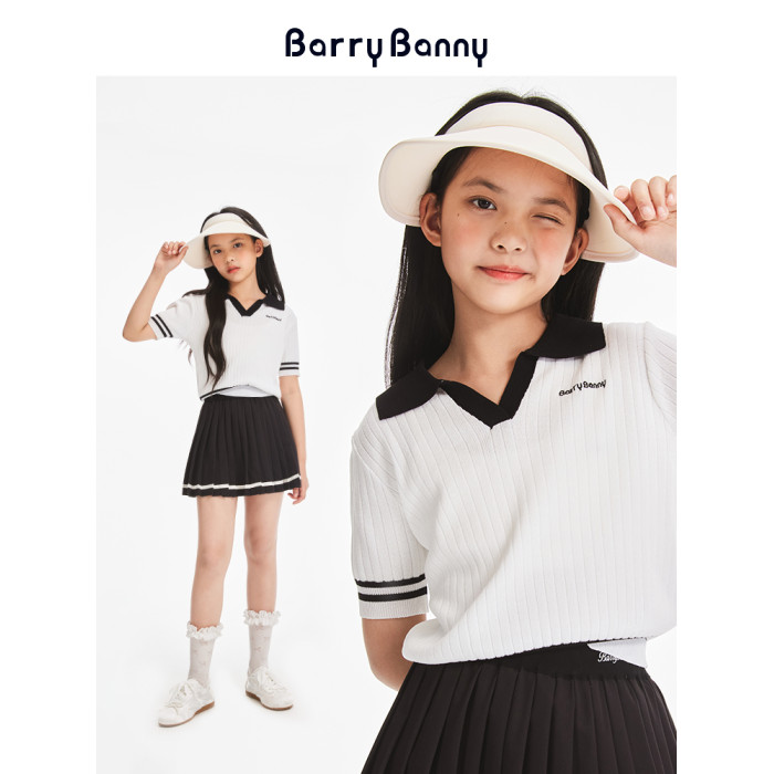 BarryBanny女童短袖T恤2025夏季新款兒童洋氣女孩上衣翻領POLO衫