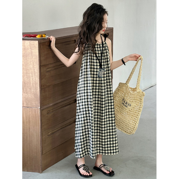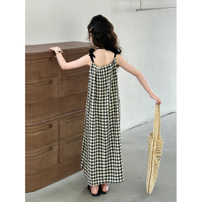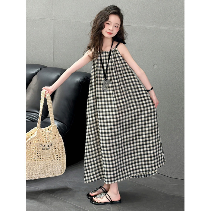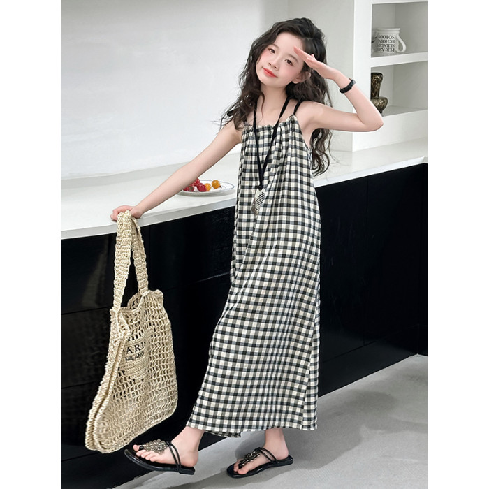 女童格子吊帶裙韓系中大童裝夏季連衣裙今年流行漂亮的長裙子兒童