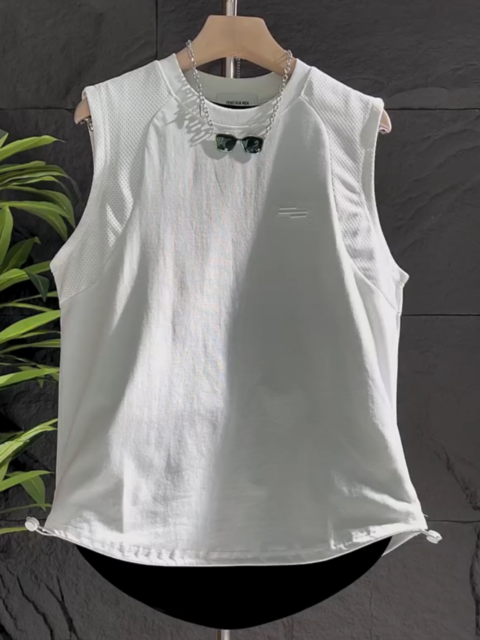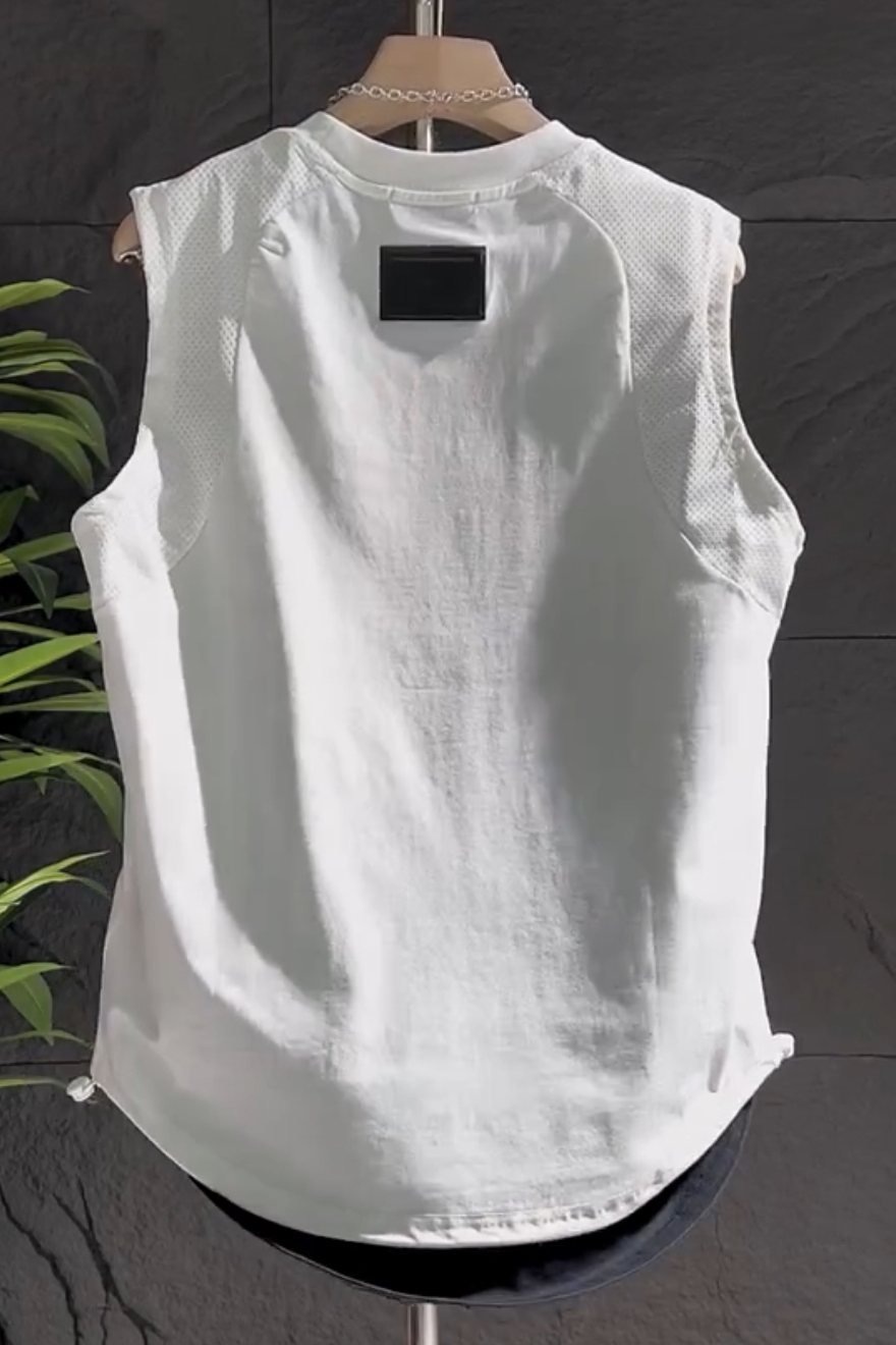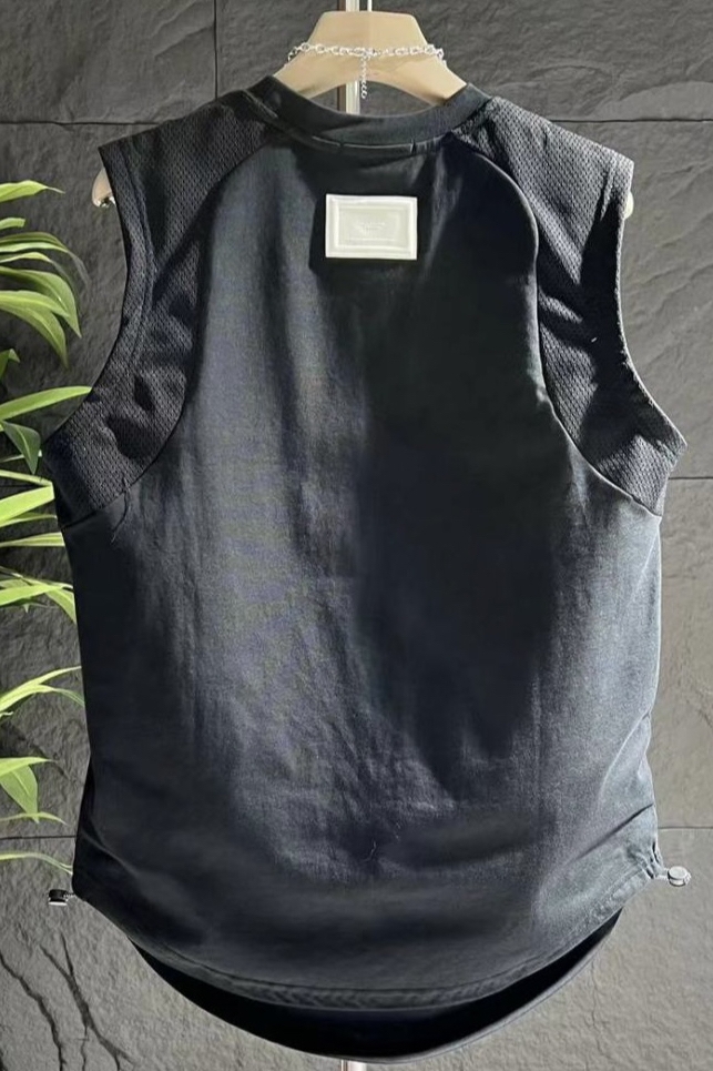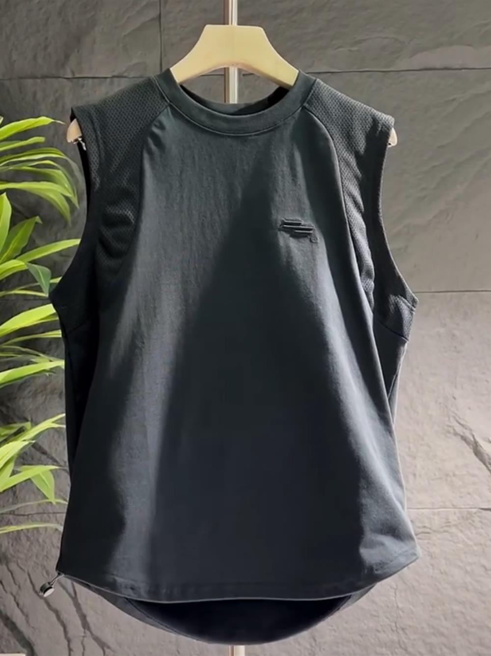 高級潮牌無袖T恤男士2025夏季新款休閒運動美式透氣坎肩背心男款