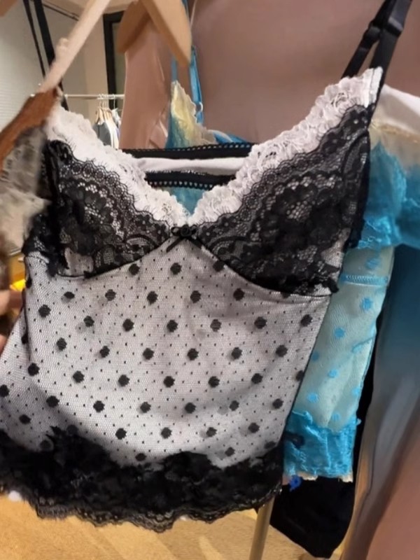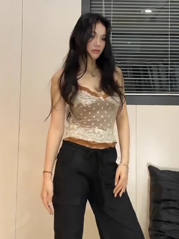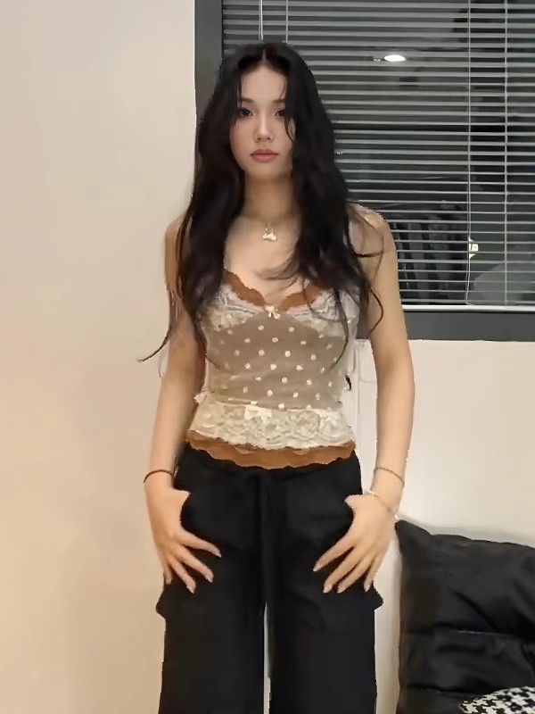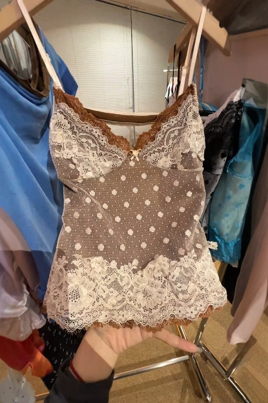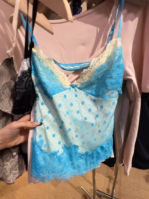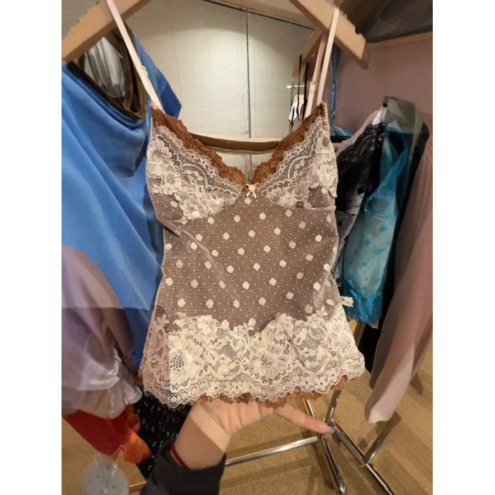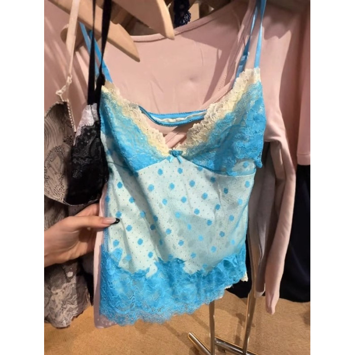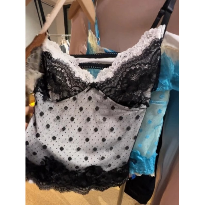 一慄莎子~純欲風辣妹波點蕾絲花邊小吊帶背心女無袖外穿內搭上衣