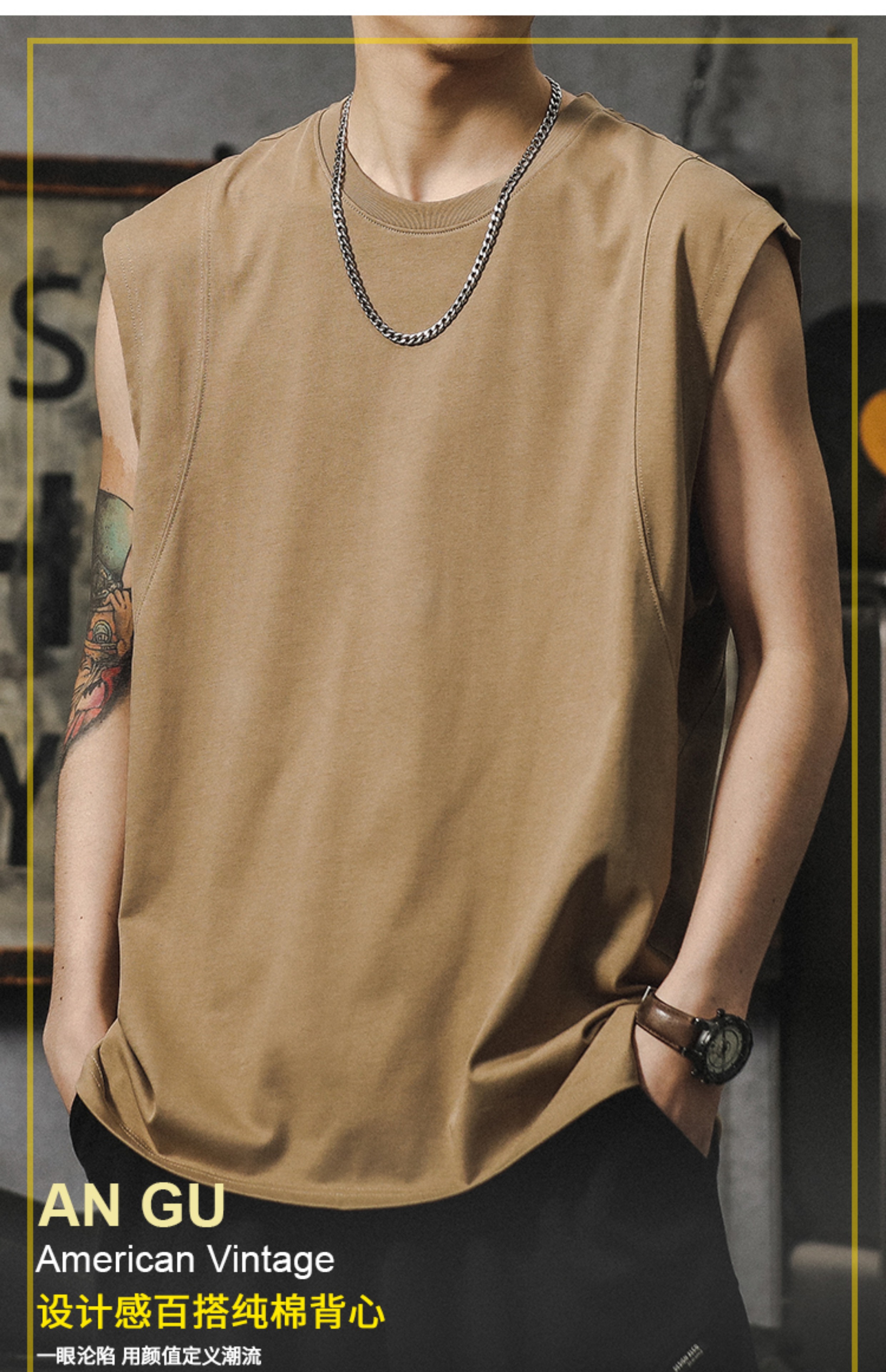 250g重磅純棉無袖男t恤背心2025新款運動坎肩打底汗衫夏季健身衣