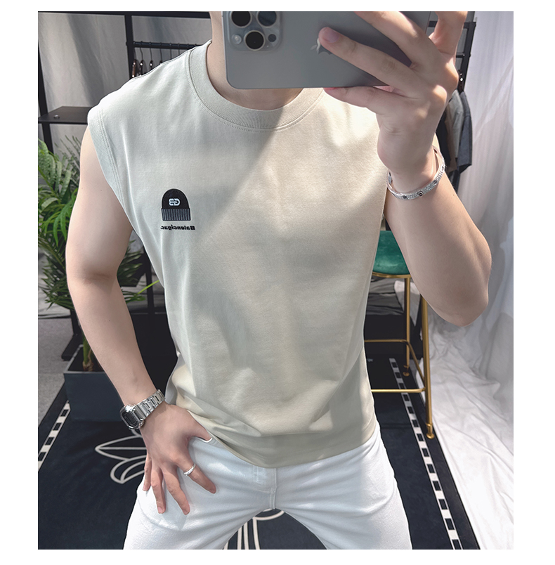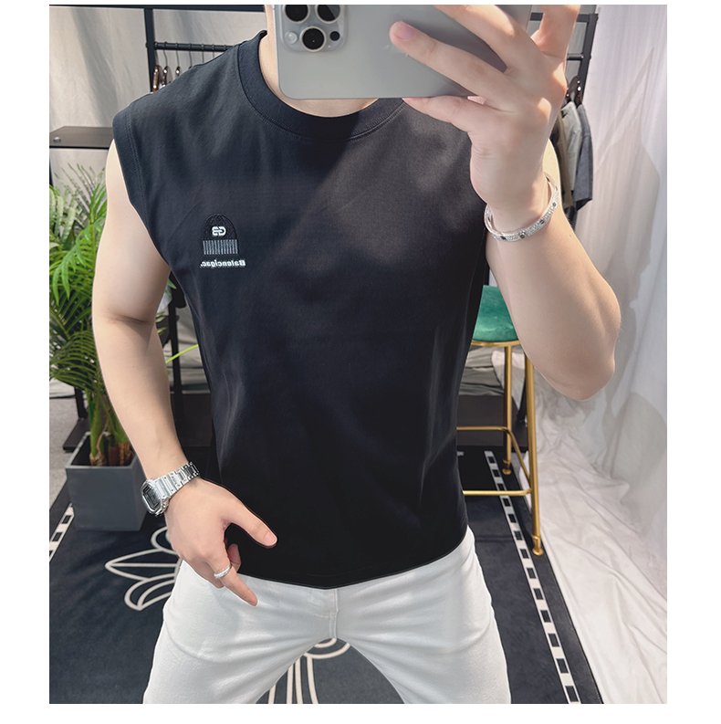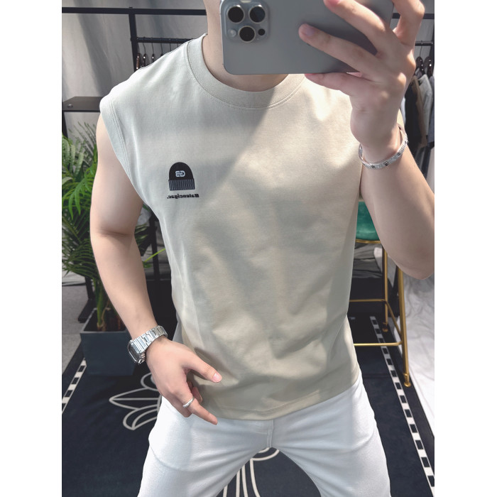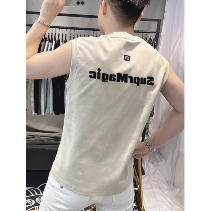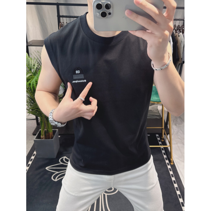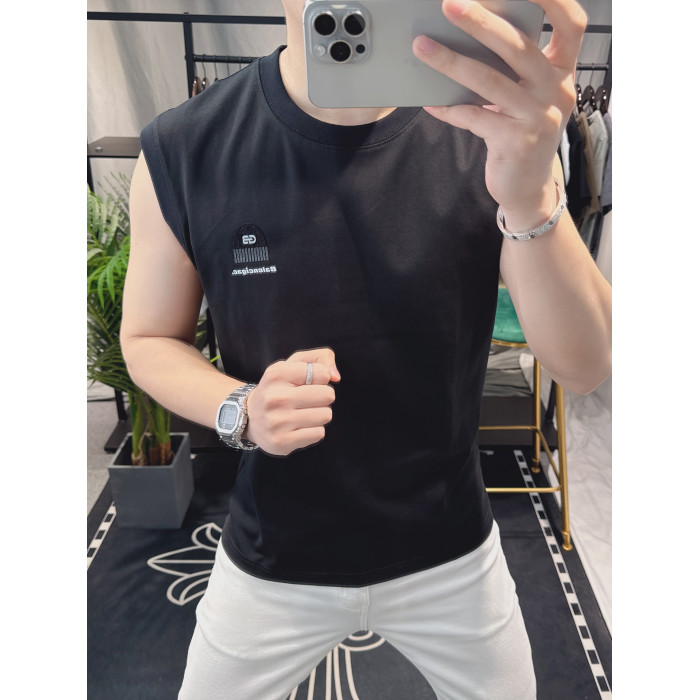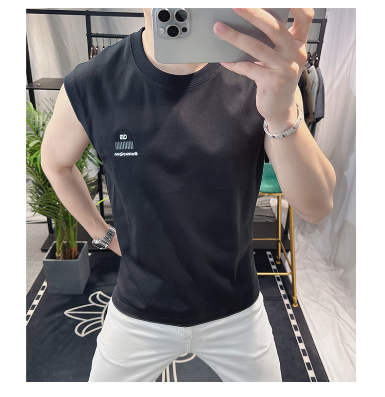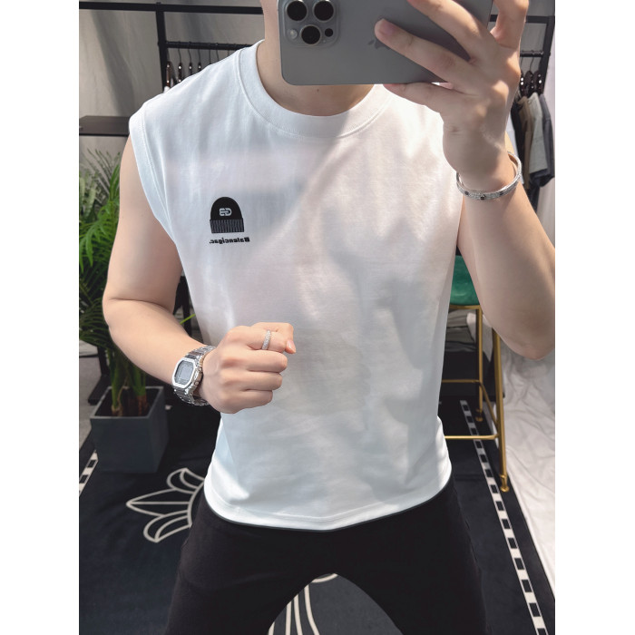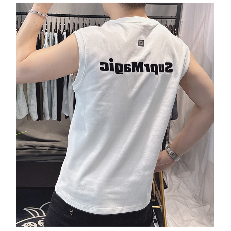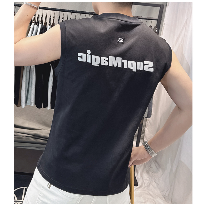 歐洲站男士時尚個性圓領背心2025新款潮流印花無袖坎肩T恤男修身