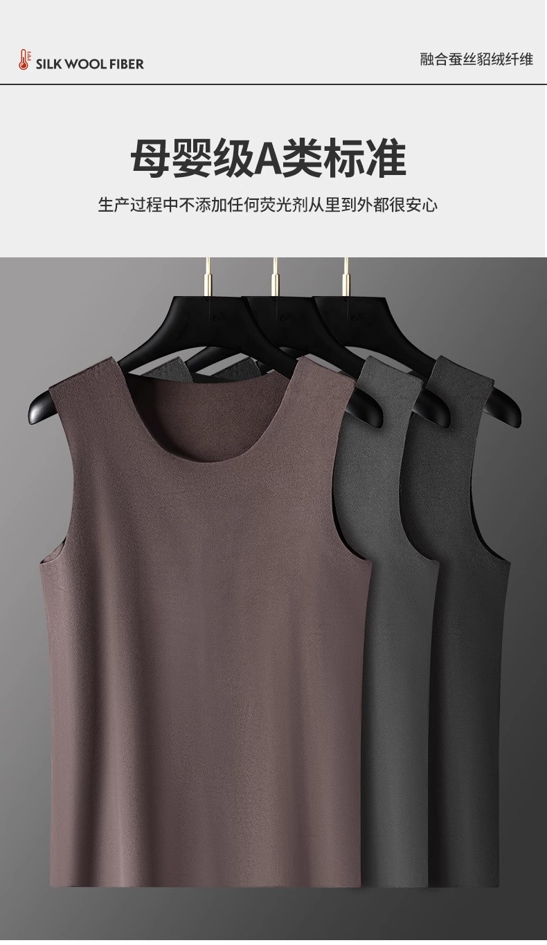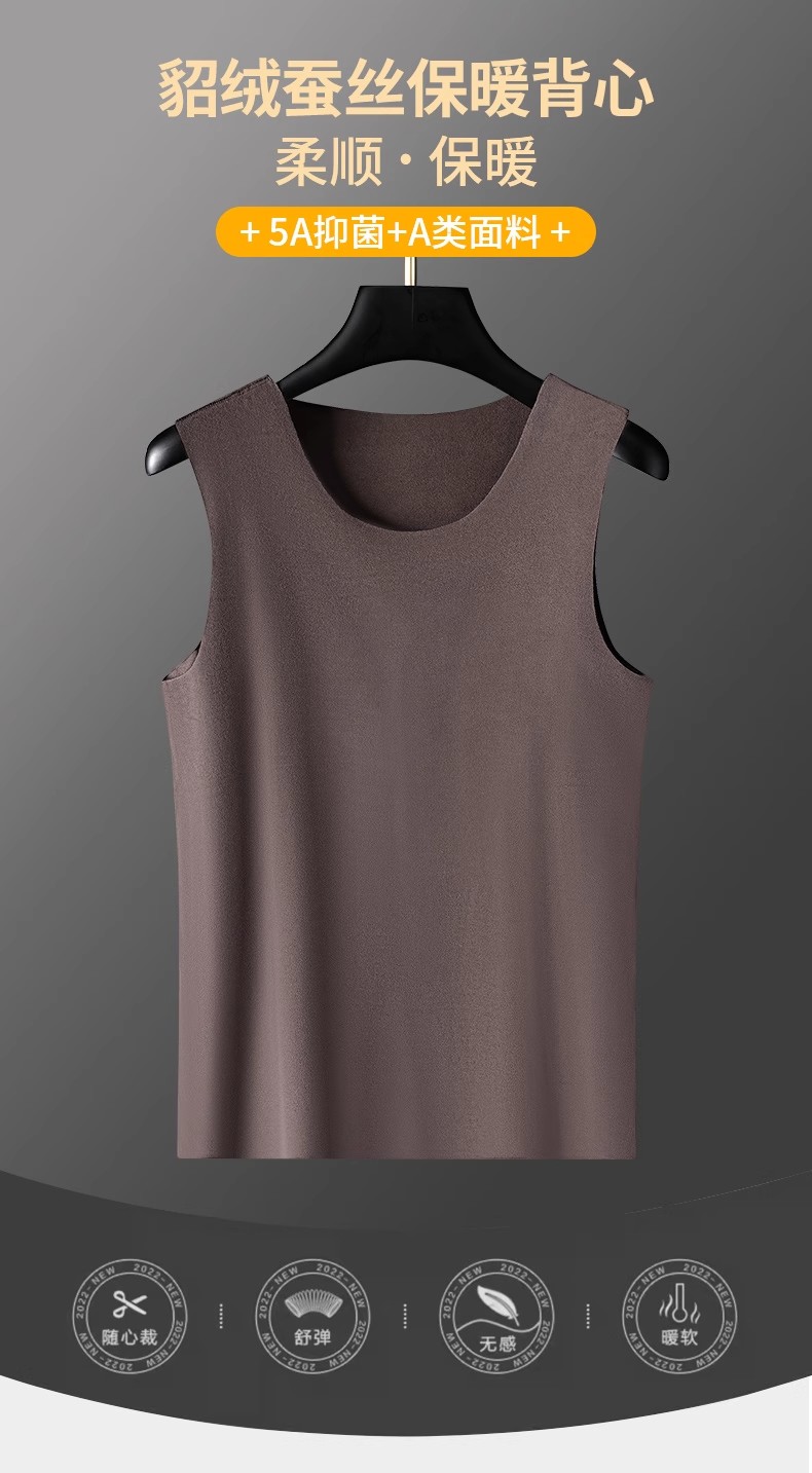 貂絨蠶絲無痕保暖背心男士加厚秋冬季內穿打底衫德絨髮熱坎肩上衣
