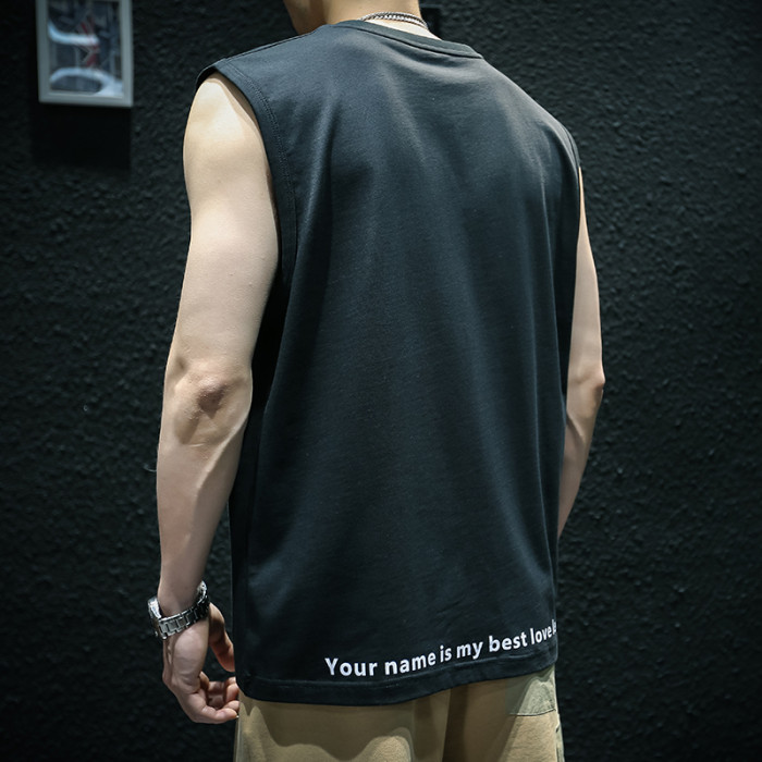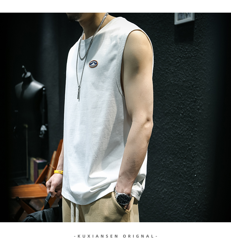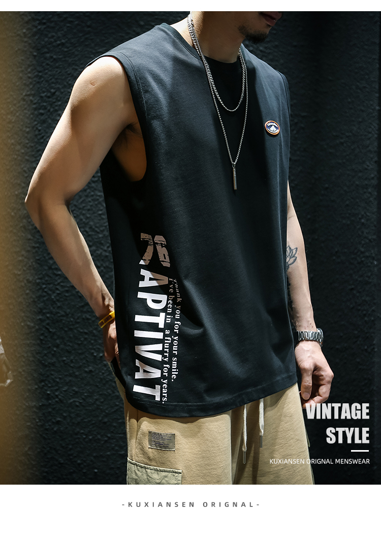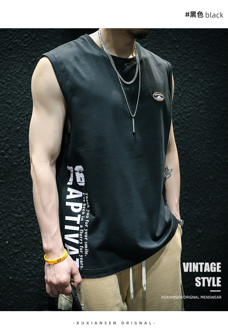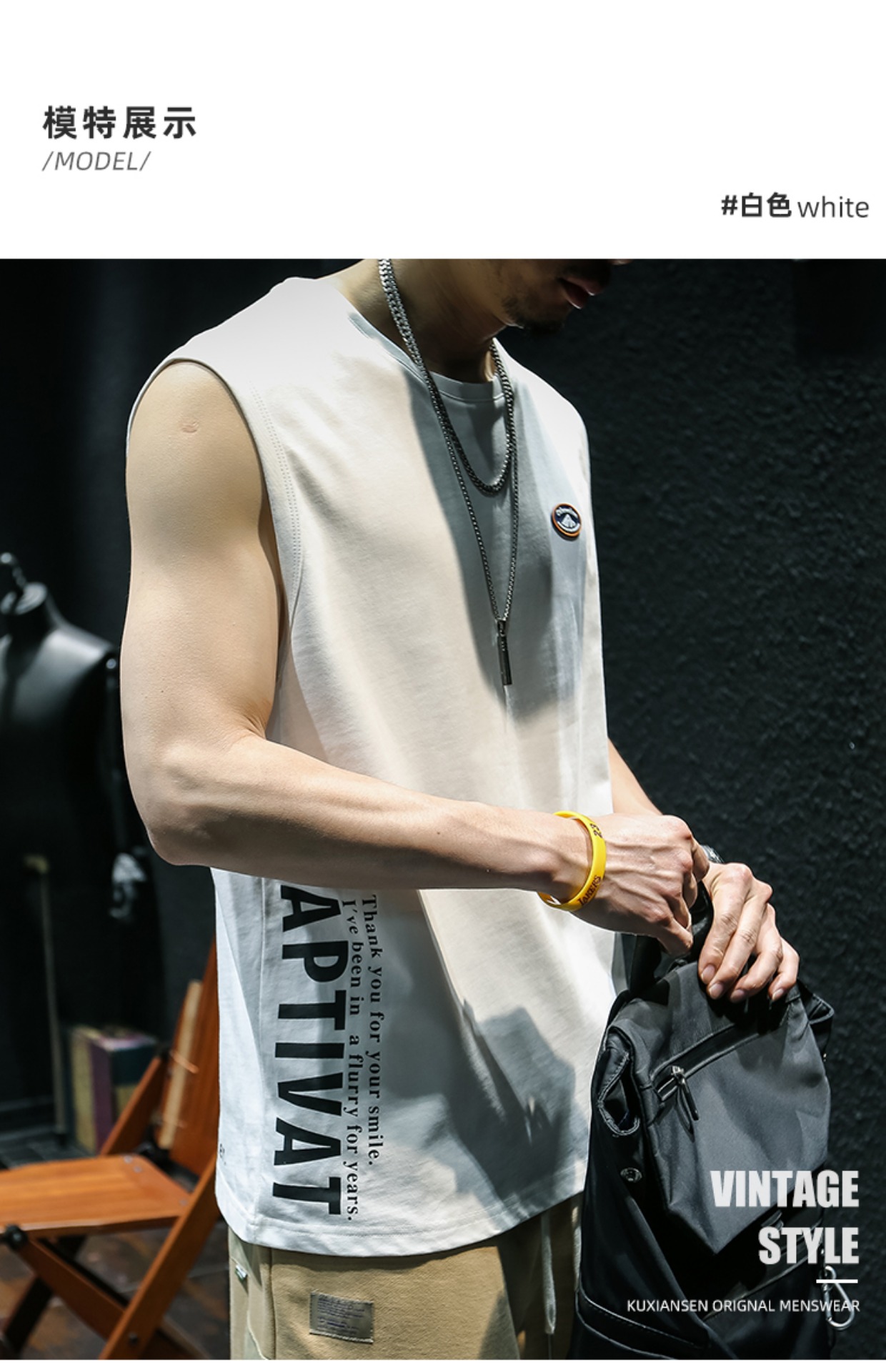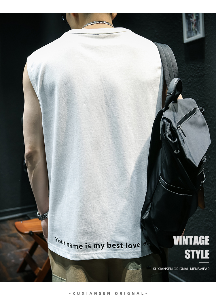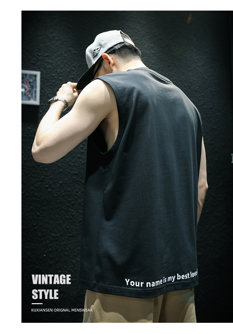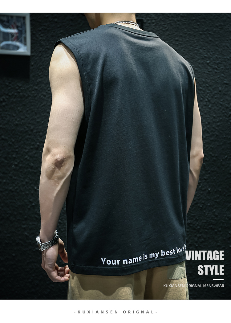 2025夏季純棉無袖背心男寬松潮牌ins坎肩短袖大碼運動健身t恤潮