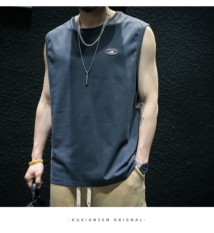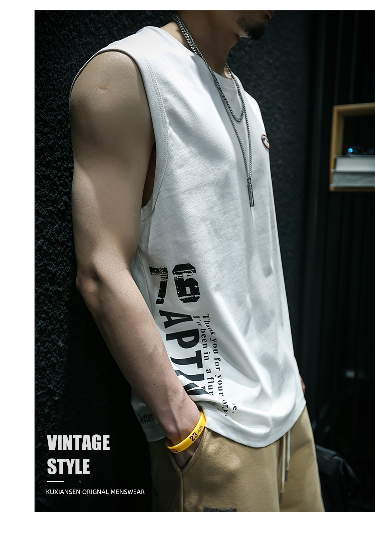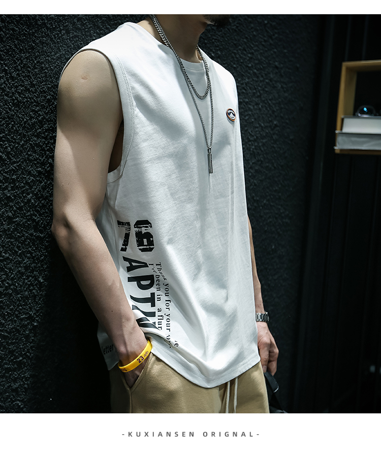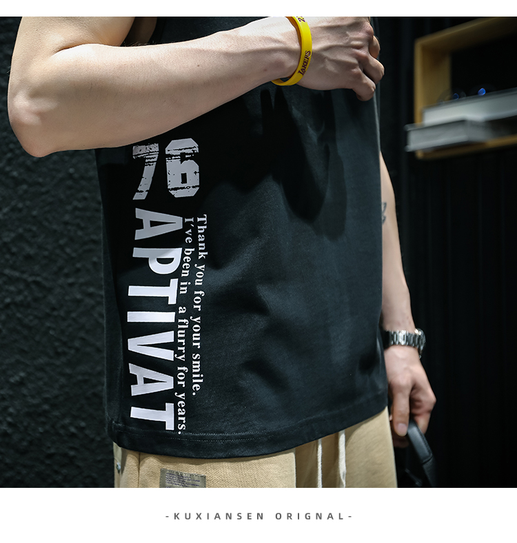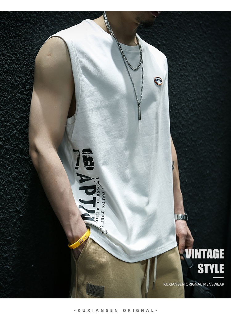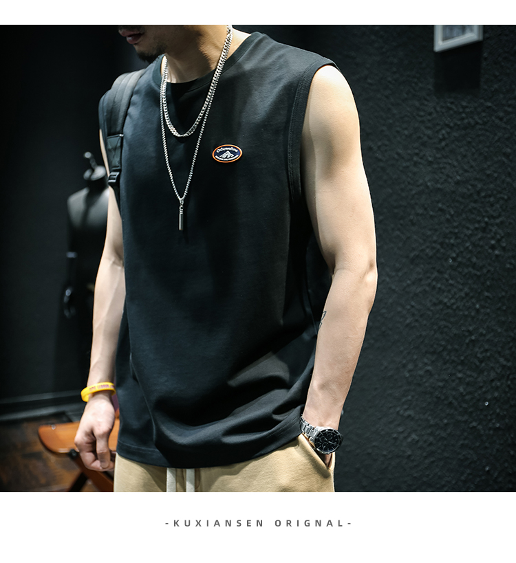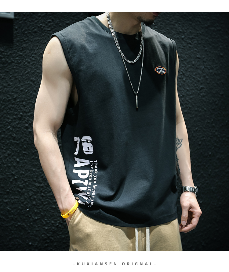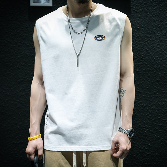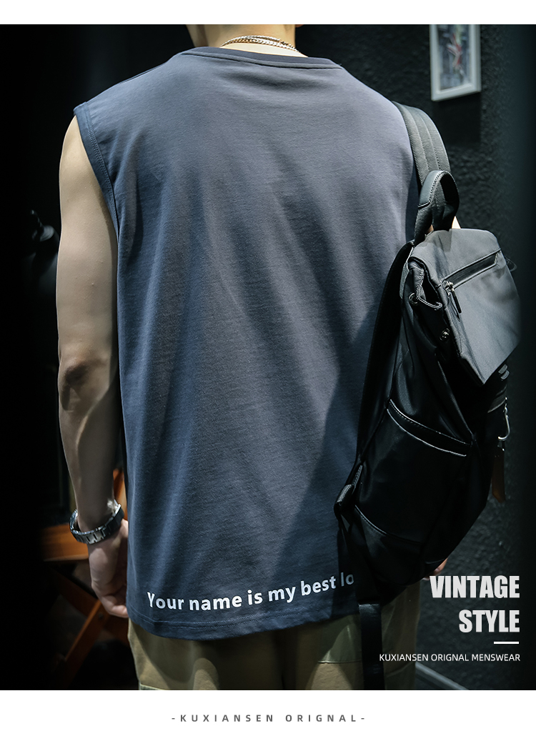 2025夏季純棉無袖背心男寬松潮牌ins坎肩短袖大碼運動健身t恤潮