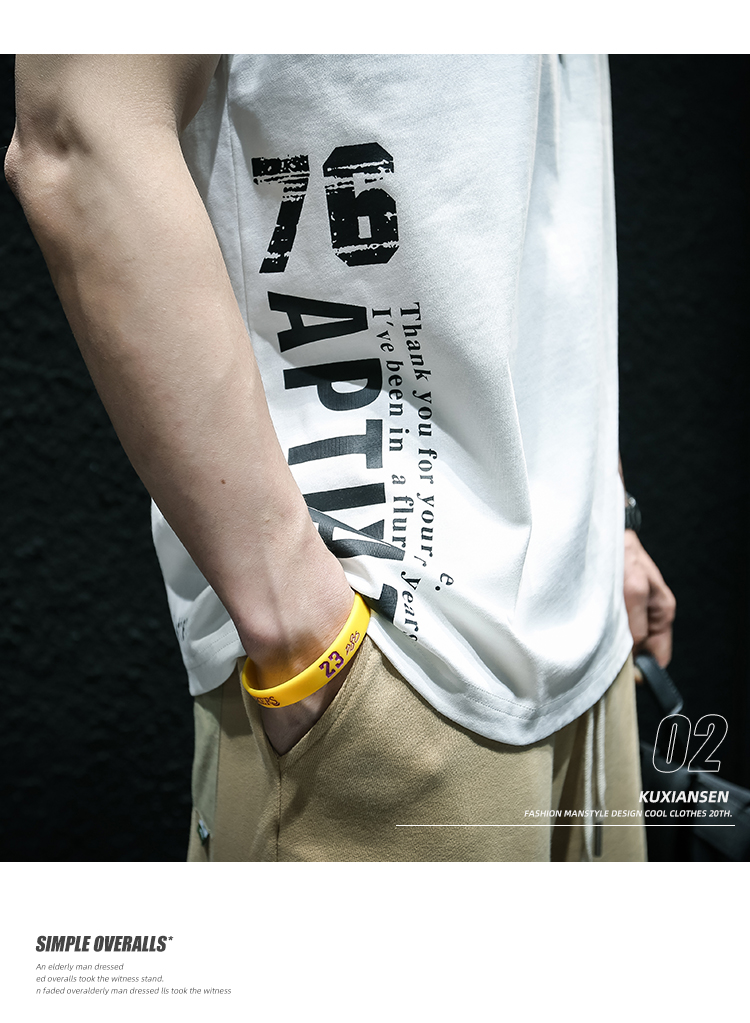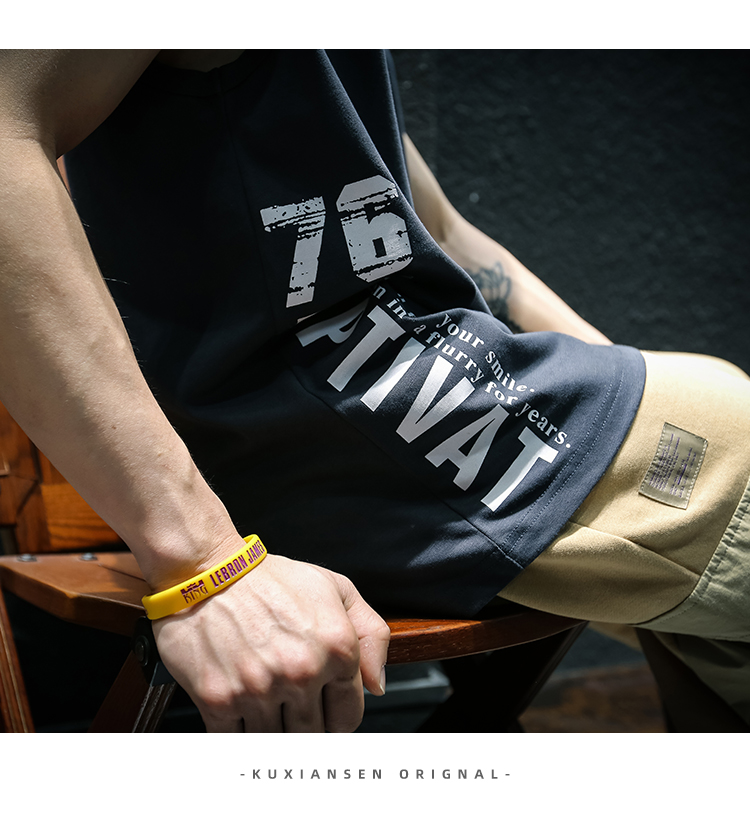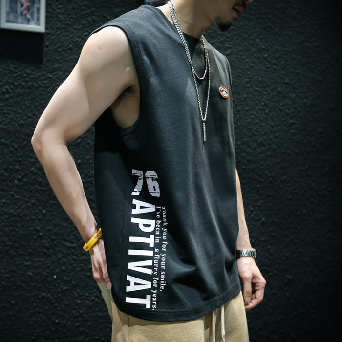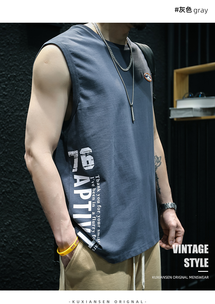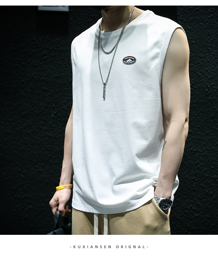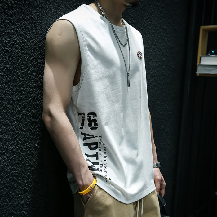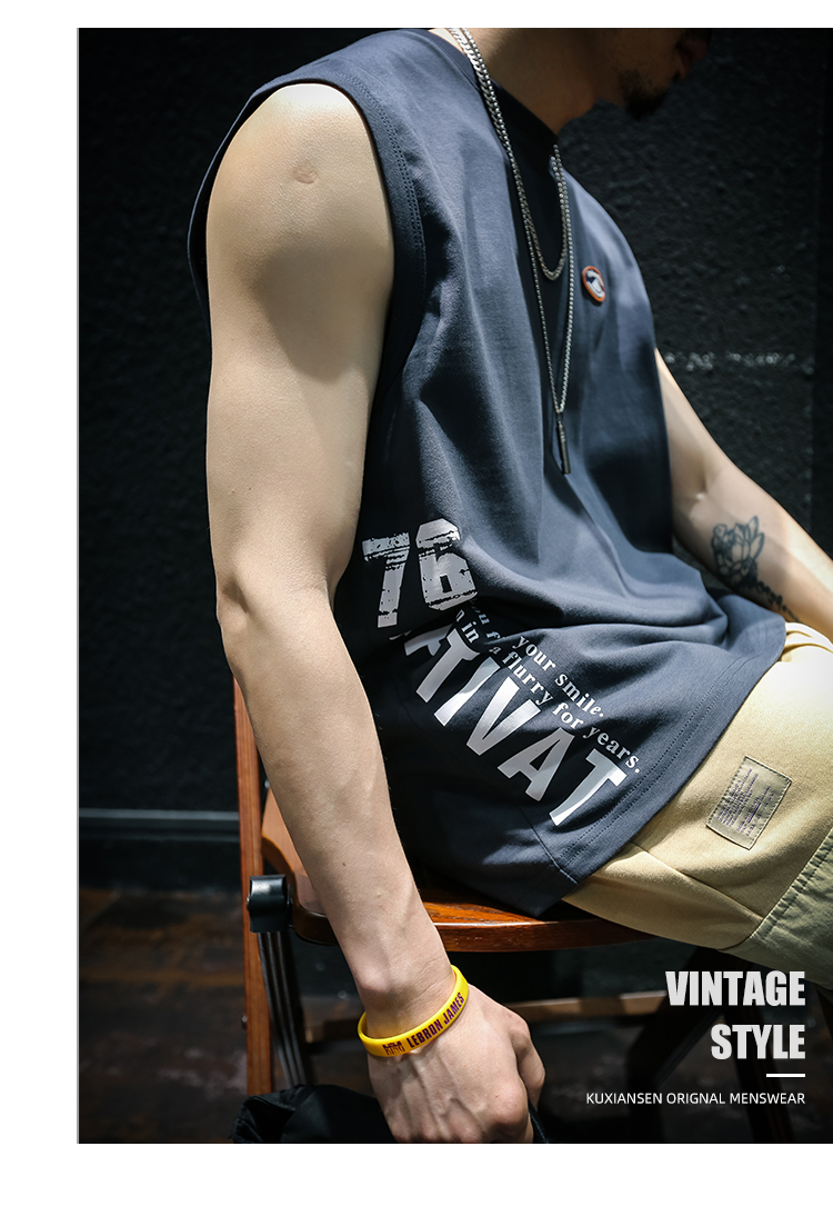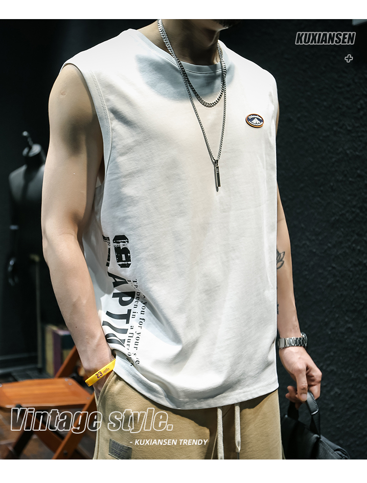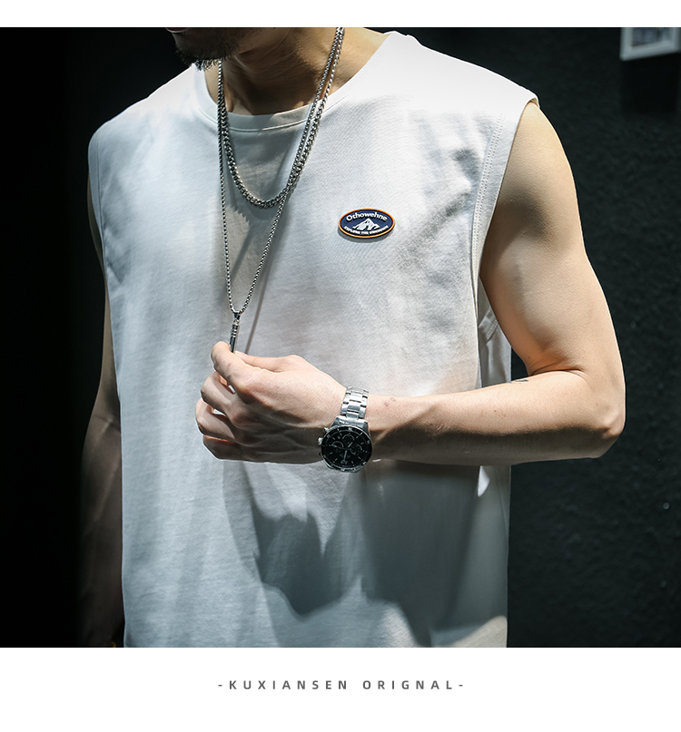 2025夏季純棉無袖背心男寬松潮牌ins坎肩短袖大碼運動健身t恤潮