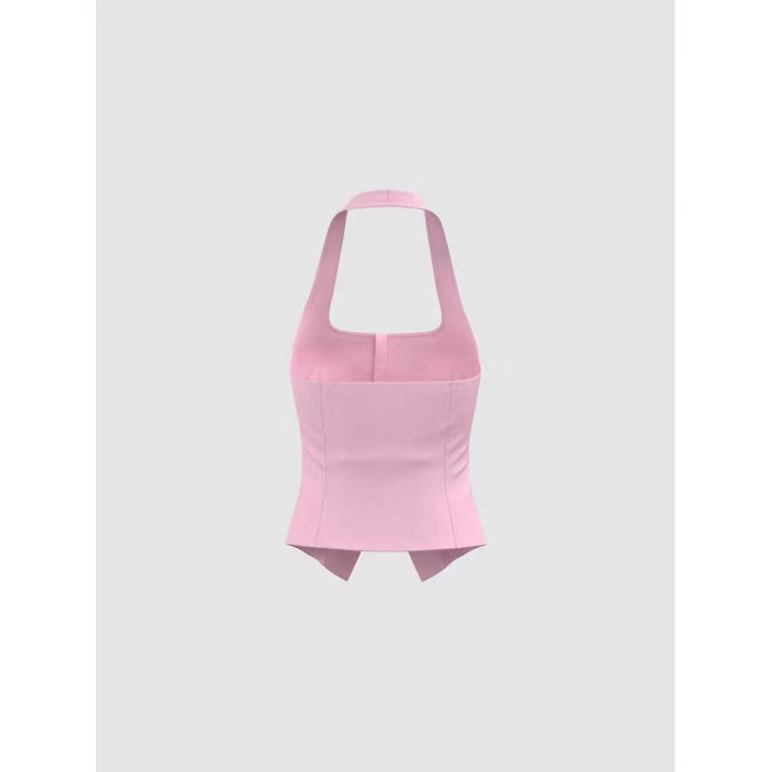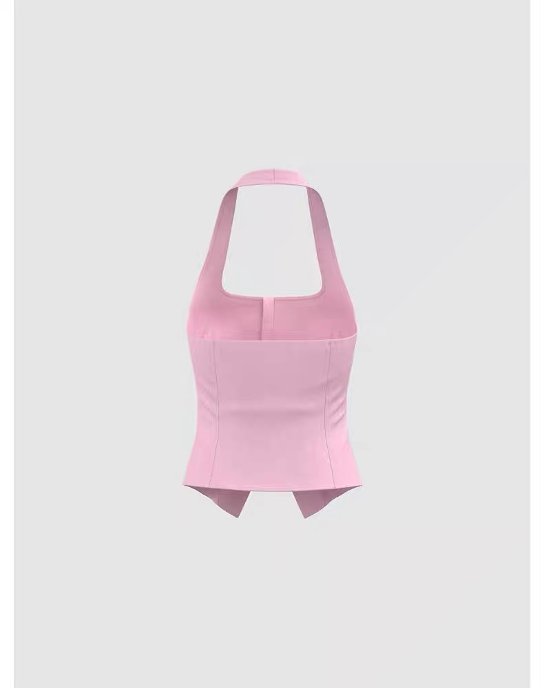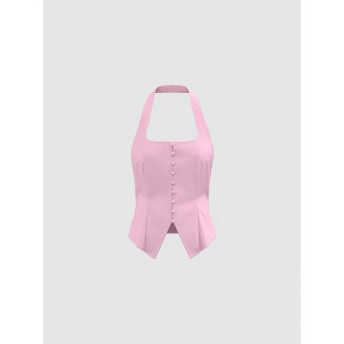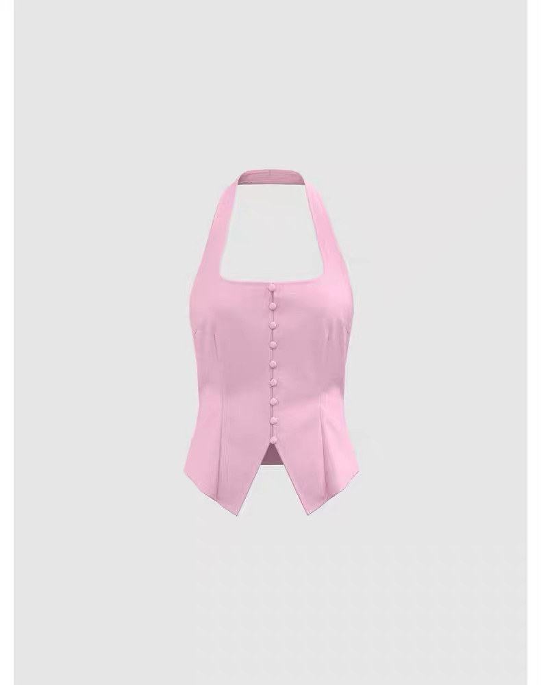 YT&UR2025夏季新款女裝多巴胺掛脖露背單排釦吊帶衫UWG250193